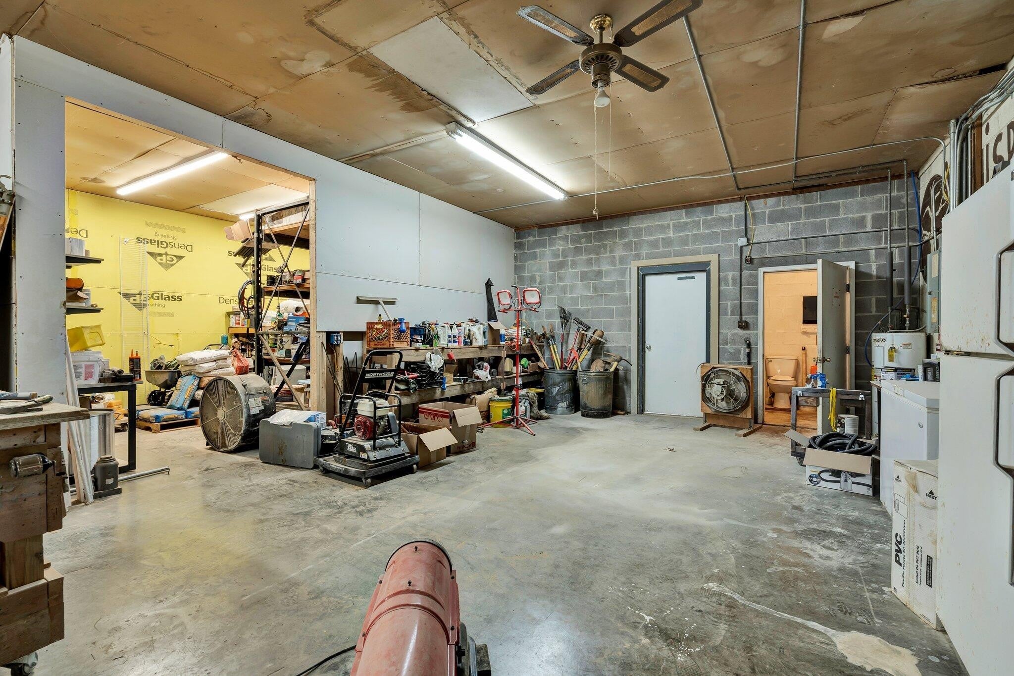 Unique Residential + Commercial Opportunity...The ultimate life-work setup where residential comfort meets commercial potential in one exceptional property. Attached—but completely separate from the residential side—is an incredible commercial facility. This one-level space is divided into four flexible sections, making it perfect for your own business, leasing to tenants, or a combination of both. The commercial space features: New 3-phase underground electrical service, updated restrooms, newer metal roof, & dedicated office space. Unit #1 is roughly 3,600 sq ft (per owner). Unit #1 has 3 offices plus a large lobby area and bathroom. There is a very large work/shop area, plus a separate room that would work well as a paint room, storage, or other use. Property has a loading area and loading door with a low profile dock. Shared parking with the other tenants. Additional space could be available, 1,590 sq ft can be added first, and then 2,279 sq ft if desired. The residential space offers a beautifully designed 1,648 sq ft apartment, ideal for homeowners seeking style, function, and flexibility. Inside, you'll be welcomed by an open floorplan with vaulted beamed ceilings and luxury vinyl plank (LVP) flooring throughout. A cozy gas fireplace with custom built-ins anchors the living area, while the chef-inspired kitchen features a large island with seating for four, a gas range, and abundant cabinet storage. A primary suite with walk-in closet, a spa-style bathroom with a custom tile shower, an additional bedroom and bathroom, along with a dedicated laundry room adds to everyday convenience. Whether you're an entrepreneur seeking to eliminate your commute or an investor exploring income-generating options, this property delivers unmatched potential.