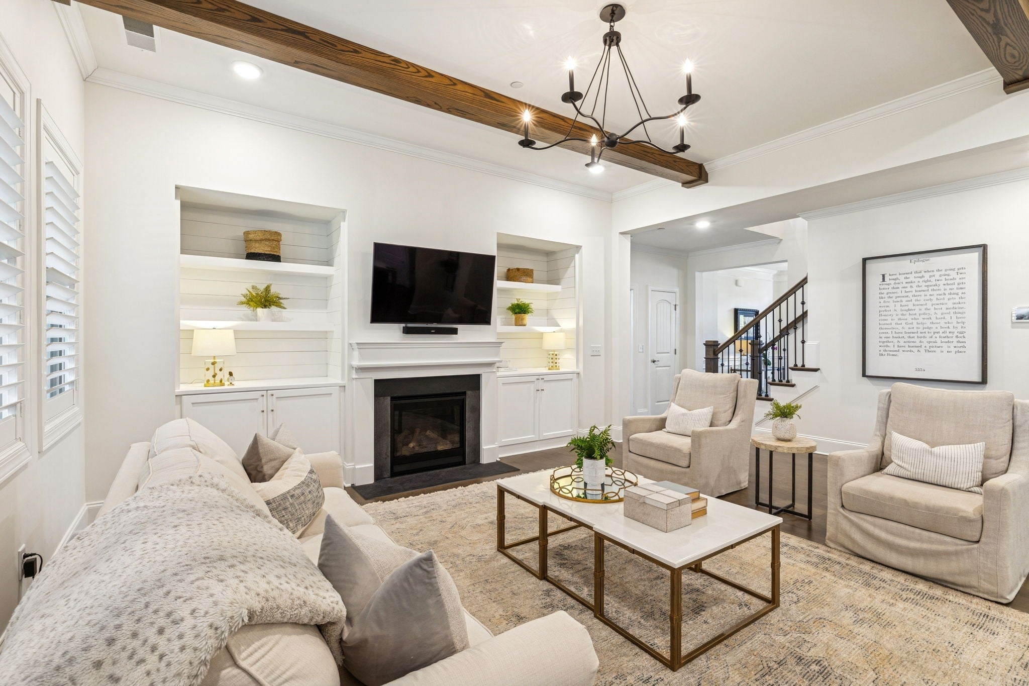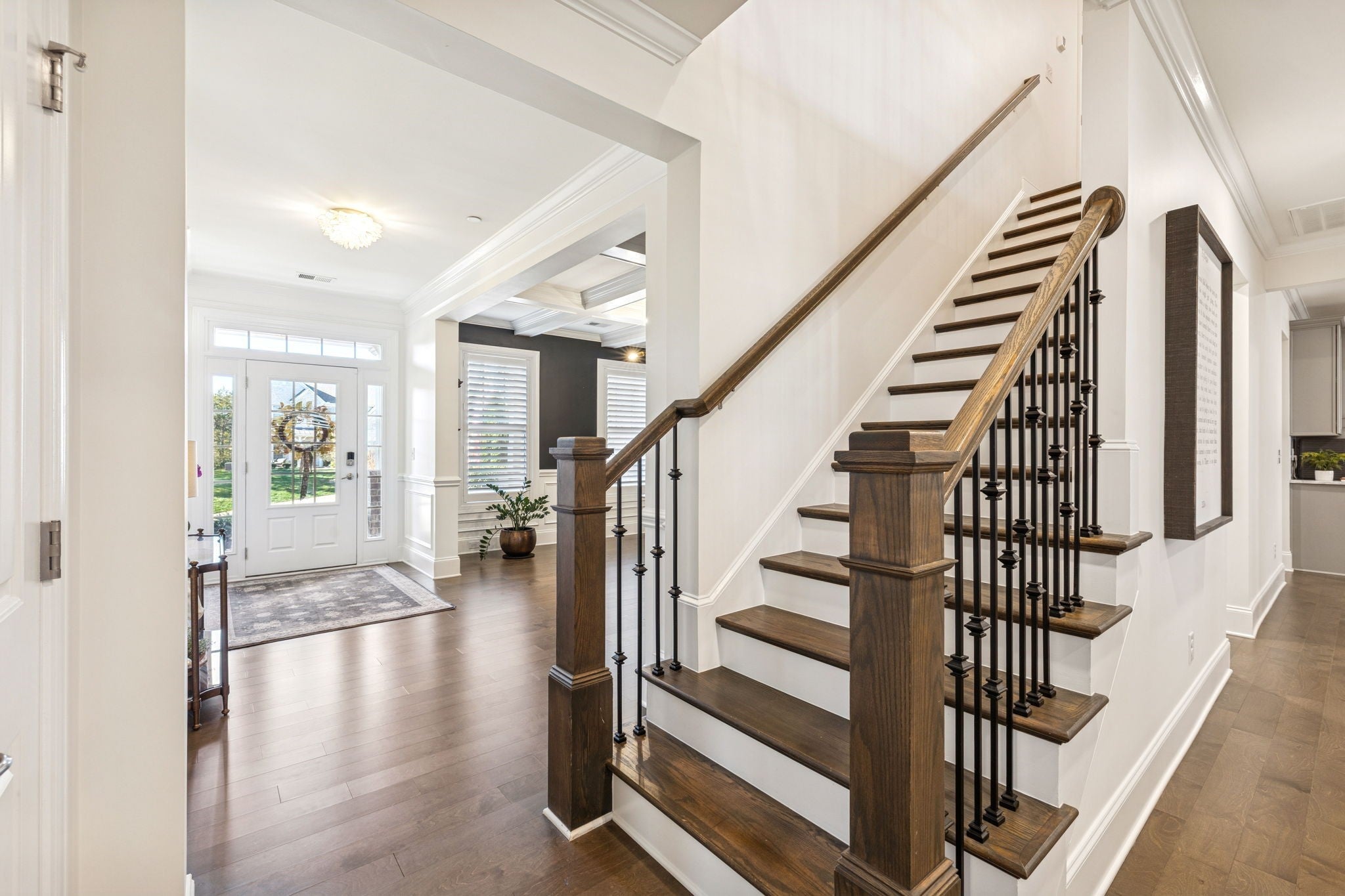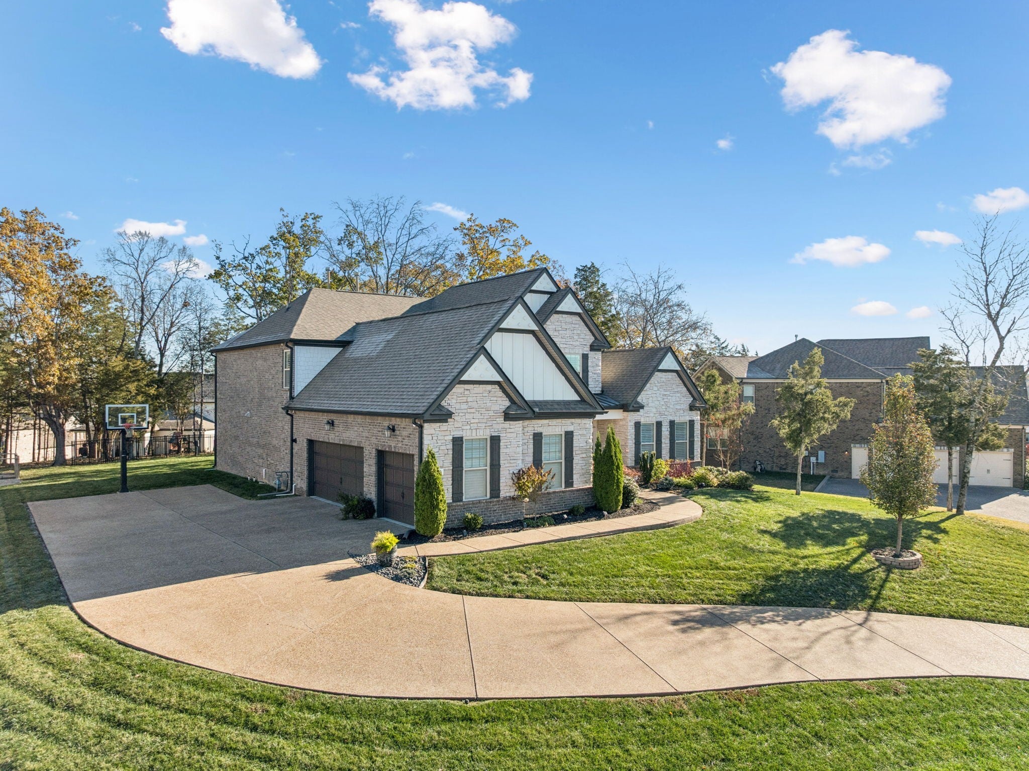 Stunning stone and brick home located in the sought-after Catalina community of Nolensville. A quaint covered front porch welcomes you into a bright, open interior featuring a formal dining room or office just off the foyer, complete with wainscoting and coffered ceiling details. The living room offers a cozy gas fireplace, built-in shelving, and a clean, crisp aesthetic enhanced by abundant natural light and fresh white finishes. The open-concept kitchen is designed for both function and entertaining, featuring a spacious island with seating on two sides, ample prep space, stainless steel appliances, a built-in oven, gas cooktop, pantry, and a breakfast nook that flows seamlessly into the living area. The main level also includes a powder room, laundry room, and a drop zone with custom cabinetry for convenient storage. The primary suite is located on the main level and includes an additional seating area, double vanities, a separate tub and shower. Upstairs, you’ll find a large rec/media room with endless potential, a flex space, along with three additional bedrooms and two full baths. Outdoor living is enhanced by a covered back porch and garden area. Additional features include built ins, plantation shutters throughout, a three-car attached garage and a large driveway offering extra parking. Catalina community amenities include a pool, sidewalks, green spaces, trails, and a soccer field. Ideally located approximately 20 miles from downtown Nashville and just 15 miles from historic downtown Franklin.