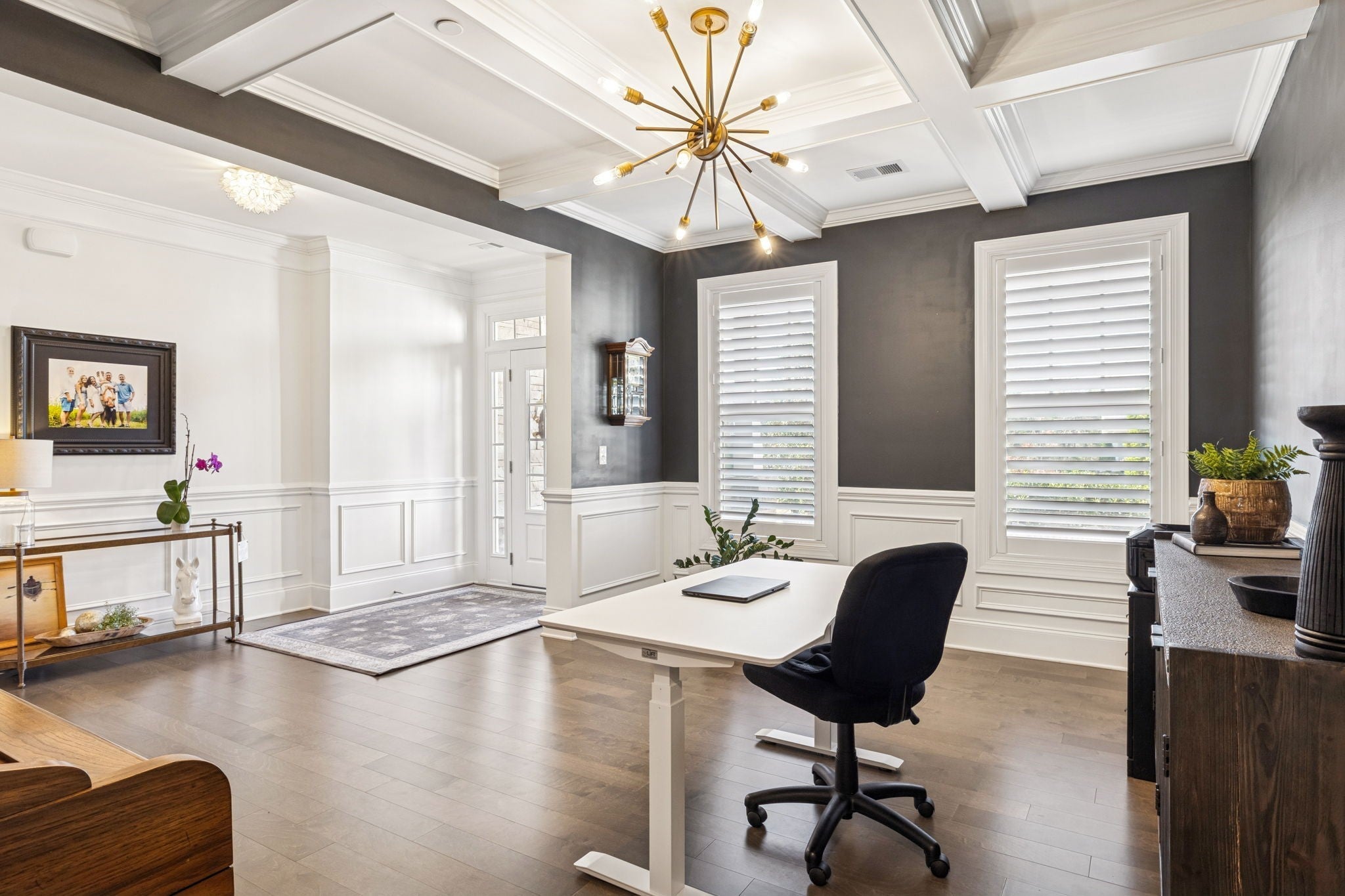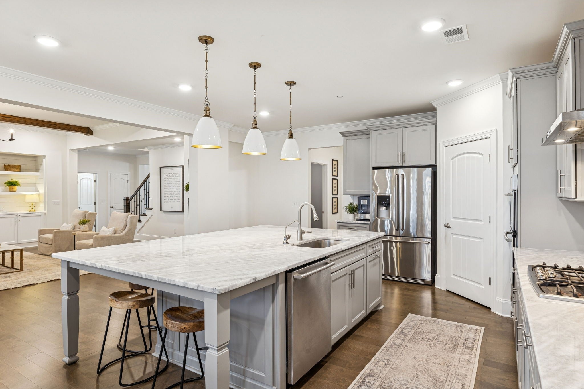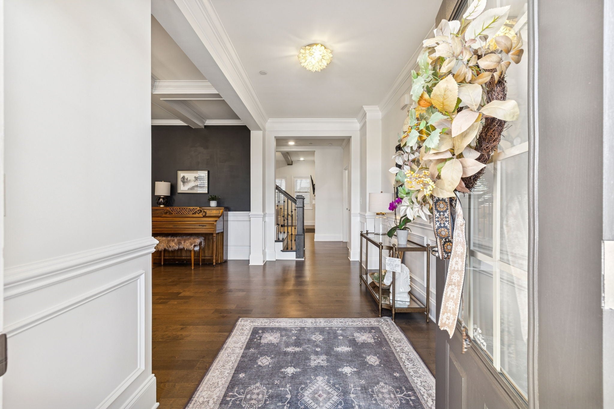 Stunning stone and brick home located in the sought-after Catalina community of Nolensville. A quaint covered front porch welcomes you into a bright, open interior featuring a formal dining room or office just off the foyer, complete with wainscoting and coffered ceiling details. The living room offers a cozy gas fireplace, built-in shelving, and a clean, crisp aesthetic enhanced by abundant natural light and fresh white finishes. The open-concept kitchen is designed for both function and entertaining, featuring a spacious island with seating on two sides, ample prep space, stainless steel appliances, a built-in oven, gas cooktop, pantry, and a breakfast nook that flows seamlessly into the living area. The main level also includes a powder room, laundry room, and a drop zone with custom cabinetry for convenient storage. The primary suite is located on the main level and includes an additional seating area, double vanities, a separate tub and shower. Upstairs, you’ll find a large rec/media room with endless potential, a flex space, along with three additional bedrooms and two full baths. Outdoor living is enhanced by a covered back porch and garden area. Additional features include built ins, plantation shutters throughout, a three-car attached garage and a large driveway offering extra parking. Catalina community amenities include a pool, sidewalks, green spaces, trails, and a soccer field. Ideally located approximately 20 miles from downtown Nashville and just 15 miles from historic downtown Franklin.
