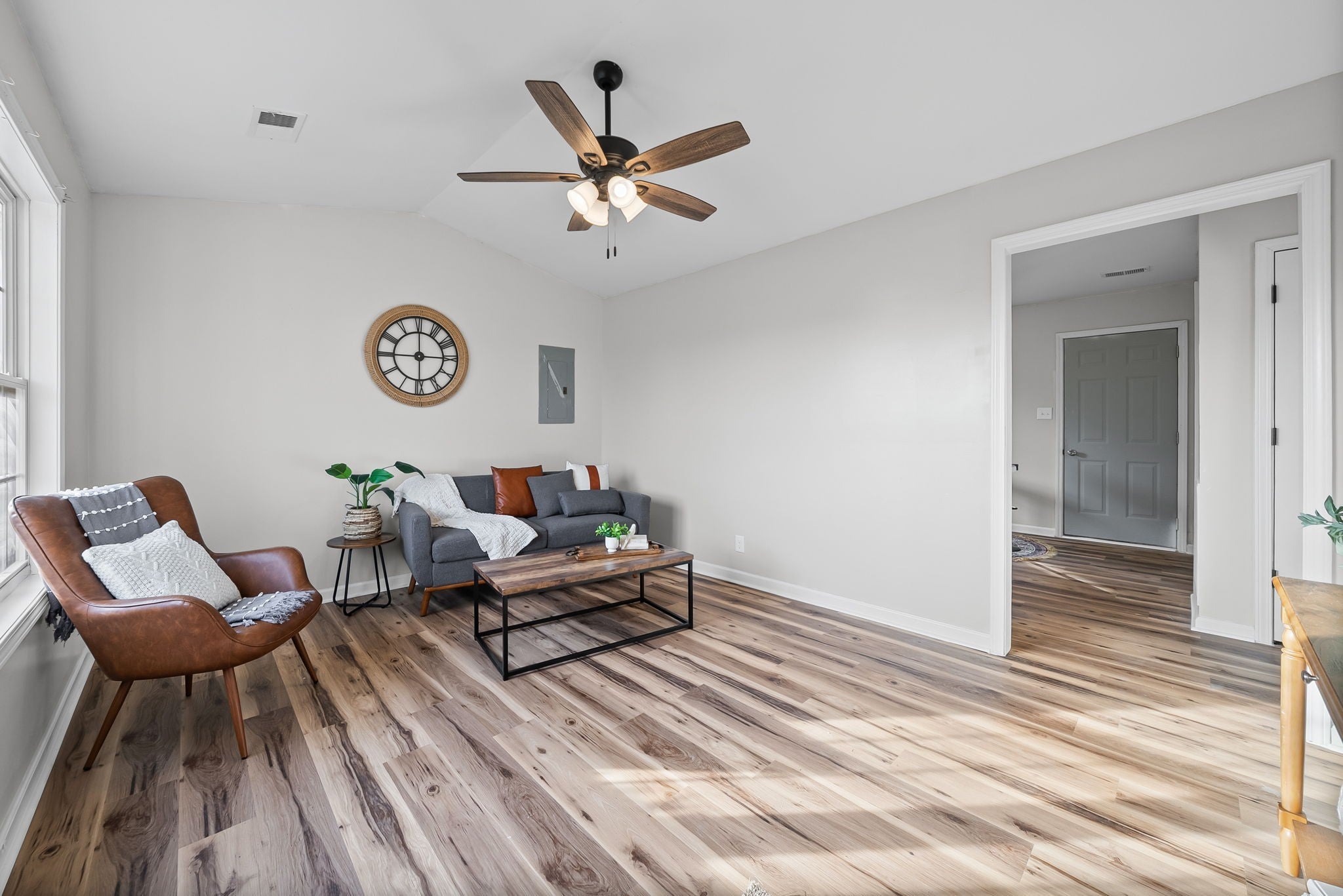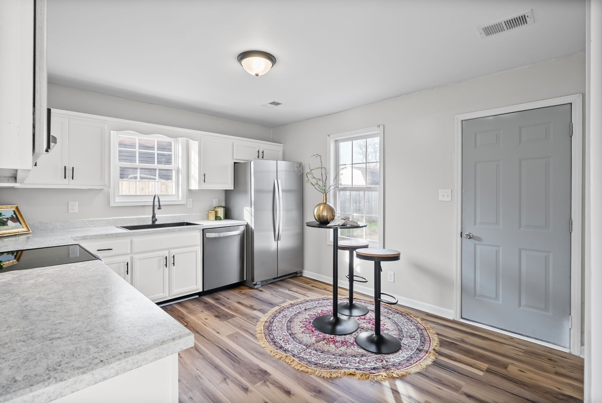 Just 2 miles from Fort Campbell, this freshly renovated home delivers modern updates, functional space, and a peaceful setting you’ll love coming home to. Step inside to find brand-new flooring throughout, updated light fixtures, and a refreshed kitchen featuring new stainless steel appliances, updated cabinetry and countertops. The bathroom offers a classic tub/shower combo, while oversized walk-in closets provide excellent storage. Outside, enjoy a sizeable, flat, and fully usable yard framed by mature tree lines—perfect for relaxing, entertaining, or everyday living. Major improvements include a new roof, making this home truly move-in ready and conveniently located near Fort Campbell.