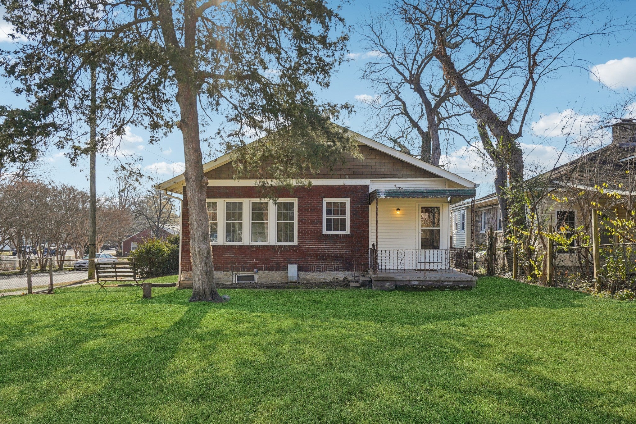 Discover timeless charm in the heart of Nashville's beloved Hillsboro Village. This one-of-a-kind historic brick Tudor home sits on a rare corner oversized lot, just a stone's throw from boutique shops, grocery stores, acclaimed restaurants, and the vibrant energy of the neighborhood. Fall in love with this neighborhood favorite, perfectly positioned 3-4 blocks from Belmont University and under a mile to the trendy shops and dining of 12 South—offering the ideal blend of walkable convenience and historic character. Step onto the massive, wrap-around front porch—one of the home's most distinctive feature. Inside, original details shine: gleaming hardwood floors, intricate historic casing, a striking stone foundation, and a cozy stone fireplace with gas logs ready for cozy evenings. The adorable vintage kitchen bursts with authentic charm and character, while thoughtful updates ensure modern comfort: newer windows and updated electrical throughout.This rare Tudor treasure combines irreplaceable historic elegance with unbeatable location—don't miss your chance to own a true piece of Hillsboro Village history! Garage in back is not warranted . Buyers/buyers agent to verify all information