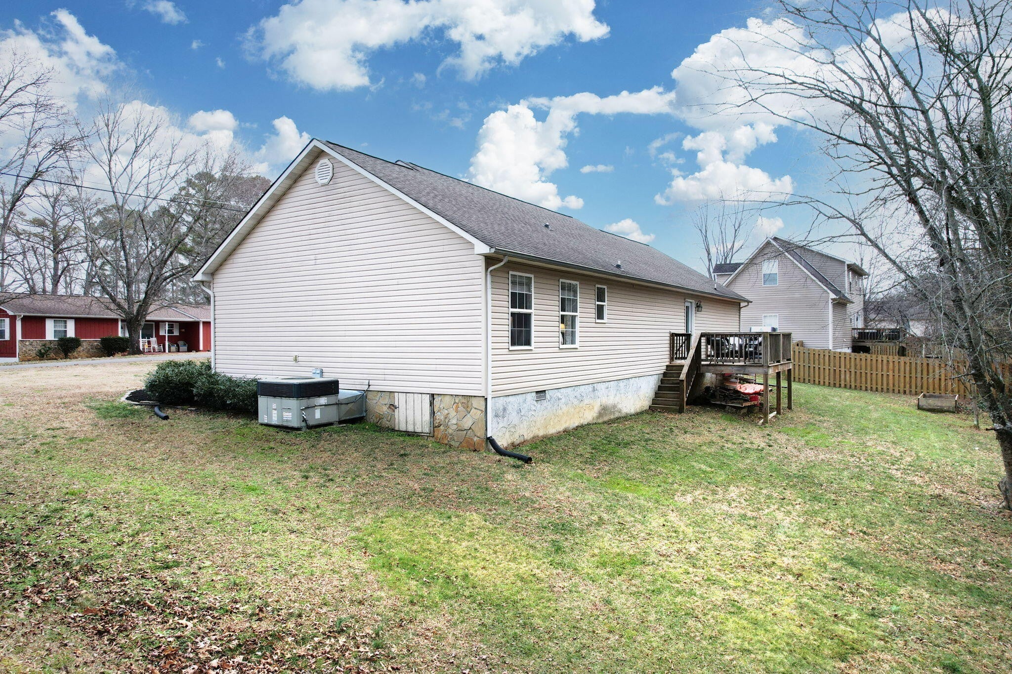 Charming one level home on almost half an acre! Walk in to a warm open living room with a vaulted ceiling. The kitchen has a built in island and an additional space for a dining room table. Off of the dining space is a full size laundry room with storage leading out to the garage. The primary bedroom has an en suite bathroom and separate closet. Both guest bedrooms are on the other side of the hallway. All the flooring in the home is newly installed LVP and the front porch was recently freshly stained. If you like outdoor living, you will enjoy the close proximity to the water and TWRA wildlife managed land. The neighborhood does have water access down the road. The large backyard has a mix of cleared and wooded space giving privacy views but still plenty of usable space. The neighborhood is just secluded enough to be quiet and peaceful living, but you can still get to all of Cleveland's main amenities like Target in under 20 minutes.