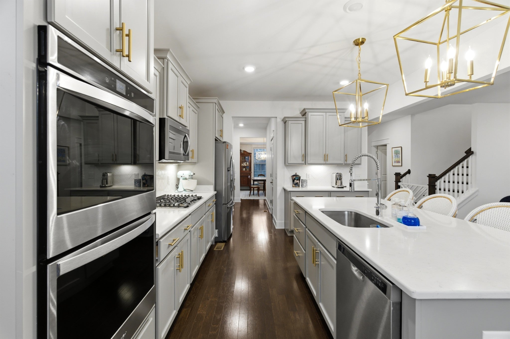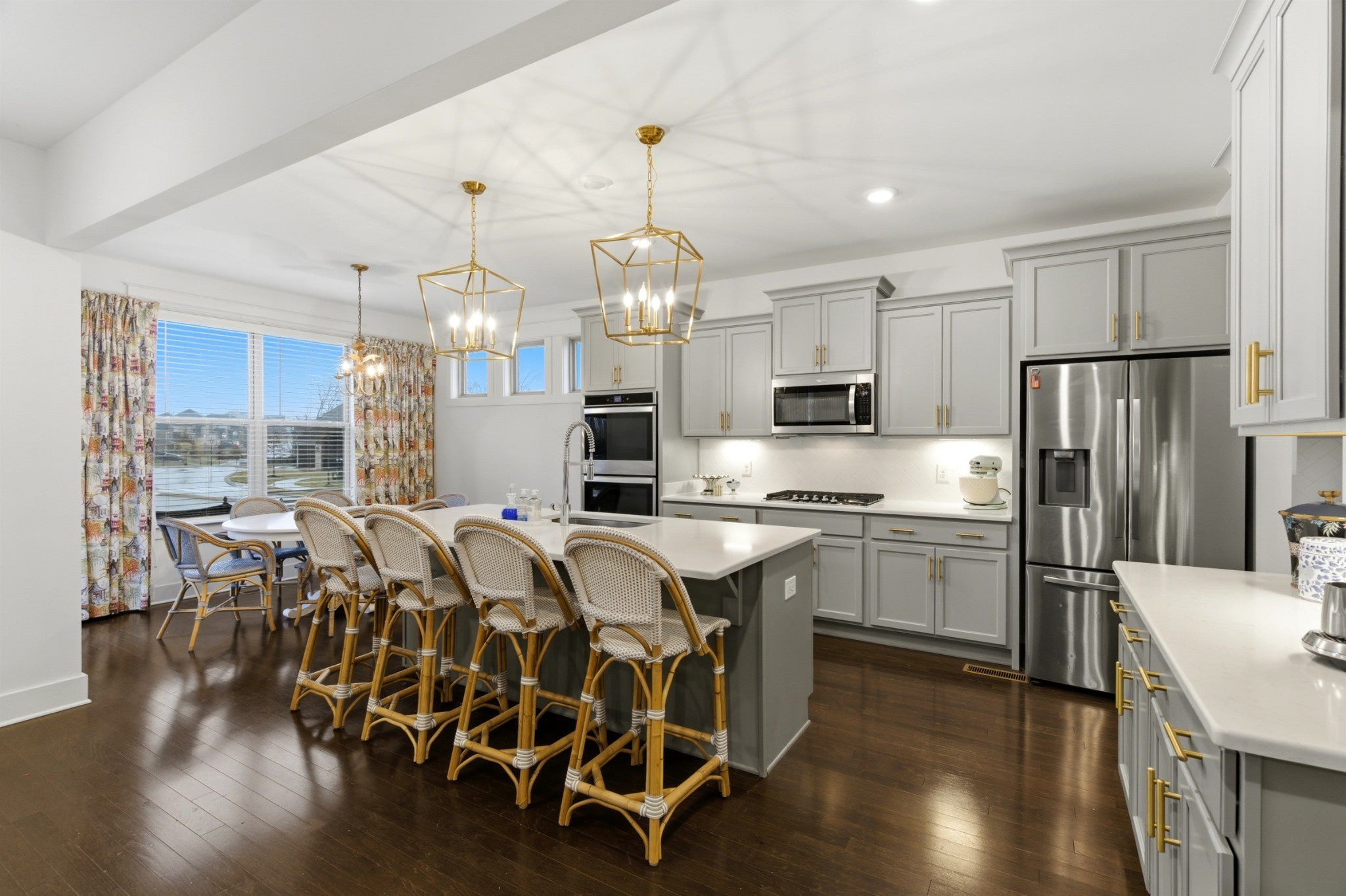 - Double Oven, Gas Range, Dishwasher, Disposal, Microwave, Refrigerator, Stainless Steel Appliance(s)