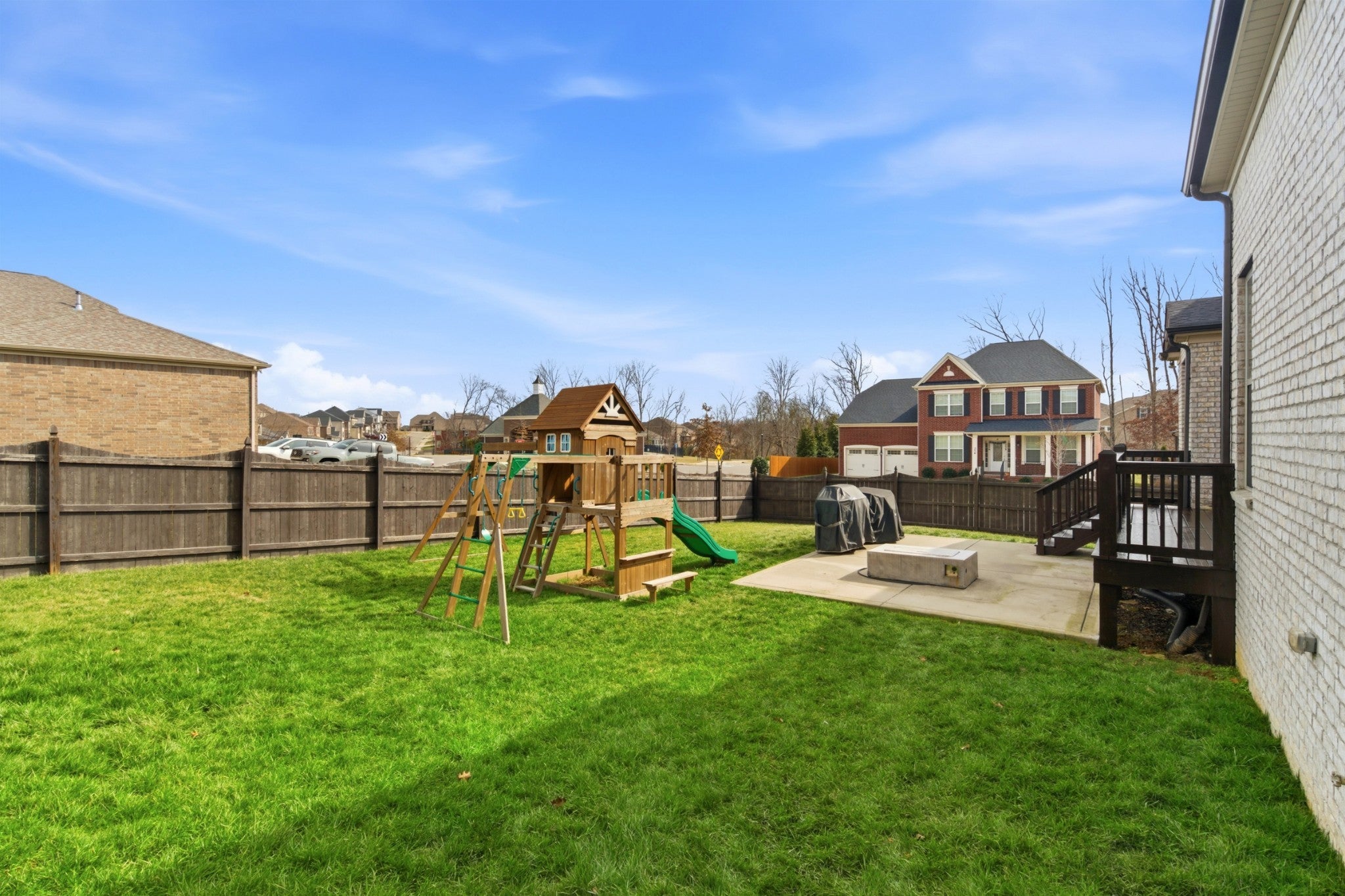 This graceful home has all the upgrades. If you need a lovely place that is functional and easy to use for life in 2026, this is it. There is absolutely no wasted space in this floor plan, plus the added convenience of having a mailbox at the end of your driveway is only available in Phase 1. Here you will enjoy the luxury feature of a fireplace in the tasteful primary suite. Other high-end upgrades added during the build include double ovens, gas range, custom island, wine cooler, all custom light fixtures, custom primary closet, custom built-ins in the playroom, vaulted ceilings, an added bath to create a second suite upstairs, and upgraded cabinets in the laundry room. The sellers have thoughtfully added a concrete pad beside the 2-car garage to make parking for multiple cars less troublesome. An elegant addition is accent lighting in the hallway and great room, and a practical one is a privacy fence. The Baird Farms location is a quick trip to shopping and dining, an easy commute to the airport and downtown Nashville, and a welcoming community with a pool, walking trails, and a playground. You can have it all here in this Southern beauty!