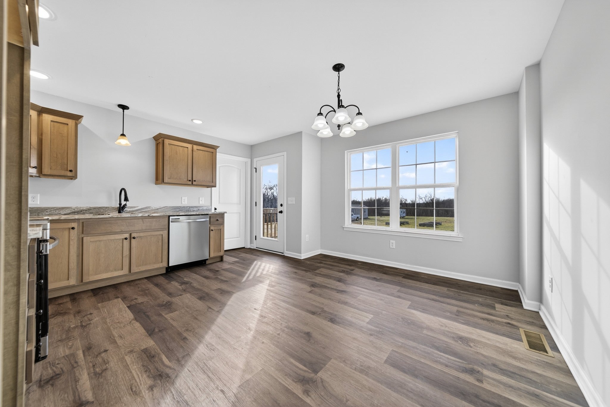 Charming 3 bedroom 2 full bath with inviting eat-in kitchen featuring granite counters and stainless appliances, highlighted by large windows that fill the space with natural light. Spacious separate laundry room provides extra storage and everyday convenience. Relax on the covered rocking-chair front porch or enjoy the back patio overlooking large level yard, complete with bonfire area and raised garden beds- perfect for outdoor entertaining or quiet evenings at home. Built in 2024 and situated on approx. 1.08 acres offers the new of new construction with the charm of country setting all at a comfortable price point in growing Westmoreland. Enjoy country living but still easy commute to Gallatin, Portland, Lafayette and Franklin, KY....