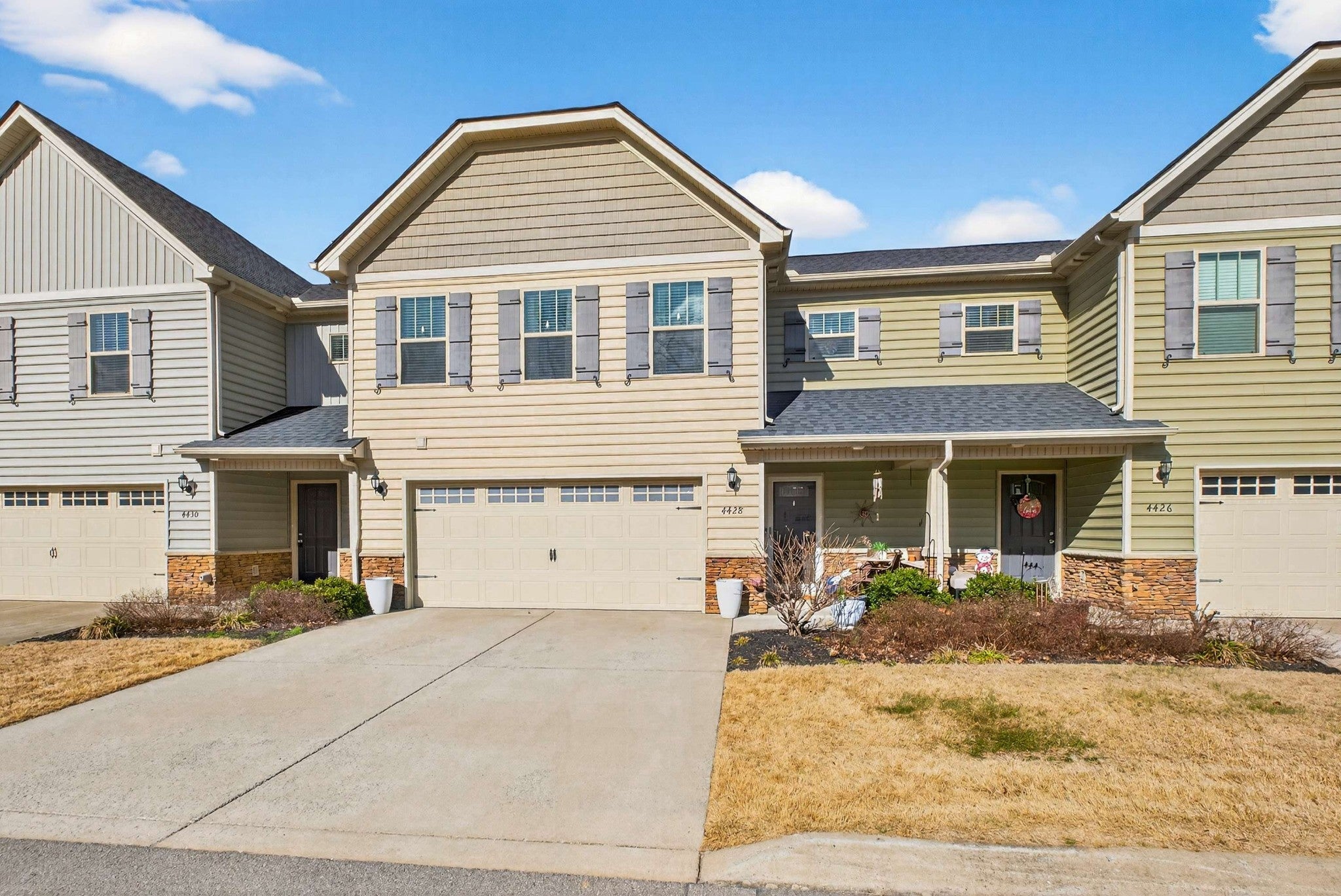 Discover refined living in this beautifully designed 2 bed, 2.5 bath townhouse located on Silence Way in the heart of Murfreesboro, one of Middle Tennessee’s most sought-after areas. A welcoming entry foyer opens into a bright, open-concept layout highlighted by high ceilings and luxury vinyl plank flooring, creating a stylish yet comfortable atmosphere from the start. The kitchen anchors the main level with granite countertops with matching backsplash, white cabinetry, recessed lighting, stainless steel appliances, and a generous pantry, seamlessly connecting to the formal dining area for effortless entertaining. A conveniently placed powder room on the main floor adds to the thoughtful design. Upstairs, the spacious primary suite offers a relaxing retreat with a walk-in closet, double vanities, and a separate shower and soaking tub, while the additional bedroom includes its own full bath for flexibility and privacy. Recently added over $3,000 of Moen lighting and plumbing fixtures. You’ll love the second-floor laundry room – no more hauling laundry up and down! Step outside to a covered patio, ideal for relaxation and fun in all seasons. An attached two-car garage plus driveway parking complete the package. Enjoy access to community amenities including a pool and playground, all just minutes from medical centers, high end retail shopping, great options for dining, and quick I-24 access. With strong investment potential and long-term value, this Murfreesboro townhouse is an exceptional opportunity - schedule your private showing and experience the lifestyle this home delivers!