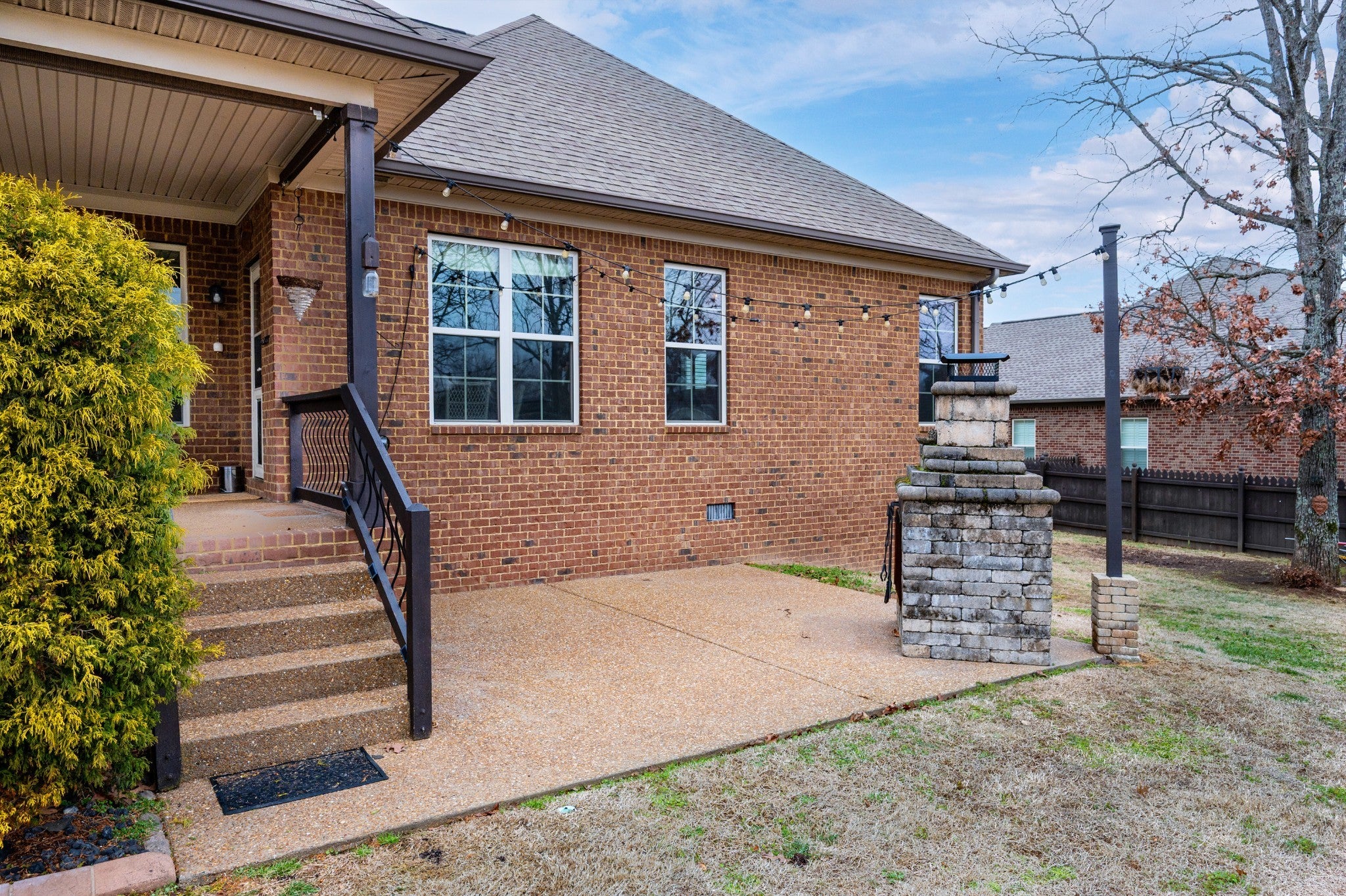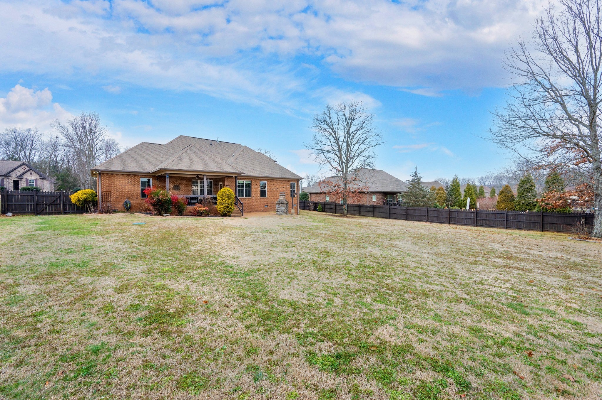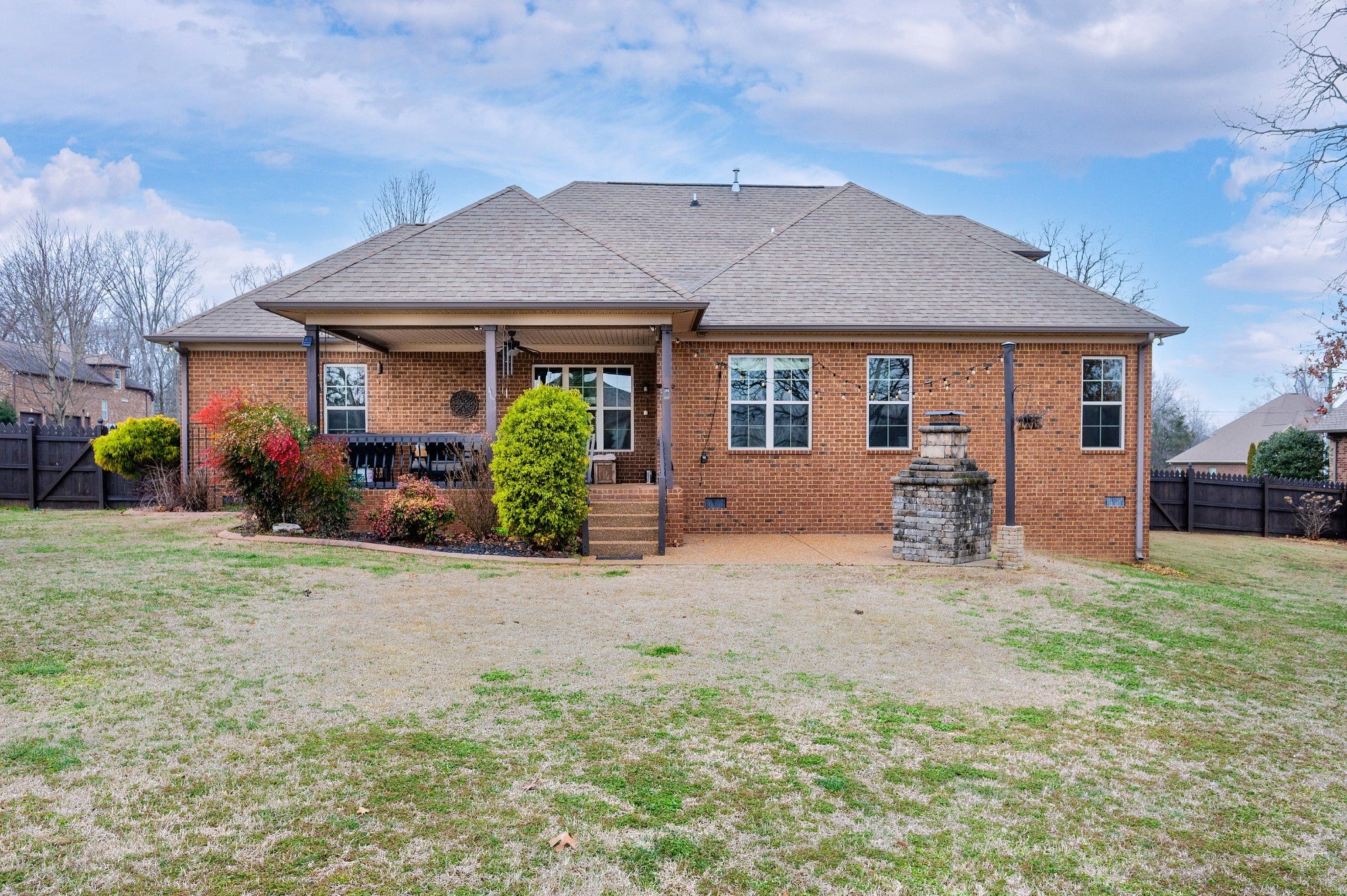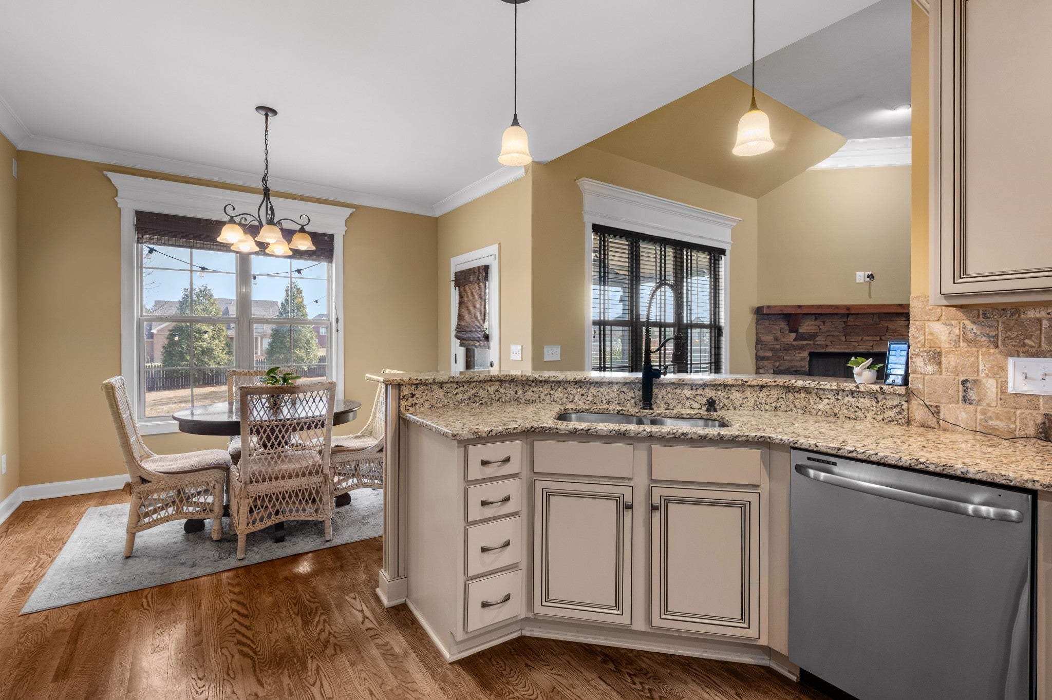 Beautiful home featuring a stunning brick and stone front elevation and a spacious 3-car garage. Inside, you’ll find granite countertops in the kitchen and primary bath, stainless steel appliances, glazed cabinetry, and a pantry for added storage and functionality. Plantation shutters throughout the home add timeless elegance, privacy, and enhanced natural light control. The inviting living room offers a cozy gas fireplace, creating the perfect space to relax and gather. The oversized primary suite features an extra-large walk-in closet, providing exceptional storage. Step outside to enjoy the lovely covered back patio complete with an outdoor fireplace — ideal for year-round entertaining and relaxing evenings at home. Two New HVACs installed in 2025 with 10-year transferable warranties! This home combines thoughtful upgrades, comfort, and curb appeal — a must-see!