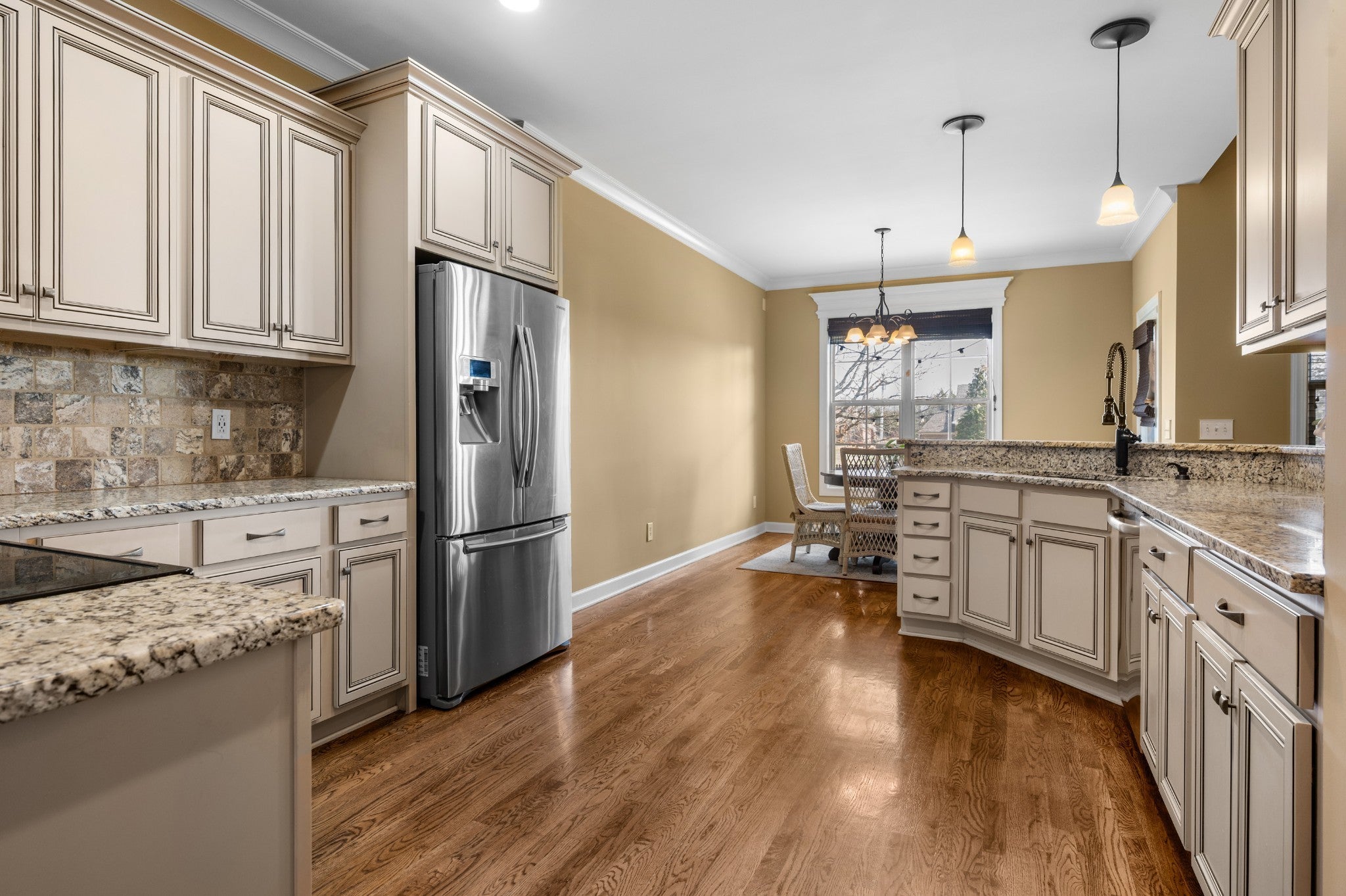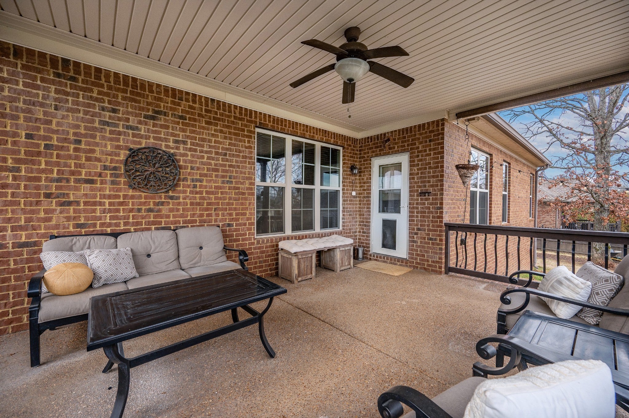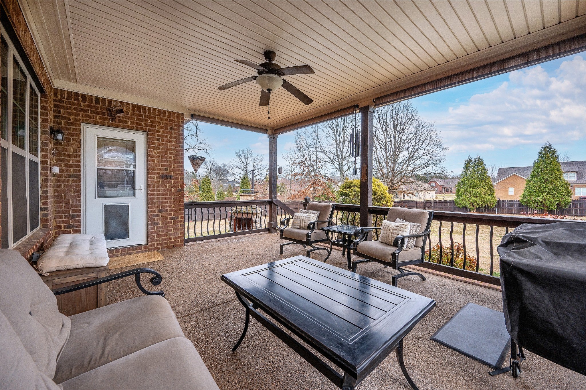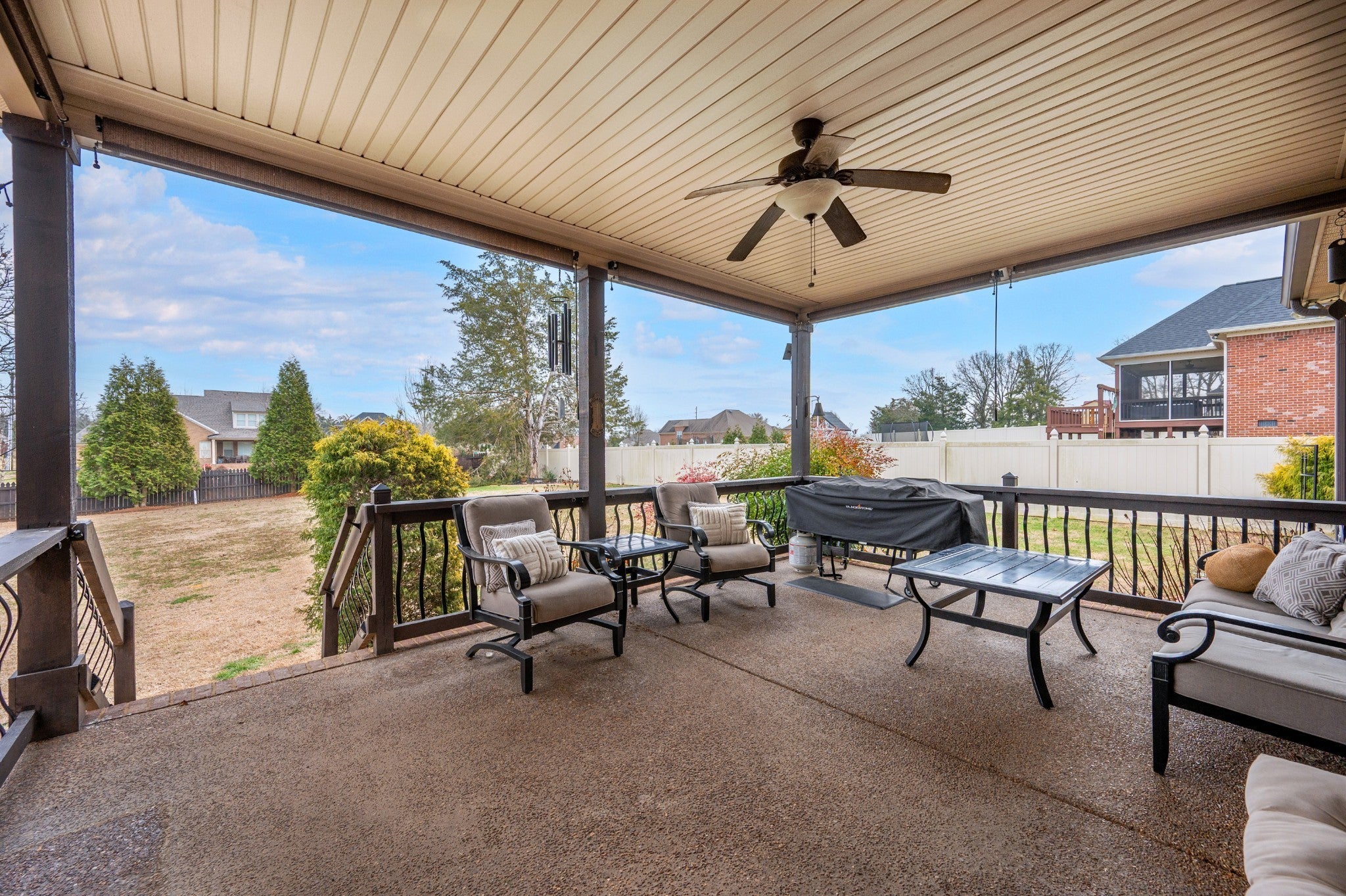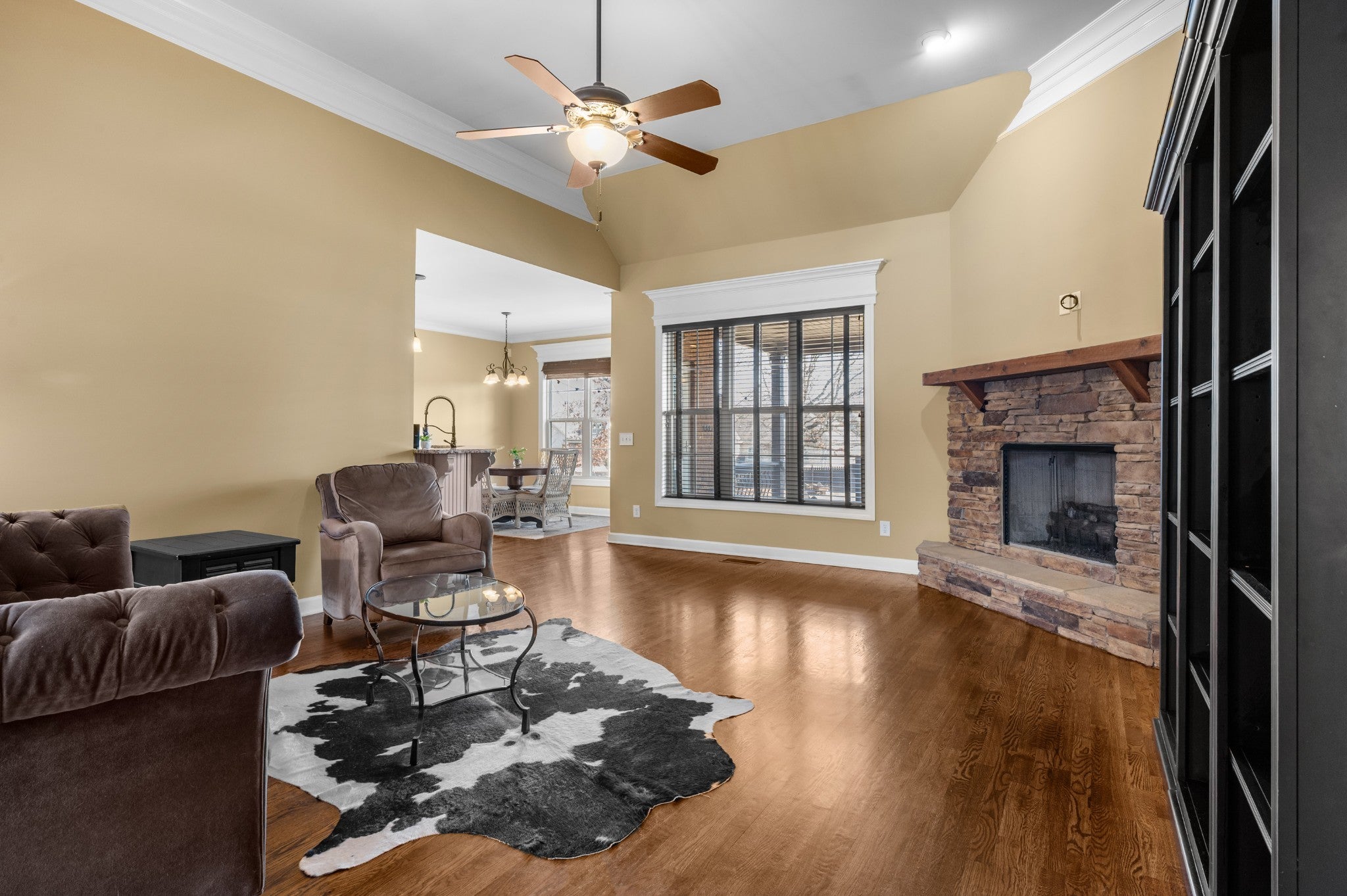 Beautiful home featuring a stunning brick and stone front elevation and a spacious 3-car garage. Inside, you’ll find granite countertops in the kitchen and primary bath, stainless steel appliances, glazed cabinetry, and a pantry for added storage and functionality. Plantation shutters throughout the home add timeless elegance, privacy, and enhanced natural light control. The inviting living room offers a cozy gas fireplace, creating the perfect space to relax and gather. The oversized primary suite features an extra-large walk-in closet, providing exceptional storage. Step outside to enjoy the lovely covered back patio complete with an outdoor fireplace — ideal for year-round entertaining and relaxing evenings at home. Two New HVACs installed in 2025 with 10-year transferable warranties! This home combines thoughtful upgrades, comfort, and curb appeal — a must-see!
