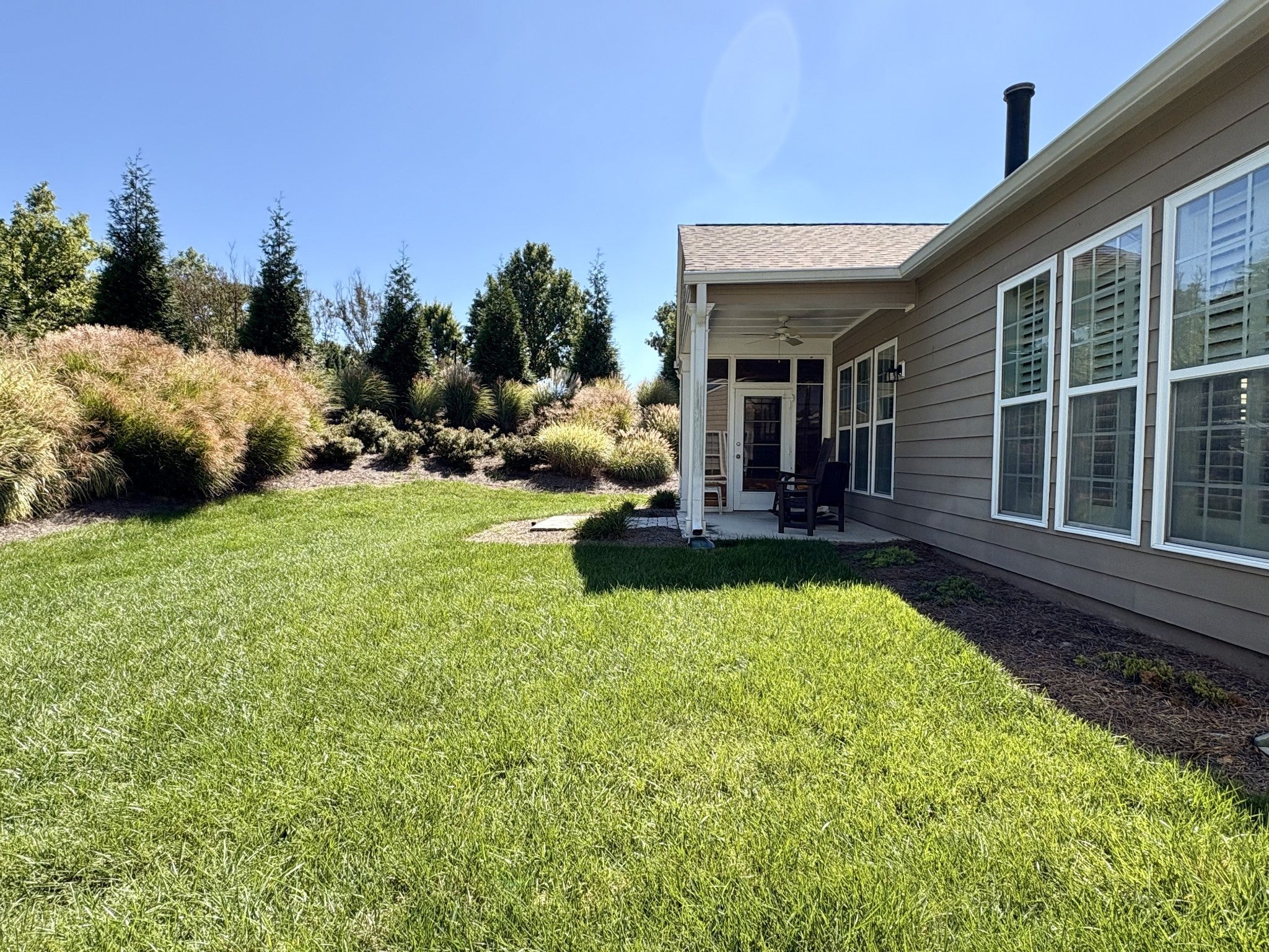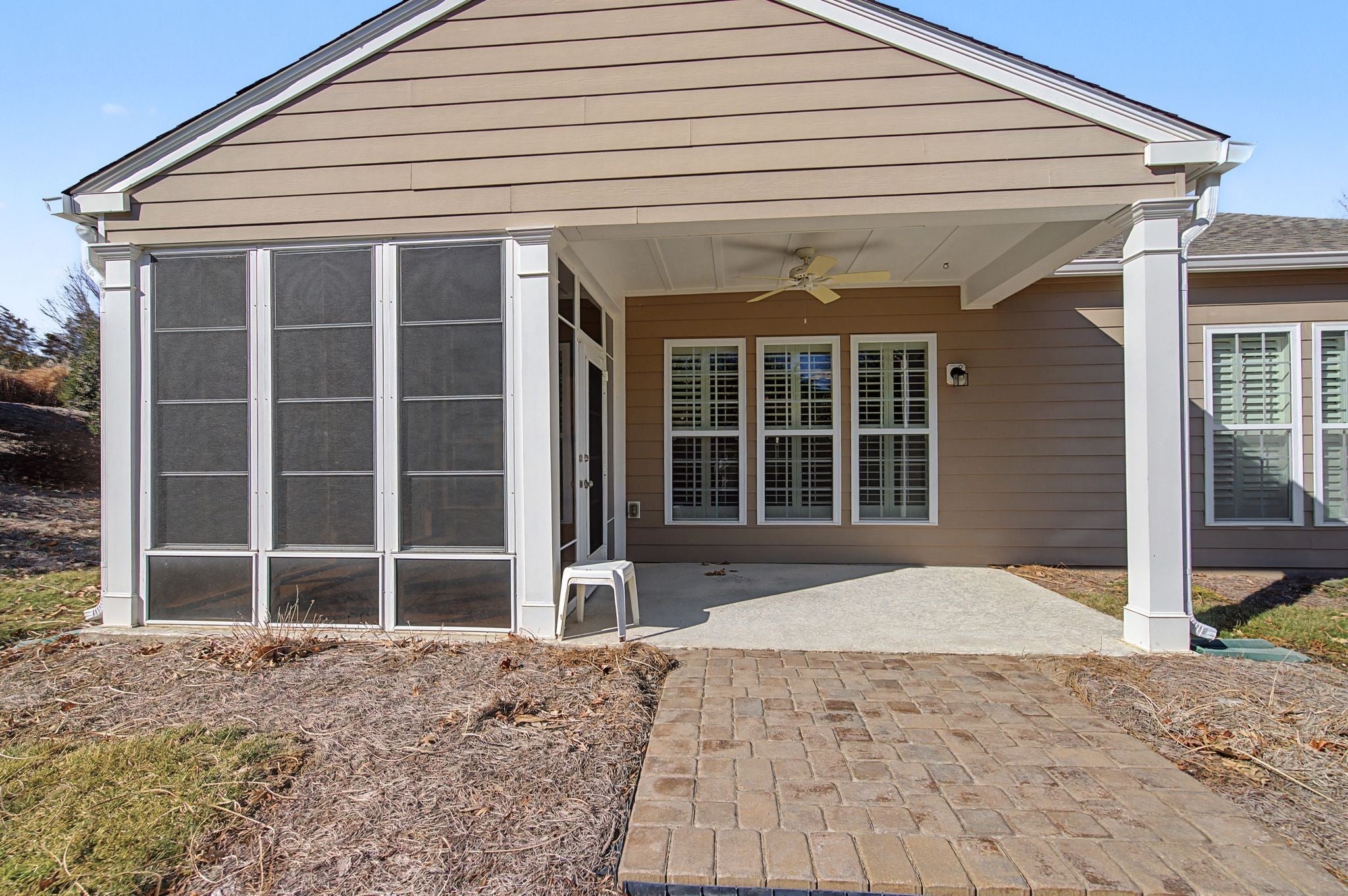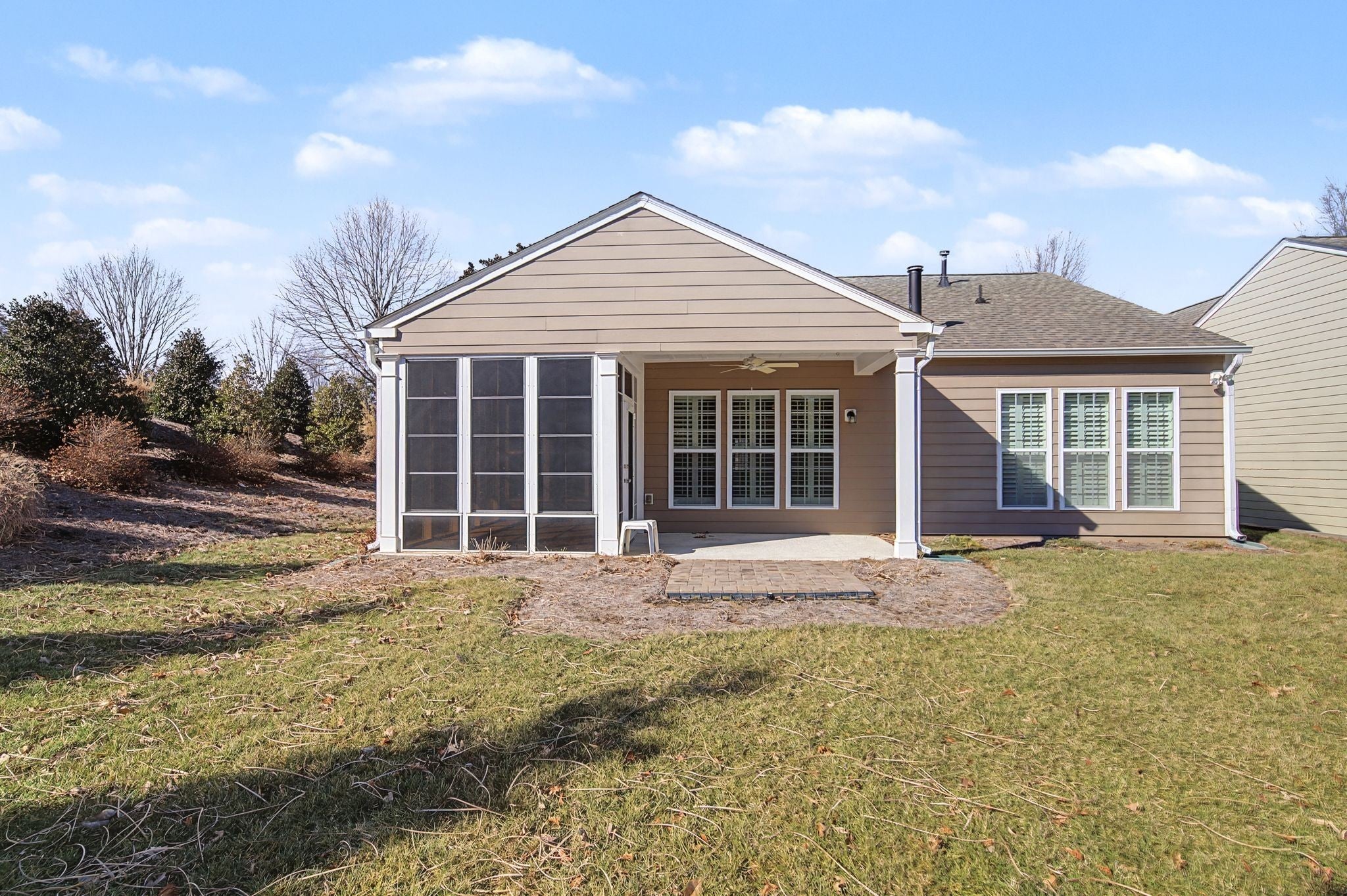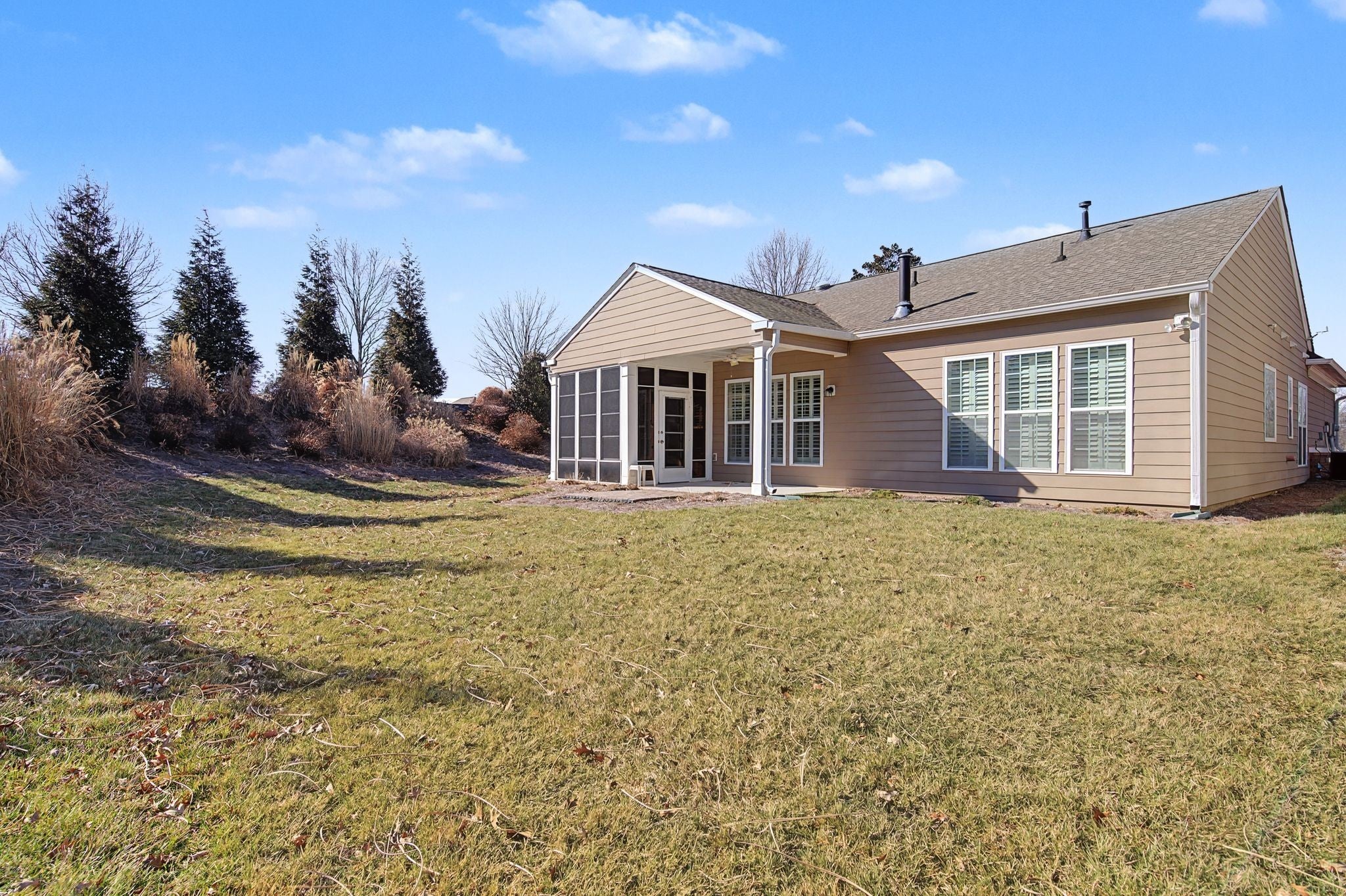 55+ Del Webb at Lake Providence-Gated community. Copper Ridge Plan-No homes behind- backed up to a private landscaped area! Featuring one level, 2 bedrooms, 2 baths plus office and enclosed 10x14 three seasons room not included in sq ft. Separate covered porch. Spacious living room with ceiling fan and fireplace. Kitchen offers stainless appliances, pantry and cabinets with pull-out shelves, and lazy Susan. Master bedroom includes tray ceiling, plantation shutters, step-in shower, soaking tub, linen closet, and huge walk-in closet with California shelving. Laundry with wash sink and cabinets and folding counter. Spacious 2-car garage. Yard sprinkler system. Enjoy Del Webb amenities: clubhouse, pools, fitness, pickle ball, tennis, walking trails, lake, fishing, paddle boats and social activities.