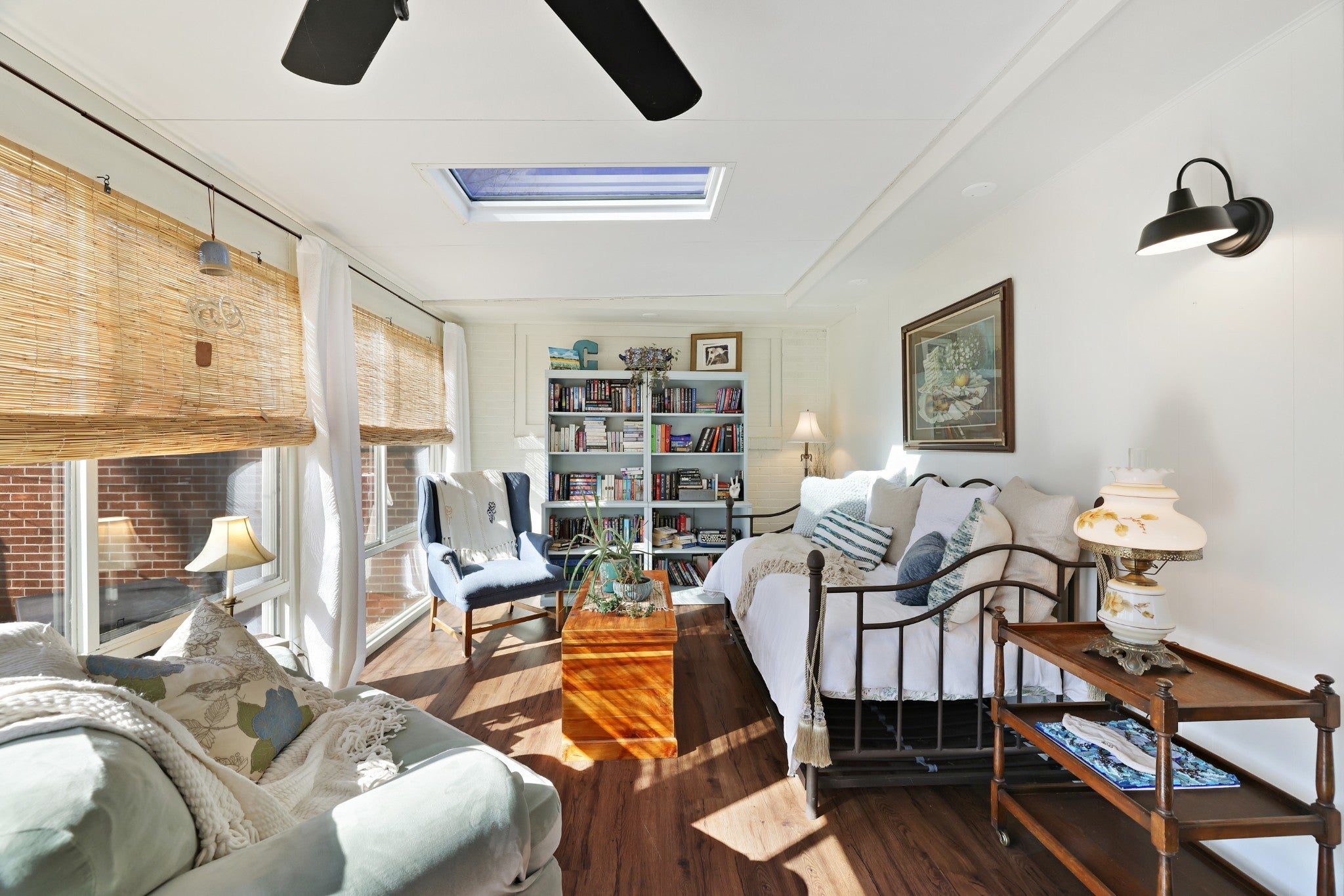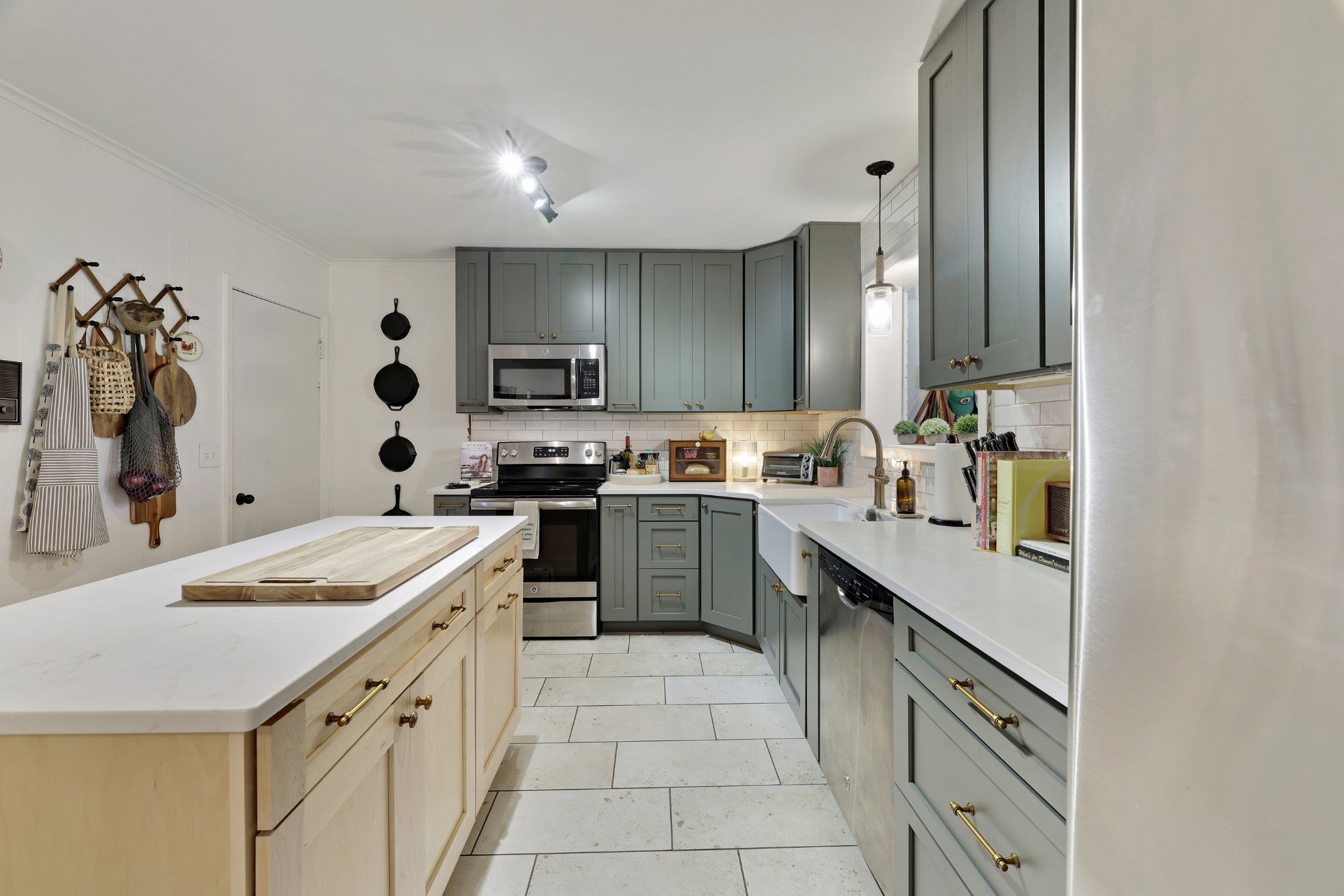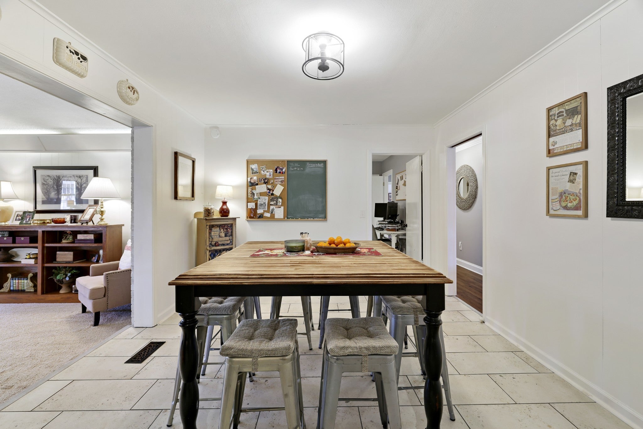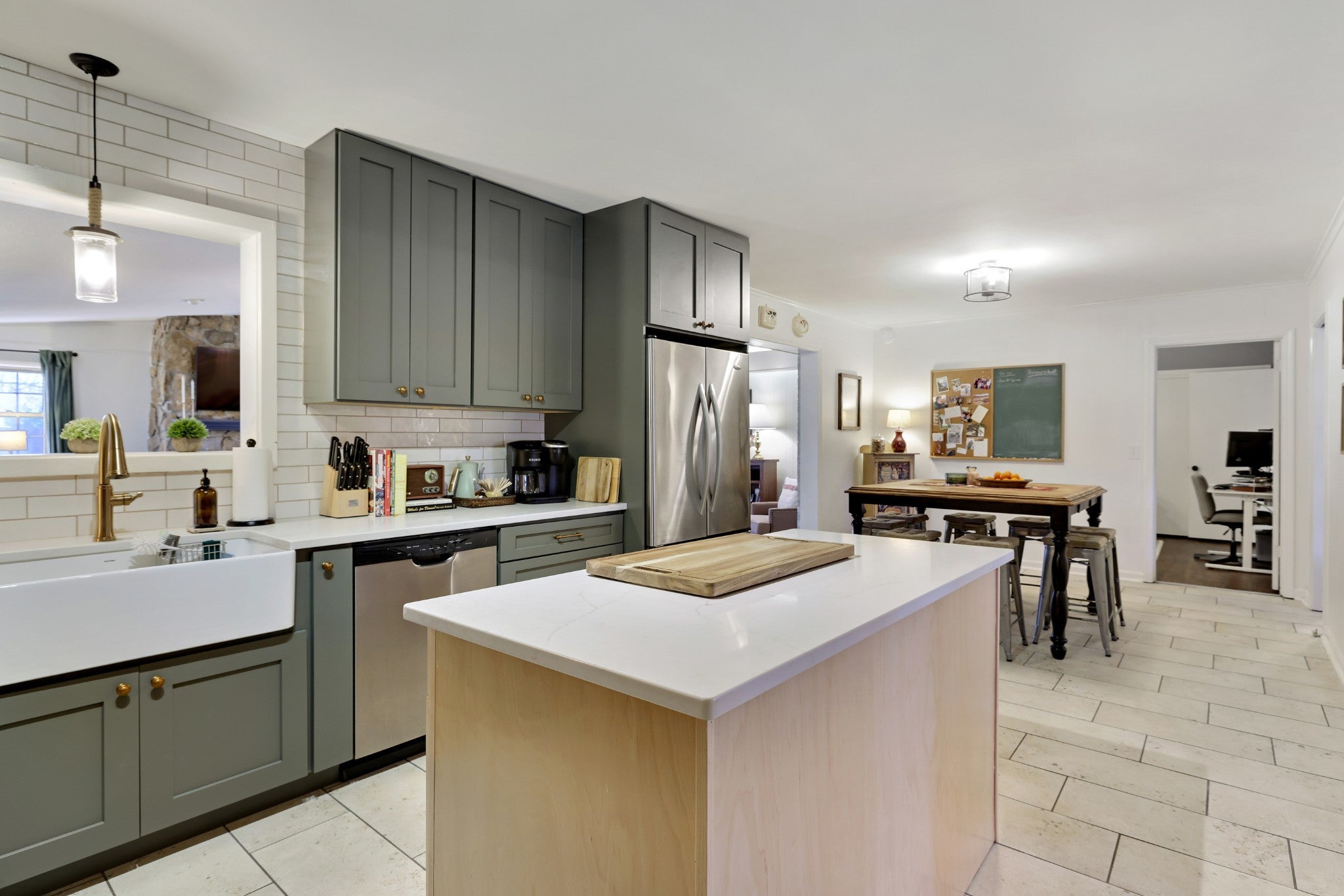 This spacious 3-bedroom, 1.5-bath home offers 2,789 square feet of comfortable living on a half-acre lot, blending classic charm with thoughtful updates. Step inside to a welcoming formal living and dining area, an ideal layout for hosting gatherings and special occasions. At the heart of the home is a large family room featuring a pitched ceiling and a striking stacked-stone fireplace, creating a warm and inviting space for everyday living. The remodeled kitchen is both stylish and functional, showcasing chic green cabinetry, gold hardware, a farmhouse sink, stainless steel appliances, and a center island for added prep and seating space. An attached eat-in dining area provides a cozy spot for casual meals. The primary bedroom includes a private en-suite bathroom, while the home’s layout offers comfortable secondary bedrooms and flexible living spaces. Just off the family room, the sunroom is filled with natural light thanks to skylights and floor-to-ceiling windows, perfect for relaxing or enjoying year-round. Additional features include a dedicated laundry room with a secondary kitchen area and open storage, a covered carport, and a fully fenced backyard, offering both privacy and room to enjoy outdoor living. With updated finishes and versatile spaces throughout, this home offers a rare combination of comfort, functionality, and character. Up to 1% lender credit on the loan amount when buyer uses Seller's Preferred Lender.