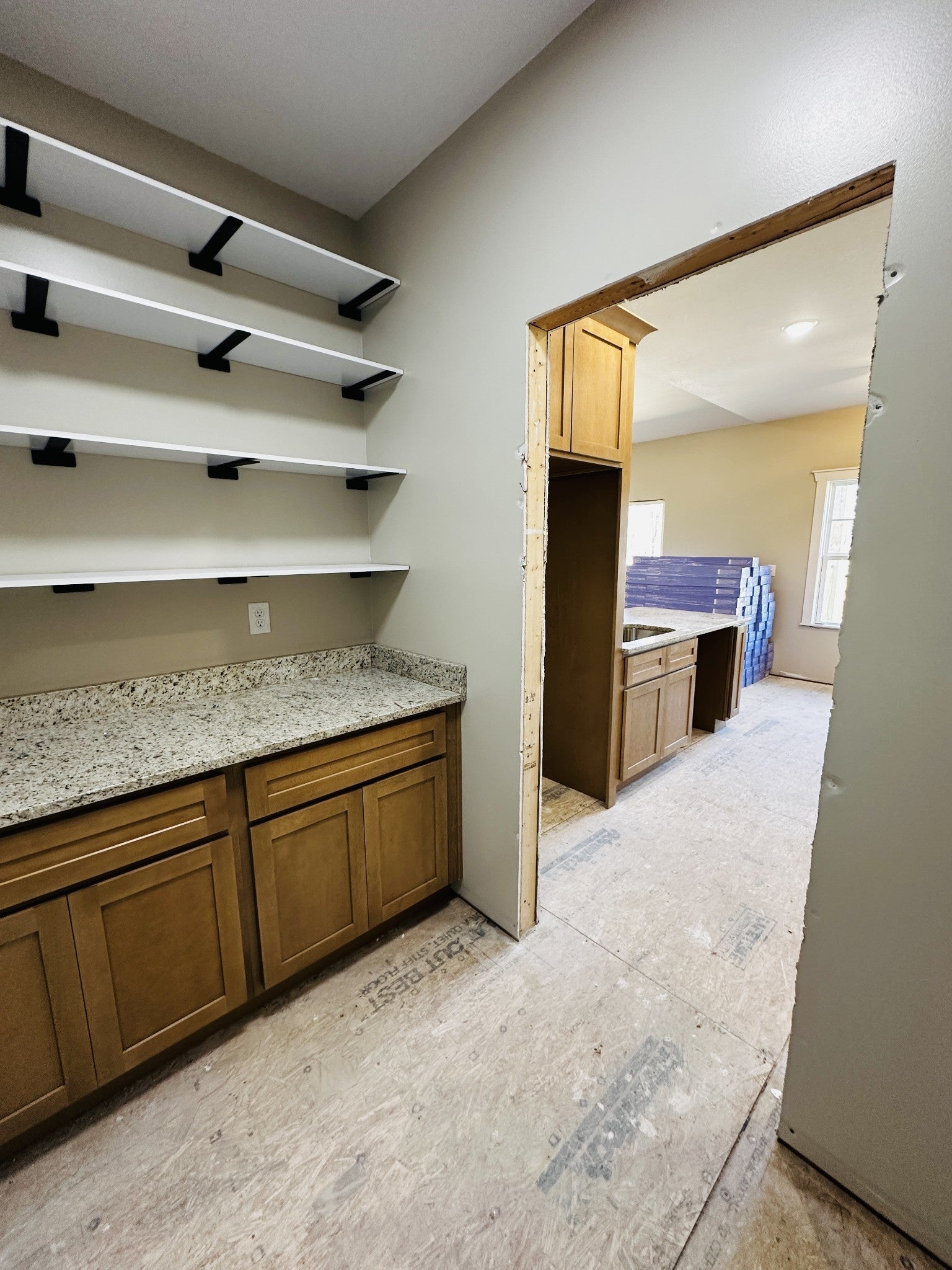 A rare find in Jamestown, where thoughtful design meets elevated finishes at an affordable price point. This new construction in Stonecliff Acres offers 1,250 sq ft finished and 1,847 sq ft under roof on a spacious 1.03-acre lot, with estimated completion by the end of February. Step into a true foyer and a unique layout that provides bedroom separation without a traditional split floor plan, while maintaining open-concept living with defined spaces. Thoughtful trim work, vaulted ceilings, 9-foot ceilings, and luxury laminate flooring elevate the interior. The kitchen is the heart of the home, featuring above builder-grade two-toned cabinetry with crown molding, glass-front doors, warm granite countertops, stainless steel appliances, and a rare Butler’s pantry with matching finishes. Enjoy a huge backyard overlooking farmland and unwind on the covered back deck, perfect for outdoor living and peaceful views.