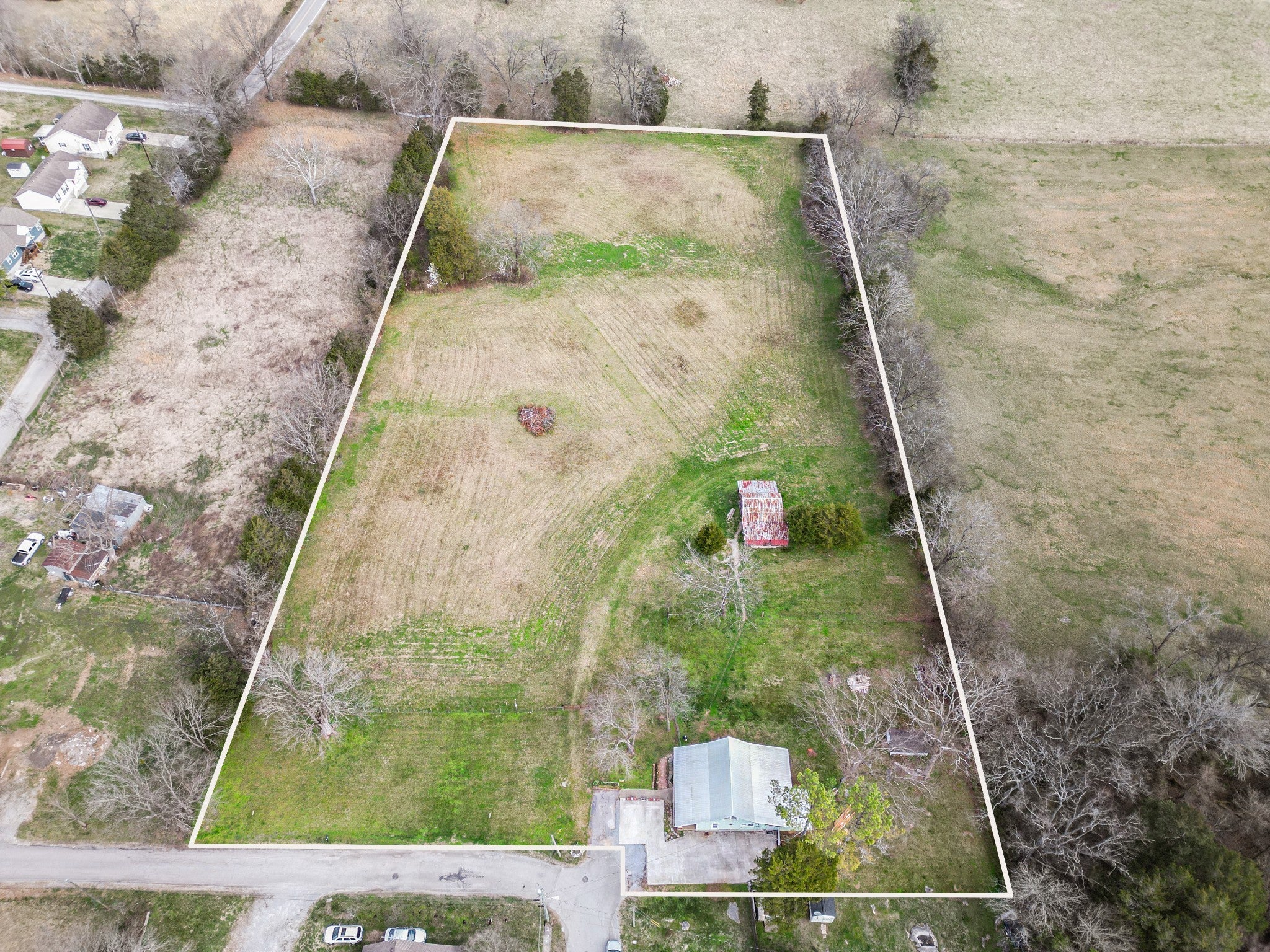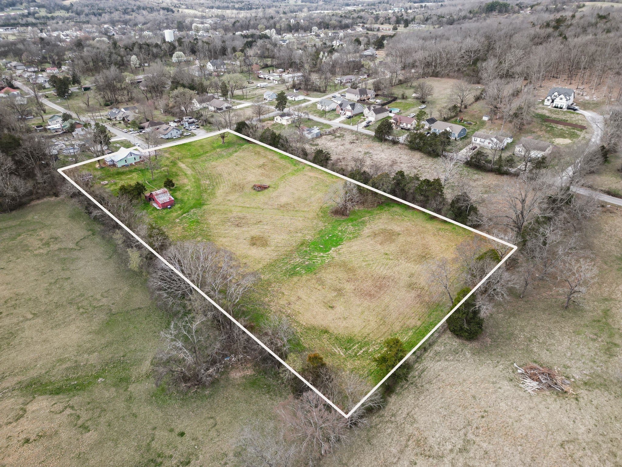 Home and 4.95 acres+/- per survey with barn in city limits*TWO SEPARATE TRACTS SELLING TOGETHER AS ONE*SEWER AVAILABLE PER CITY OFFICIALS*possible development/rental income potential*LAND is CLEARED, BEAUTIFUL & LEVEL/SLIGHTLY ROLLING*Great little mini farm in a rural atmosphere within the city limits*Cash, in-house bank loan, construction loan preferred*NO FHA/VA/USDA*sale includes both parcels 5.00 and 5.01 of map 128 *selling "as is" condition*Home has unique hardwood and tile flooring* pex plumbing*some replacement windows*steel supports added underneath by AFS.Large expandable space upstairs for possible extra sq ft*concrete drive plus parking pads* House need major repairs but has potential.
