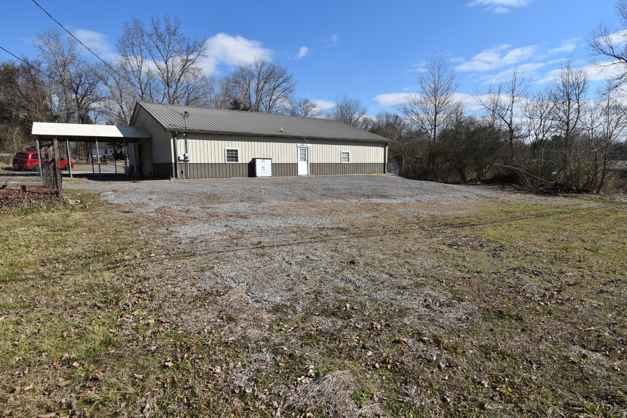 A multi-use commercial building is available for lease, featuring road frontage on State HWY 48 S and convenient access from Rob Road. The building is 3,000 square feet, situated on more than half an acre. It features high ceilings with ample ballast lighting, is well-ventilated and equipped with ceiling fans and a heating/cooling system, and includes two bathrooms. There is also a kitchenette/reception area and additional office space located upstairs. The exterior includes an attached carport and an oversized bay door, set on a graveled lot. This opportunity, with endless possibilities, is not to be missed!