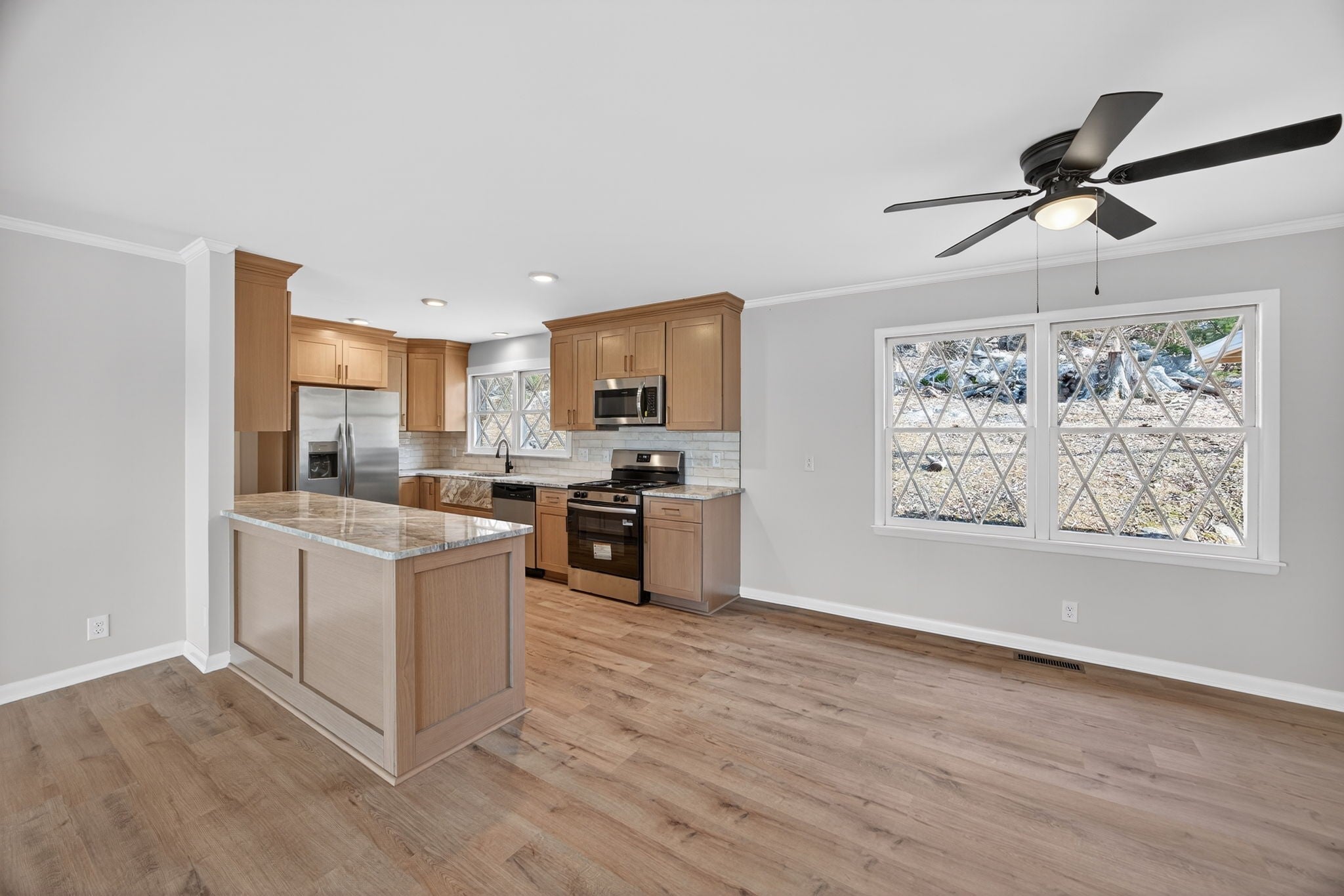 - Ceiling Fan(s), High Ceilings, Open Floorplan