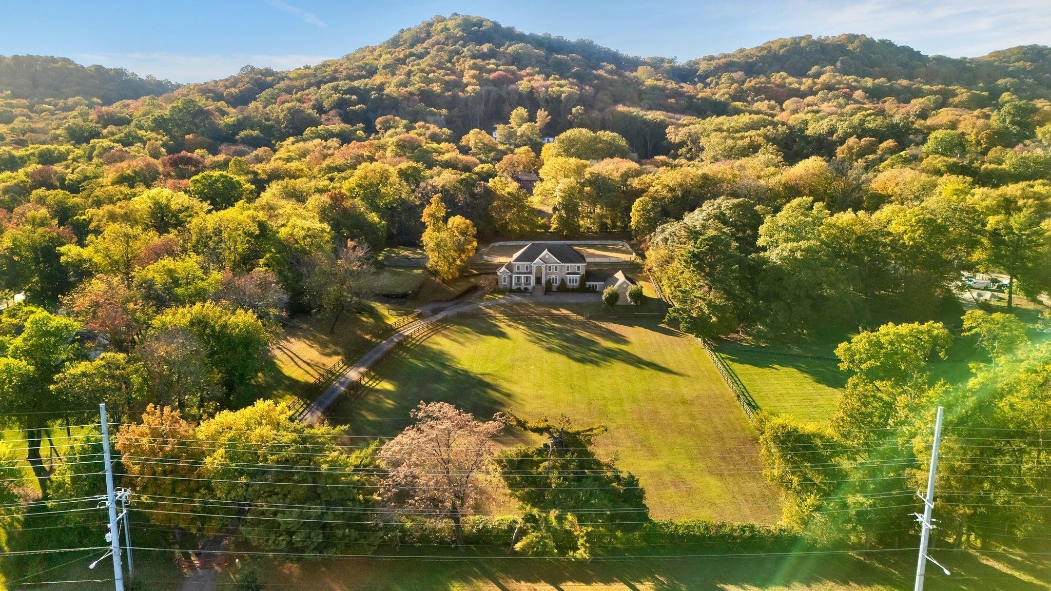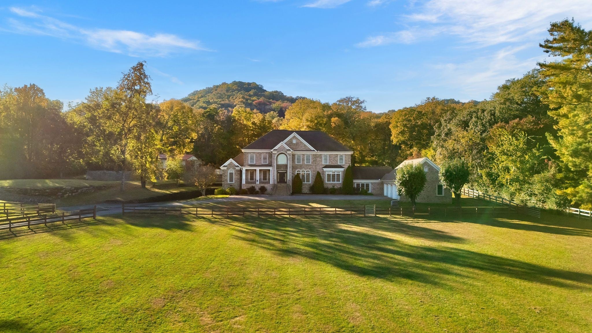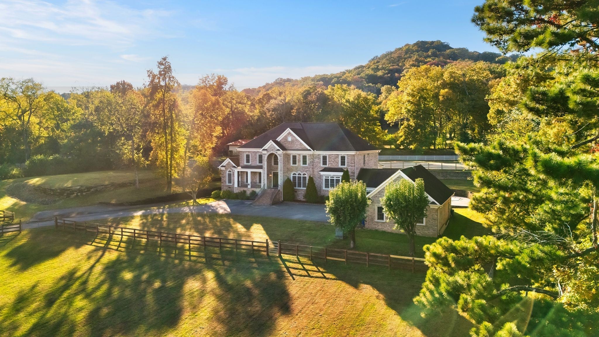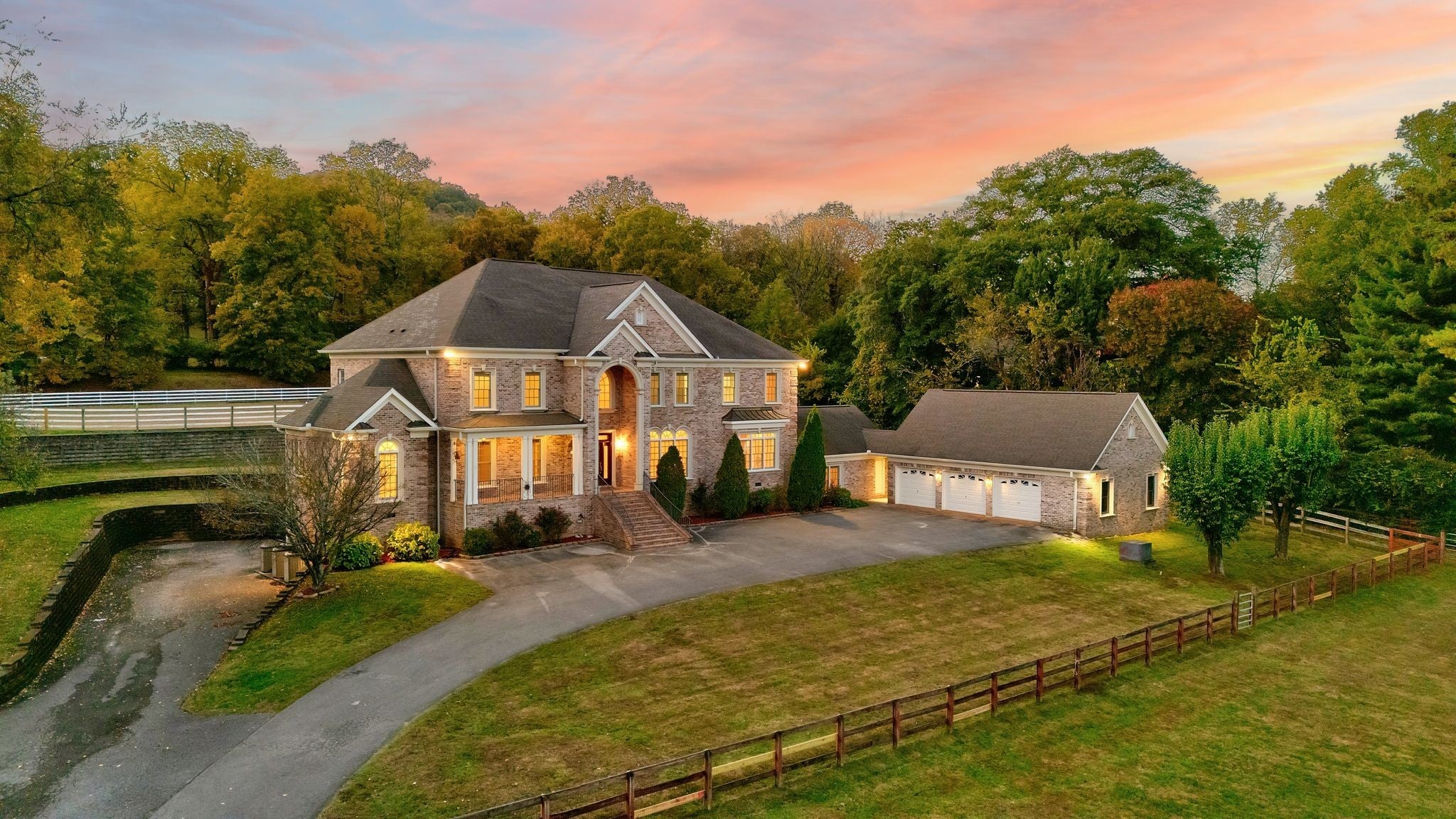 A beautifully gated residence defined by timeless craftsmanship and thoughtful design. The home features hardwood floors, detailed crown molding, and a fully finished basement complete with a wine cellar and additional garage space. The main level offers a spacious primary suite with a reading nook and spa-like bath, along with an additional en suite bedroom, private office, and mudroom connecting to a three-car garage. Upstairs, three en suite bedrooms are complemented by walk-in closets and flexible spaces ideal for a study, gym, or guest retreat. Outdoors, the property is complete with an in-ground pool, barn, and full-house generator. A lower paddock and upper arena add both function and character, creating a rare setting that balances elegance with versatility.