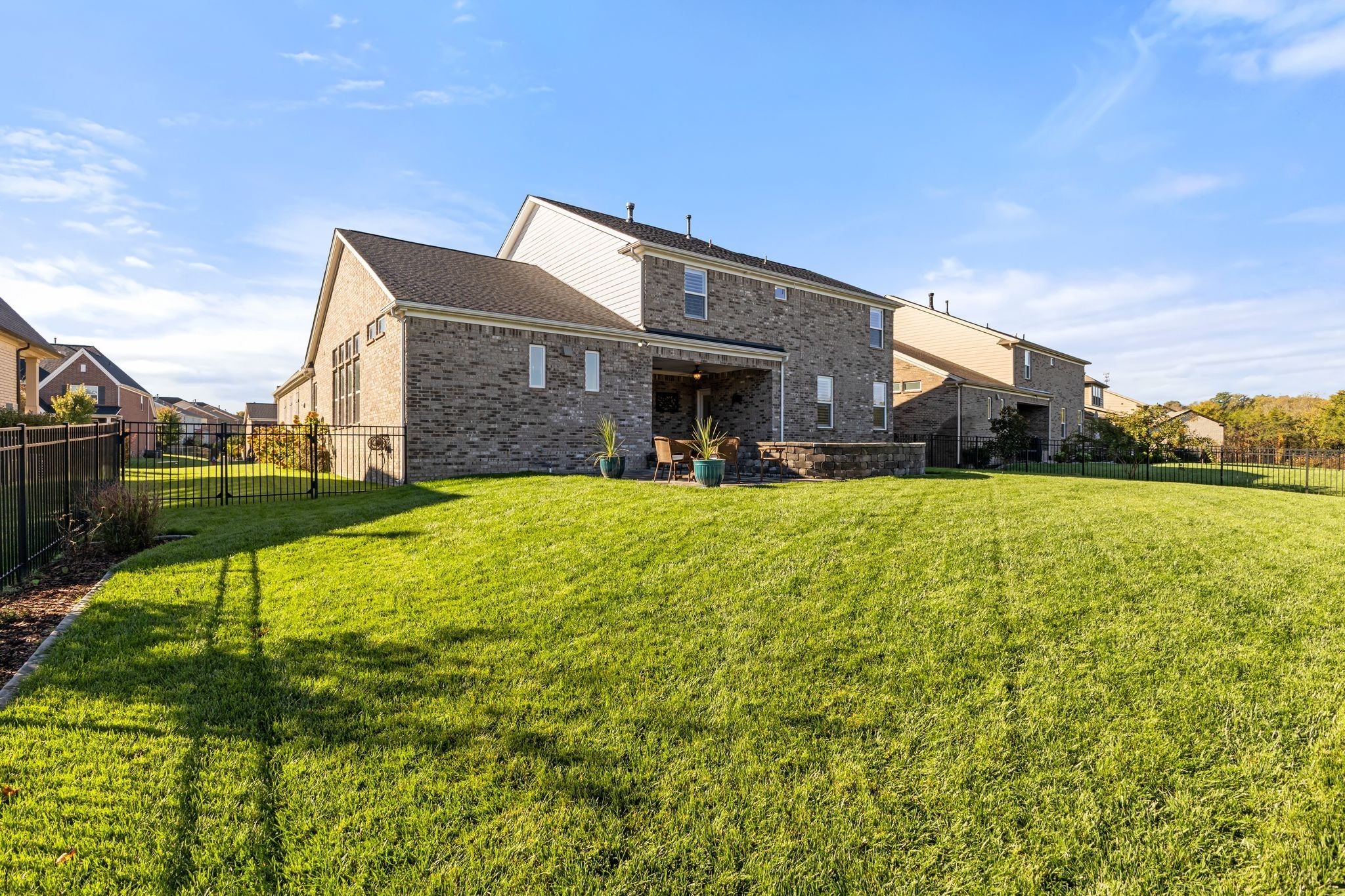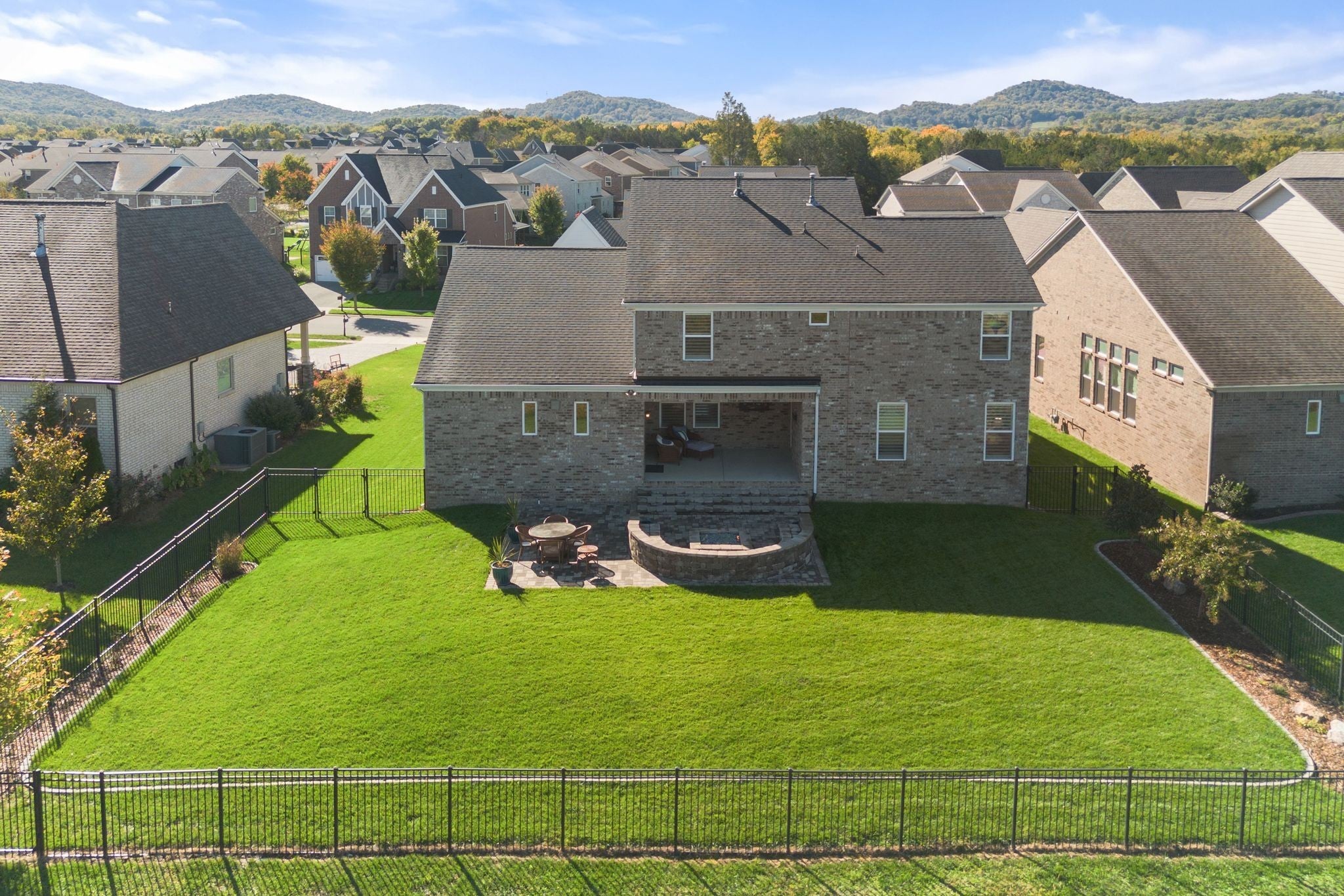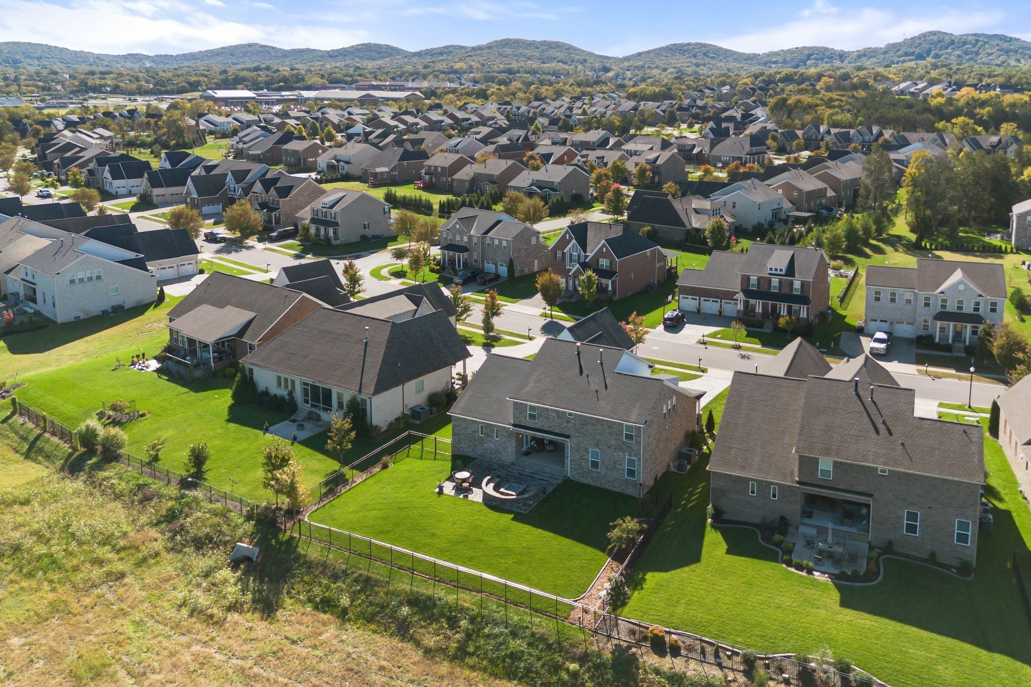 Stunning Summerlyn home in Nolensville with privacy and upscale finishes. The property backs to a protected, wooded area with wildlife and no homes behind, creating a quiet, private setting. Walk to Nolensville High, Mill Creek Middle and Elementary, and the new Publix shopping center. The main level features a primary suite with tray ceiling and private access to the covered patio. The chef’s kitchen has granite counters, gas range with custom vent hood, and reverse-osmosis water at the sink and fridge. All bedrooms include custom California Closet systems—no wire shelving—and plantation shutters add a refined look throughout. The great room shows exposed wood beams and a warm, open layout. A dedicated office includes a tray ceiling and wainscoting. Mechanical upgrades include a Rheem tankless water heater and Kinetico water softener. Outdoors, the covered patio has two ceiling fans and opens to a large paved area with a firepit and seating—ideal for entertaining. The yard is fenced with three gates, on irrigation, and features programmable exterior LED lighting and multiple outdoor outlets. Ample storage above the garage completes this move-in ready home.