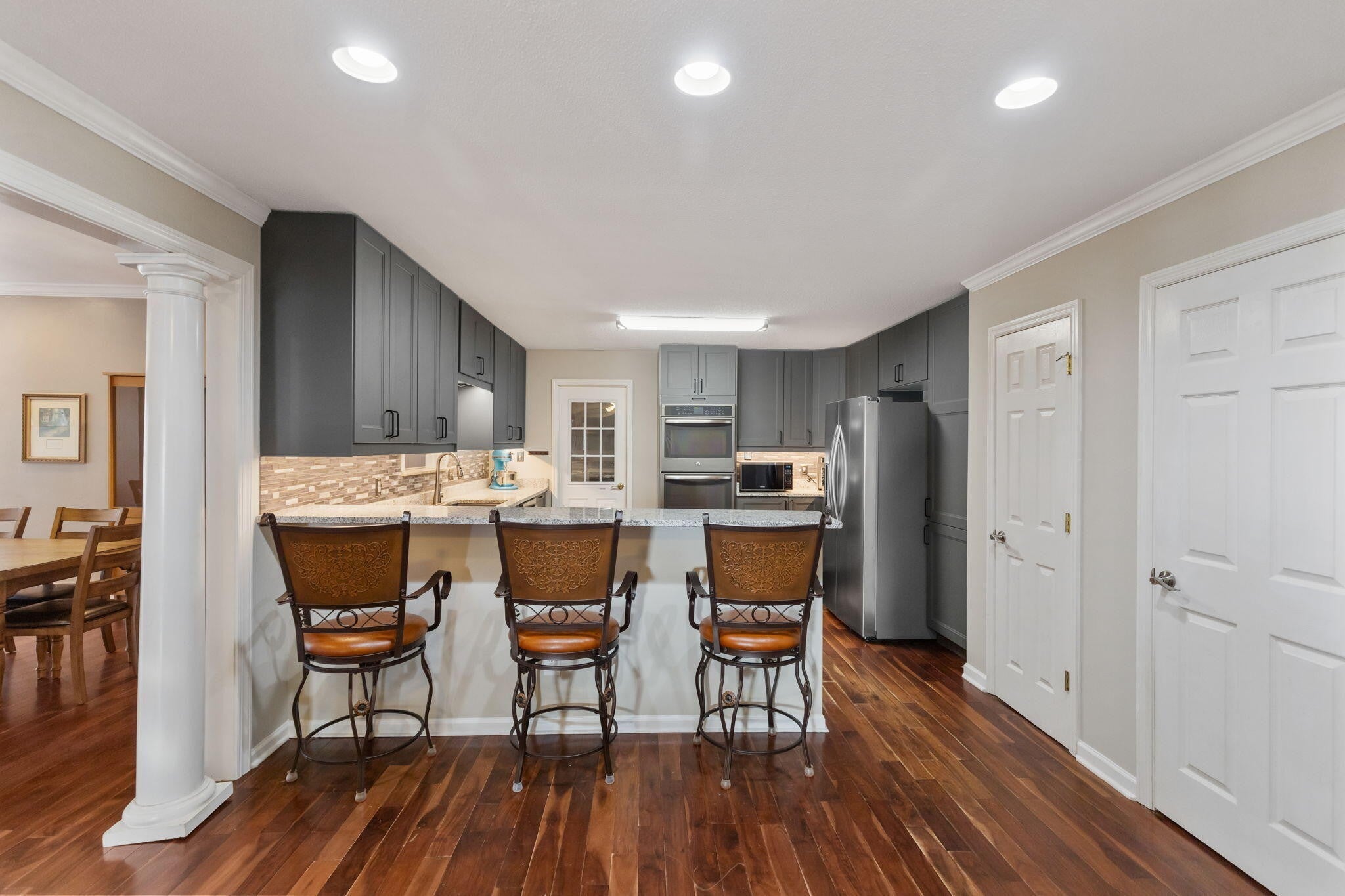 Located in the highly desirable Lakewood Subdivision, this beautiful 3,778 square foot, 5-bedroom, 3.5-bath home offers space, quality, and a layout designed for comfortable living. With two primary suites, it's ideal for multi-generational living or anyone who loves extra room to spread out. The main level was expanded and completely updated in 2008 and features stunning black walnut hardwood floors, an open floor plan, and a gorgeous mountain stone gas log fireplace that creates a warm and inviting focal point. The oversized family room with plantation shutters flows beautifully into the formal living and dining areas, making this the perfect home for entertaining. The updated kitchen includes granite countertops, stainless steel appliances, updated lighting, and a bar area for gathering. Step outside to the spacious side deck — ideal for hosting friends, grilling out, or enjoying a quiet evening. The primary suite serves as a private retreat featuring a newer luxury shower, jetted tub, commode, vanity, updated flooring, and added storage cabinets. Additional highlights include three HVAC units, newer windows, fresh paint, a sprinkler system, and a 3-car garage. Lakewood residents enjoy wonderful amenities including a basketball court, playground, and three fishing ponds. Conveniently located close to schools, shopping, restaurants, and the hospital, this is a must-see home that offers comfort, space, and a lifestyle you'll love.