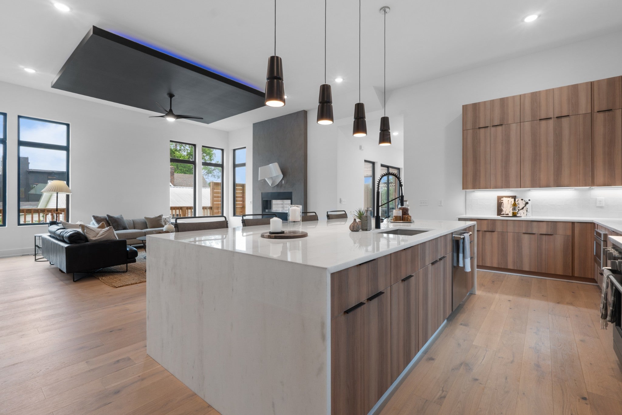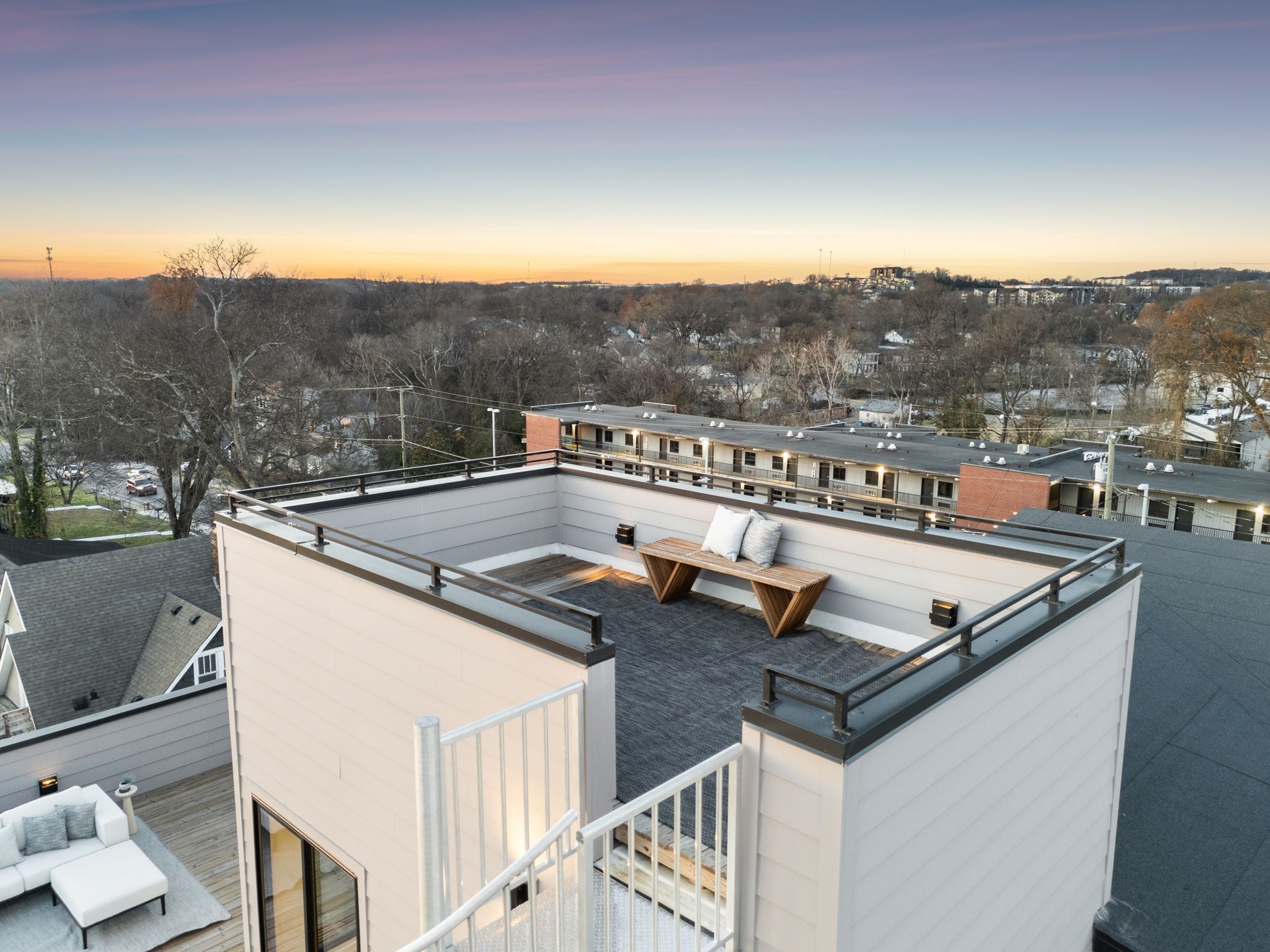 Modern luxury in one of East Nashville’s most iconic historic neighborhoods. Ideally positioned across from the transformative Lincoln Tech redevelopment—bringing a new park, curated dining, and retail—this home offers both immediate lifestyle appeal and long-term upside. Inside, soaring 10–12 ft ceilings, designer finishes, and architectural detail set the tone. A dramatic double-sided fireplace anchors the living space and connects seamlessly to a private courtyard designed for intimate gatherings. Multiple wet bars elevate the entertaining experience, while superior insulation creates a quiet, peaceful interior retreat. The rooftop Lookout Tower captures sweeping Downtown Nashville views—an unforgettable setting for New Year’s Eve and Fourth of July fireworks. A private guest suite with a separate entrance is fully OOSTR-ready, ideal for Airbnb income, extended stays, or flexible hosting. Enjoy walkability to Publix, Orangetheory, and East Nashville’s top restaurants, all while living in a home that blends architectural presence with modern functionality.