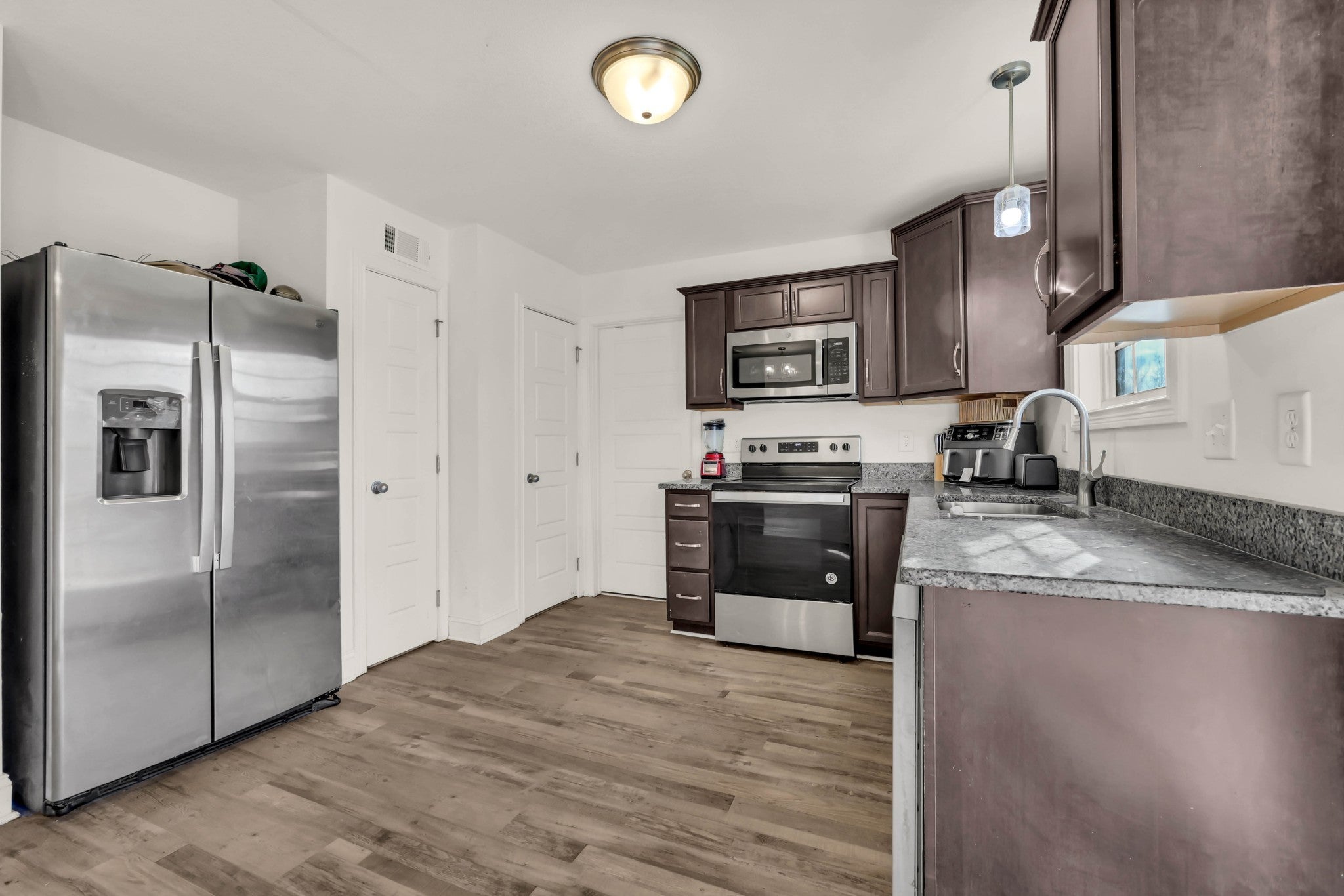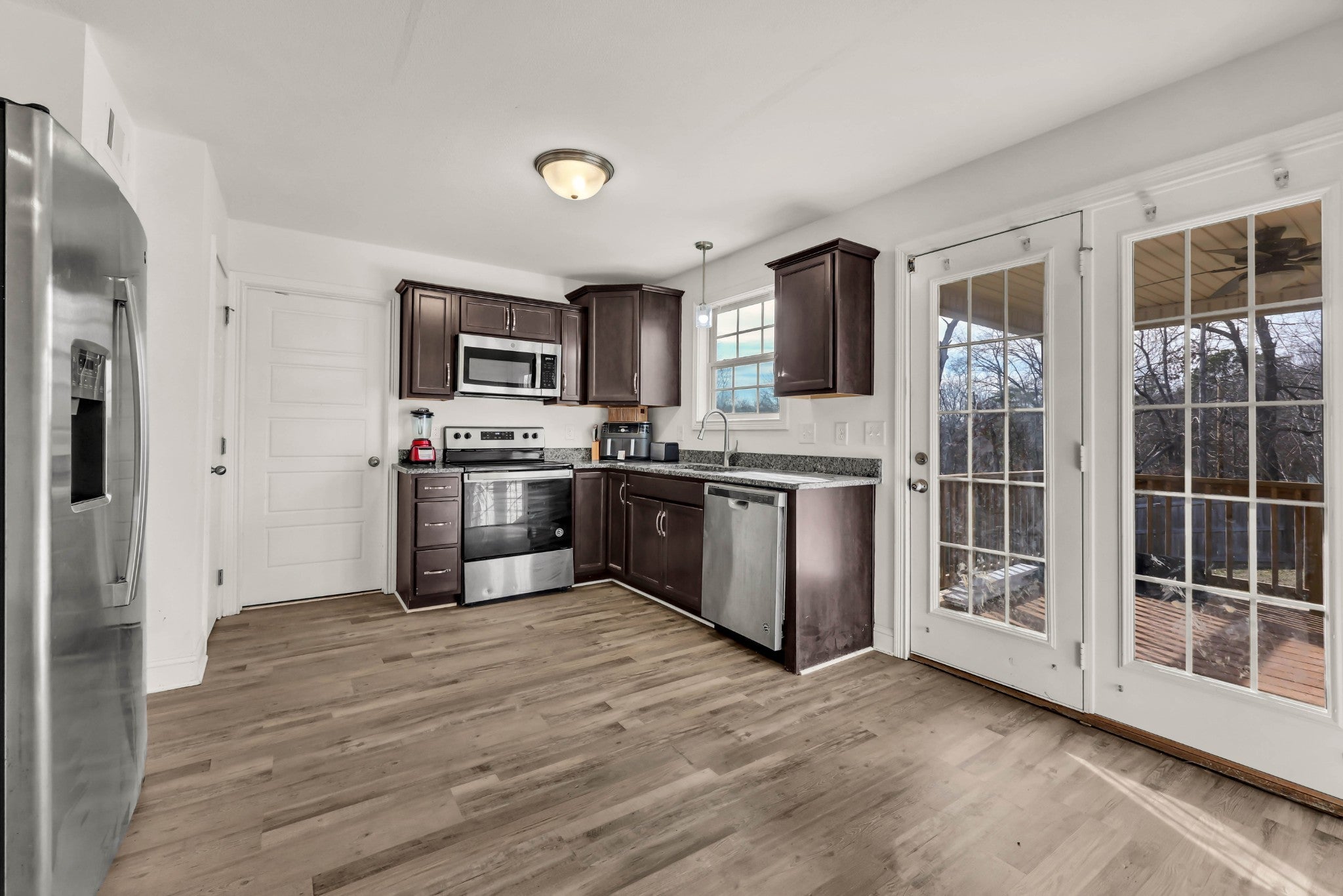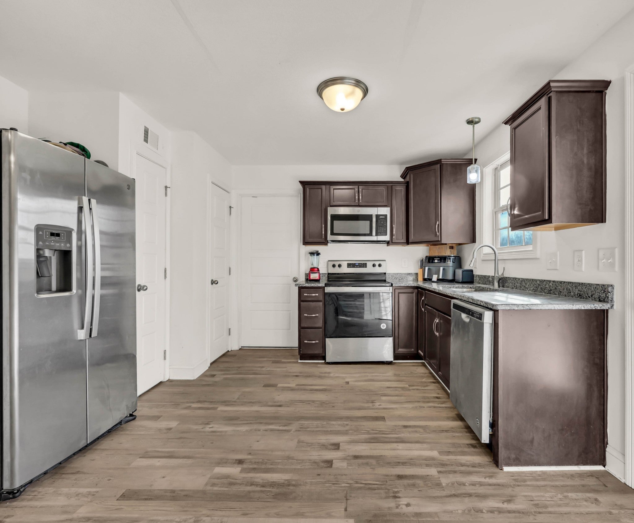- Oven, Dishwasher, Disposal, Microwave, Refrigerator, Stainless Steel Appliance(s)