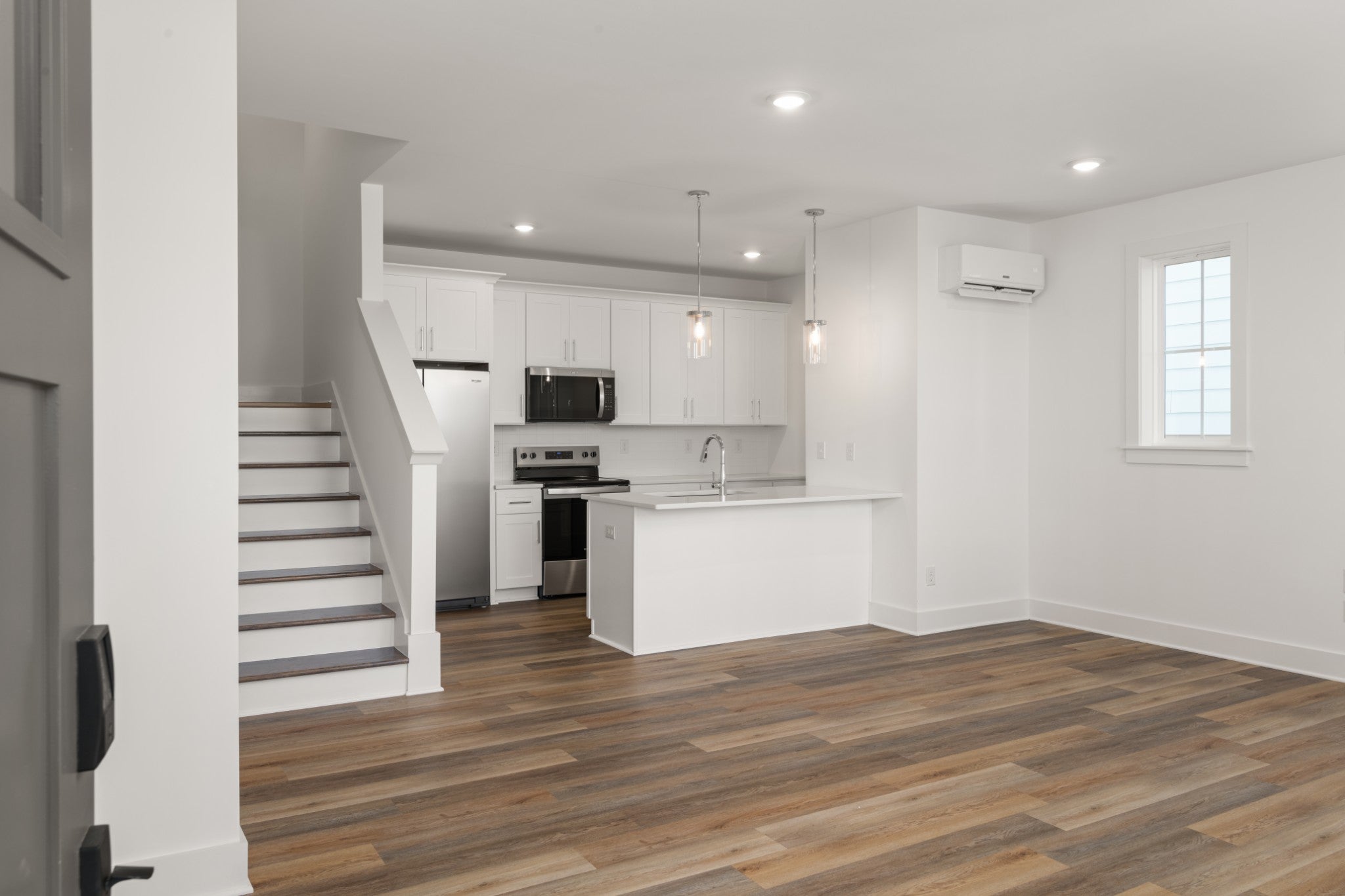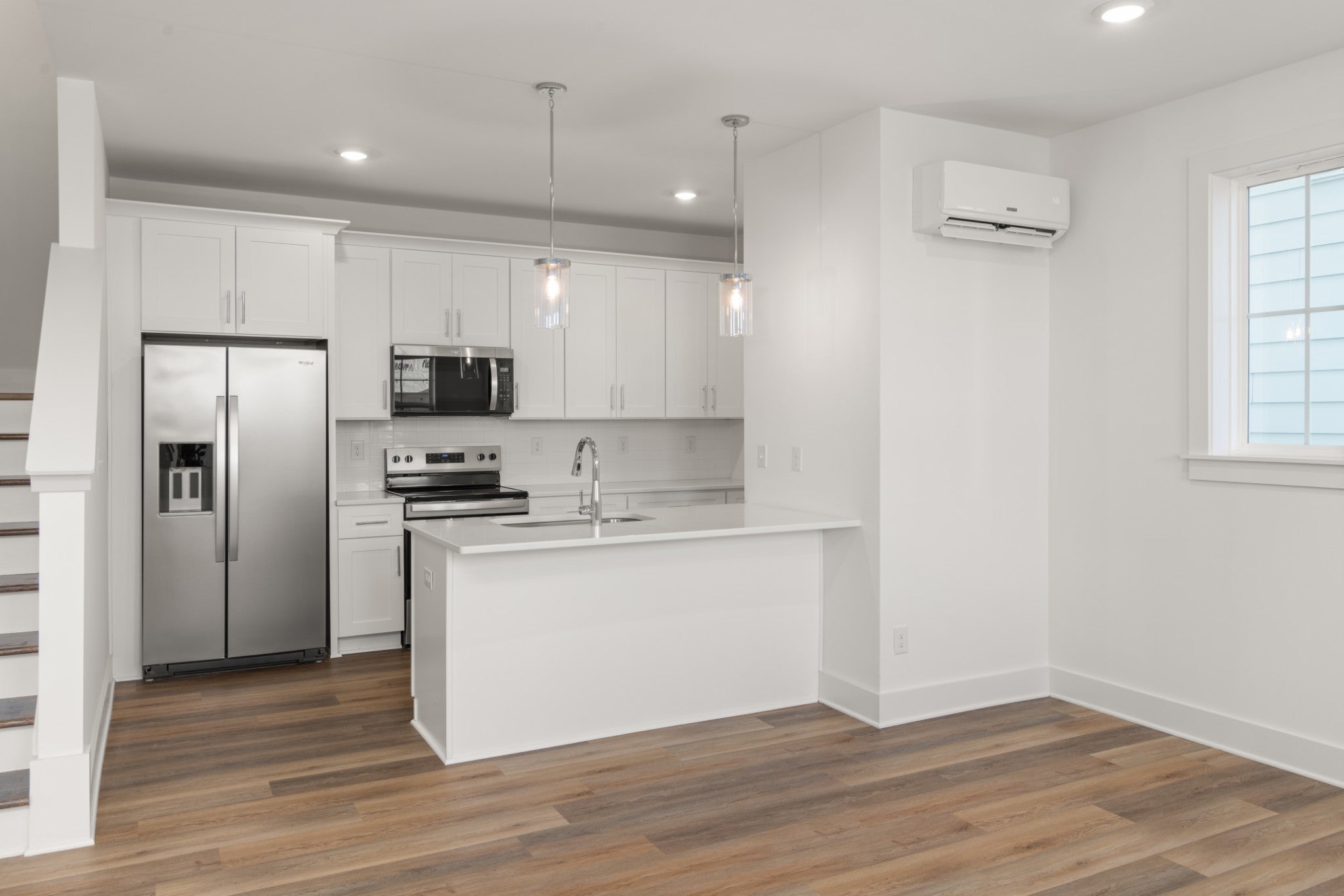 - Electric Range, Dishwasher, Disposal, Microwave, Refrigerator, Stainless Steel Appliance(s)