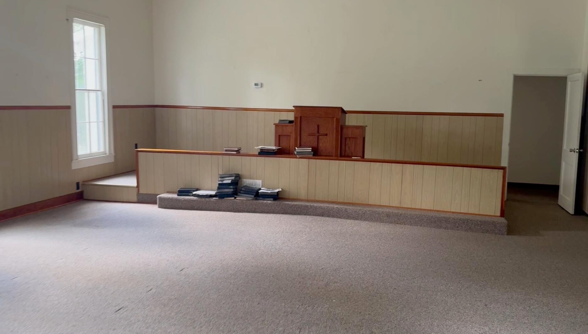 RARE OPPORTUNITY ON THE RIVER + OVER 2 ACRES! This estimated 3,500± sq ft church sits on over 2 scenic acres along the river, offering peaceful views and endless potential. The spacious interior provides ample room for gatherings, events, or future reimagining. With generous parking and beautiful natural surroundings, this property is ideal for continued ministry use, community space, personal home or redevelopment. Unique properties like this don't come along often!
