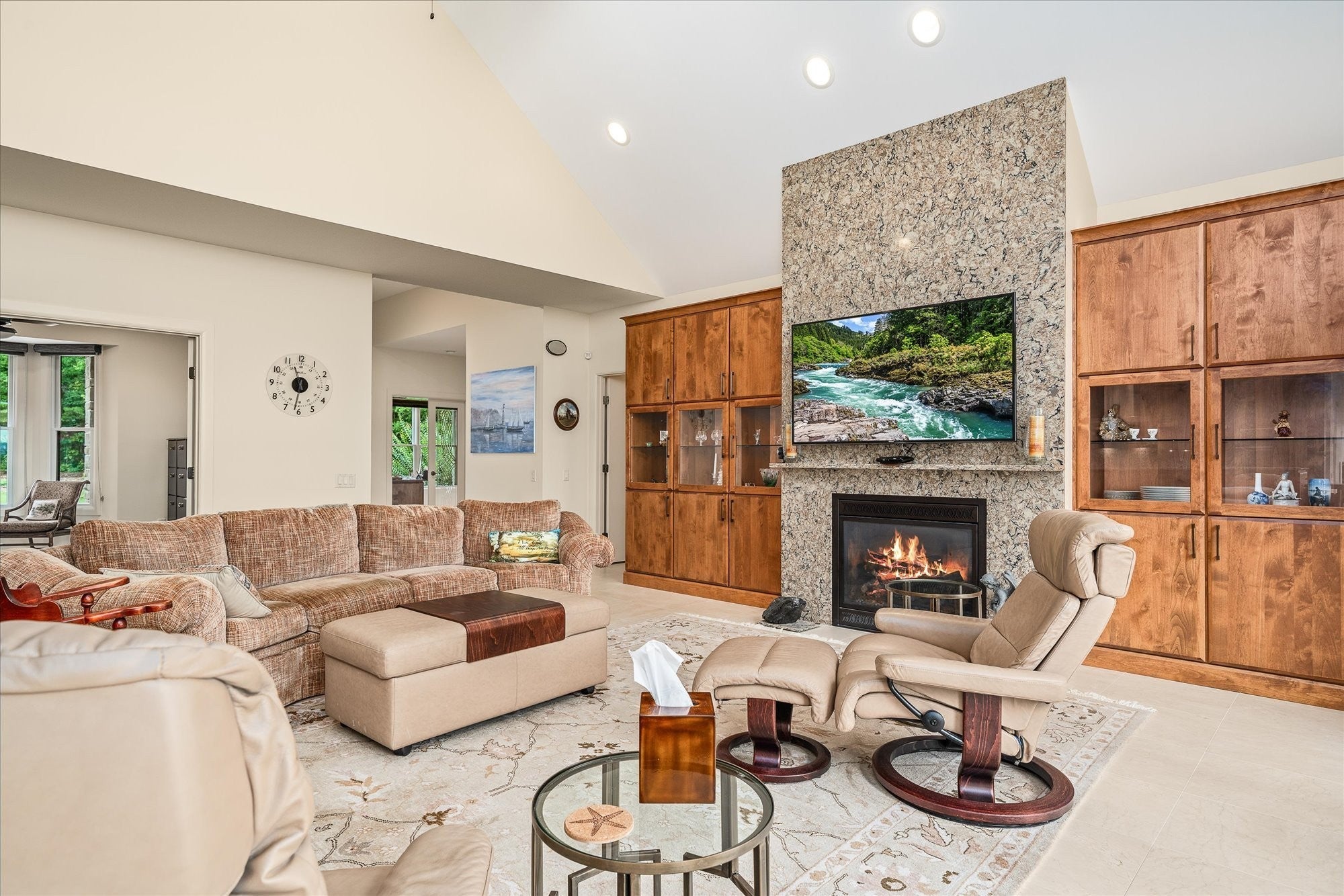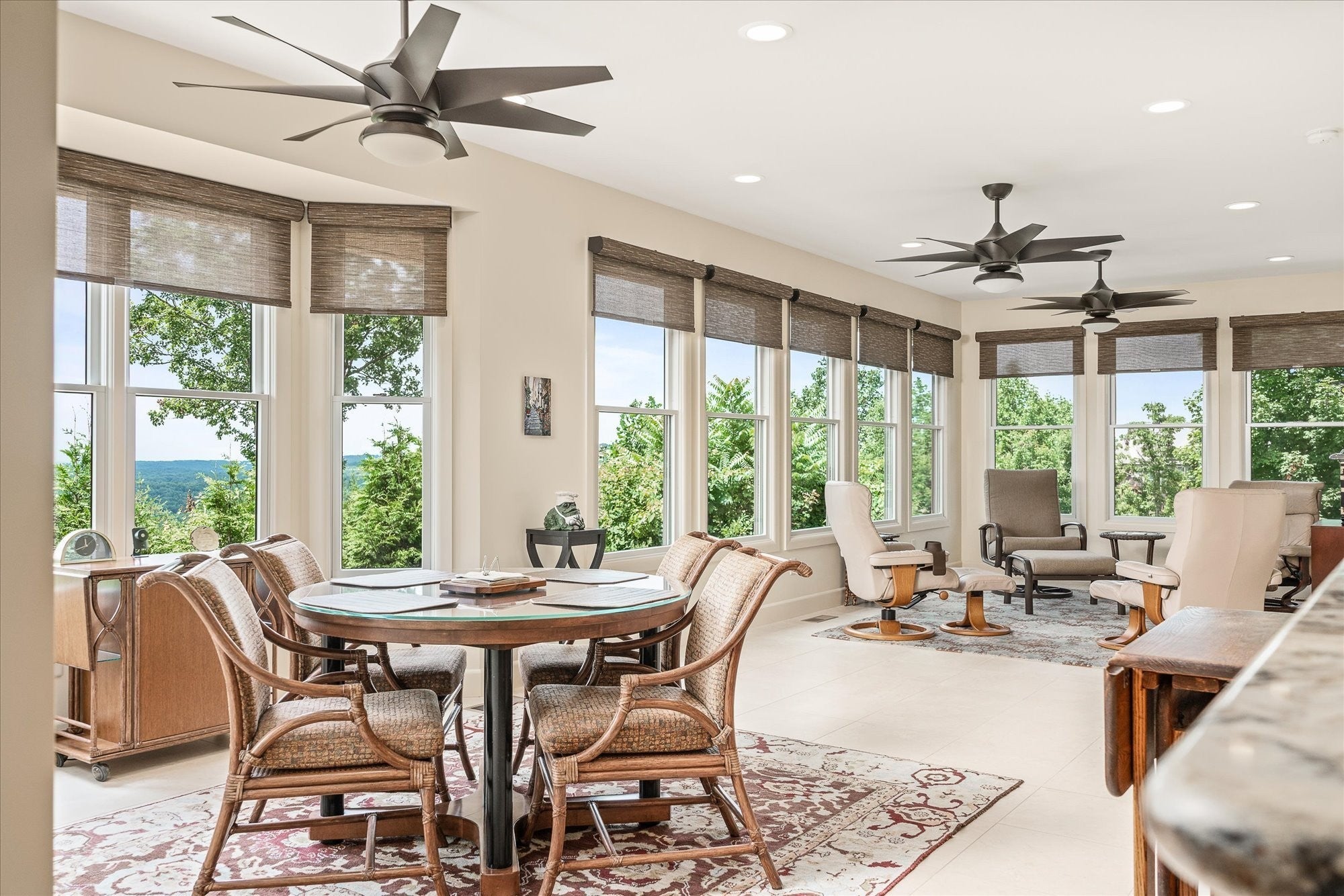 This elegant retreat in The Bluffs was built to celebrate the view—and your life within it. Set on 1.55 private acres, this custom-built retreat offers stunning views, striking architecture, and single-level living with style and substance. The thoughtfully designed layout features 4 bedrooms, 2 full baths, and 2 half baths, with both casual and formal living spaces that flow effortlessly for entertaining or everyday comfort. From the moment you walk in, you're greeted by soaring ceilings and a wall of windows that invite the outdoors in, while the show-stopping floor-to-ceiling granite fireplace anchors the main living space with timeless style. The gourmet kitchen features an oversized granite island, walk-in pantry, and seamless access to the dining area, sunroom, and screened balcony. Enjoy morning coffee from the screened balcony, work from the private office, and retreat to a serene primary suite complete with dual walk-in closets and a spa-style bathroom. There's even a large bonus room with its own half bath upstairs for hobbies, guests, or media space. With a 2.5-car garage, oversized laundry, two dedicated office spaces, and high-end finishes throughout, this home was designed for both function and wow factor. Perfectly positioned among mature trees with a sense of peace and privacy—this is elevated living in one of Fairfield Glade's most sought-after settings. Buyer to verify all information before making an informed offer. https://rem.ax/4ppjVaf