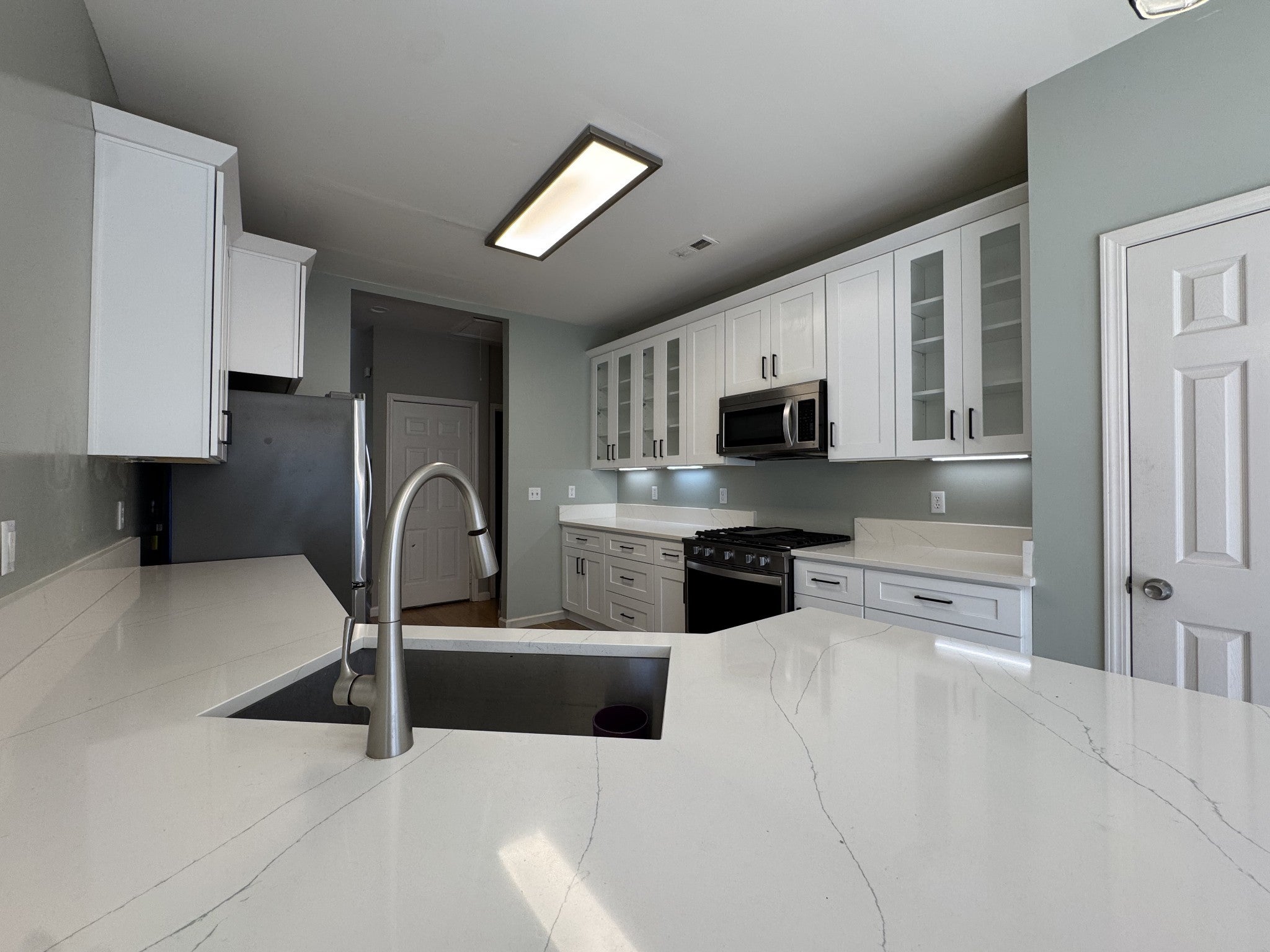 - Gas Oven, Gas Range, Dishwasher, Disposal, Microwave, Refrigerator, Stainless Steel Appliance(s)