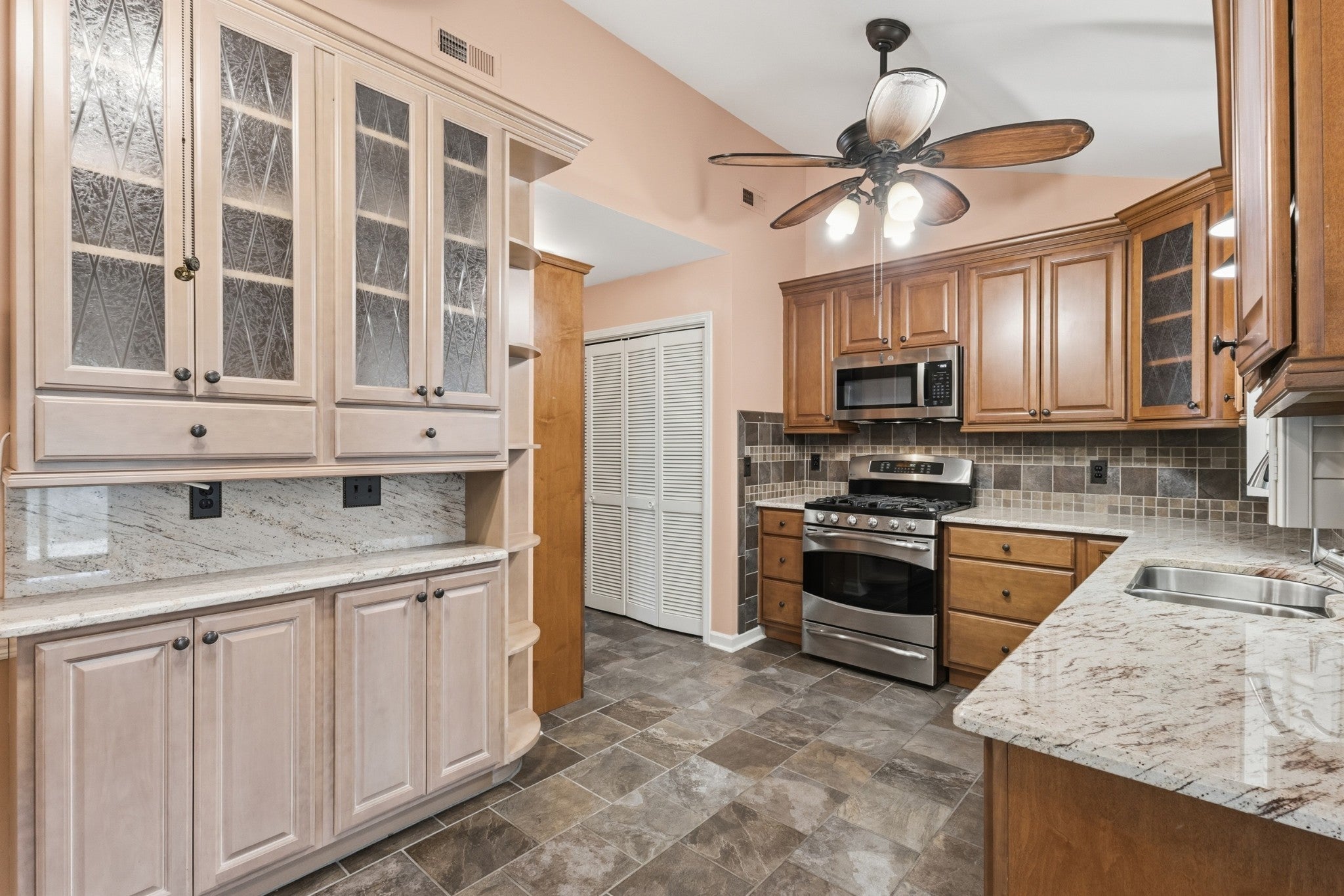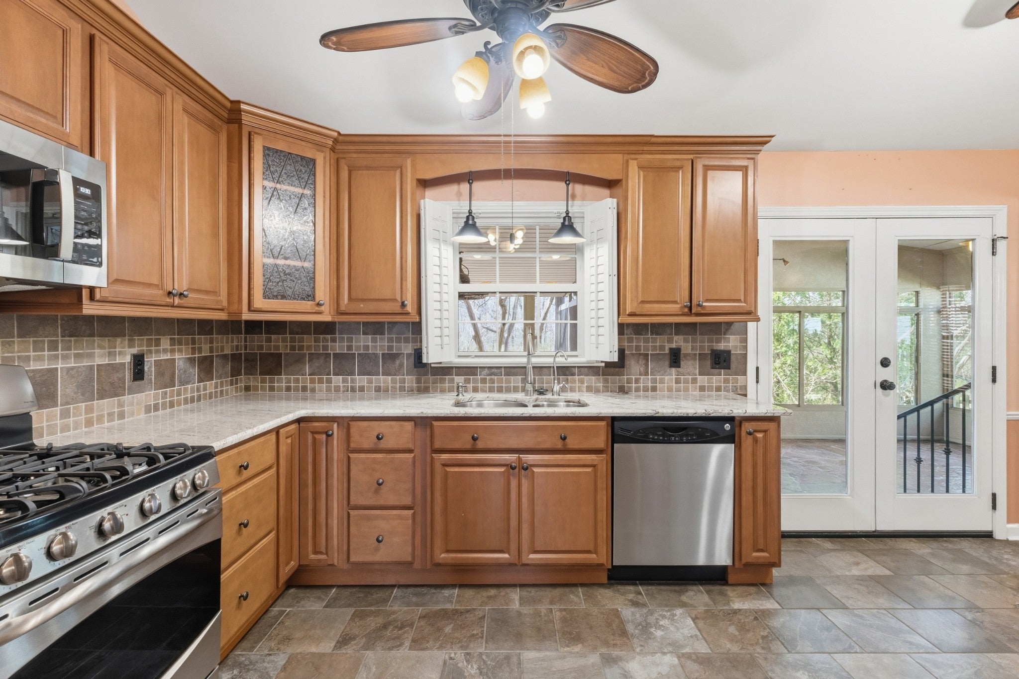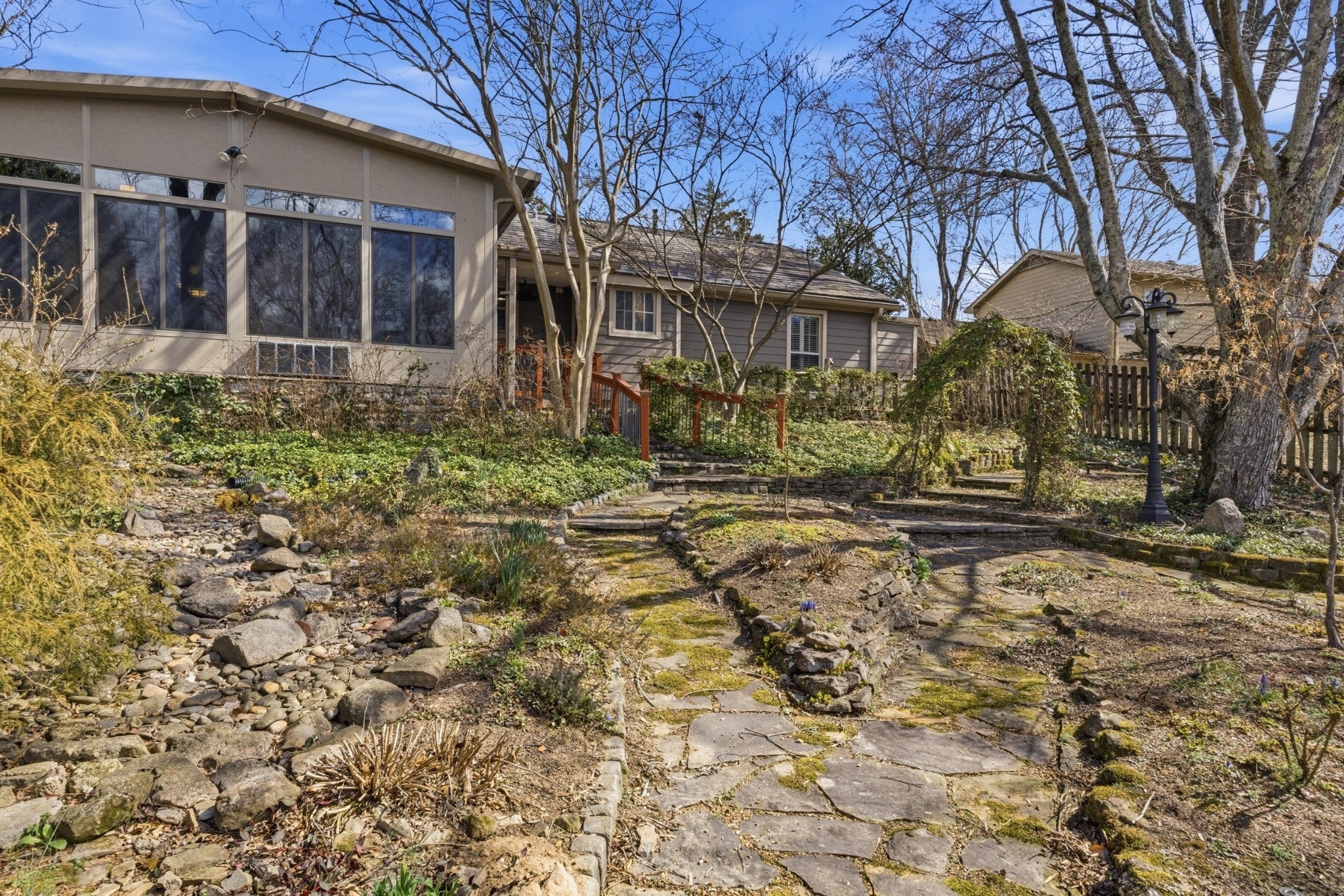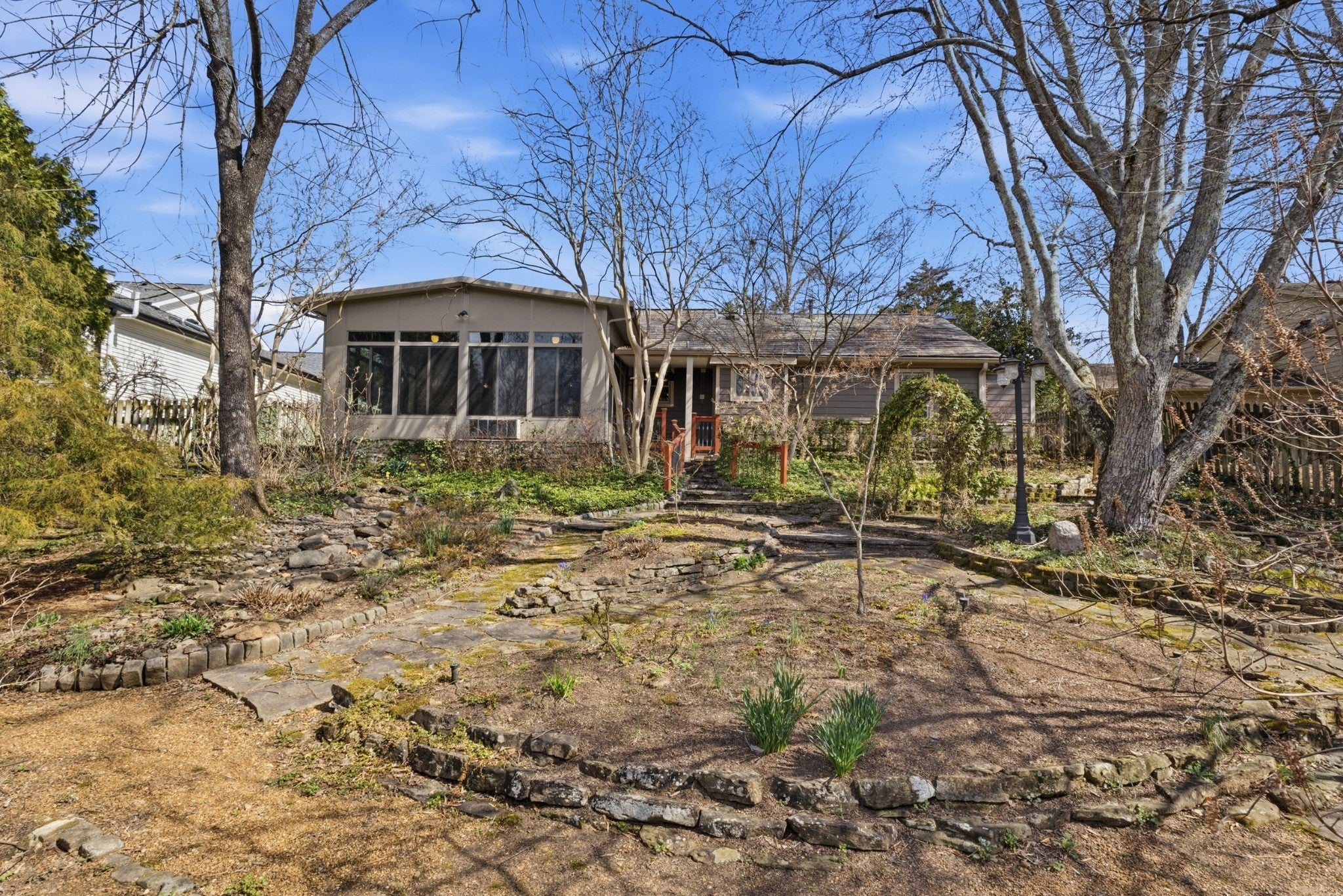 Welcome to one of the most charming and well-maintained homes in desirable River Rest. This distinctive ranch home offers one-level living with character, comfort, and thoughtful upgrades throughout. From the moment you arrive, the brick-paved driveway and TruSlate roof set the tone for the quality and care found inside. The open living area is highlighted by a vaulted ceiling and cozy gas fireplace that’s flanked by bookcases. The plantation shutters are a timeless addition, and the pocket doors and subtle hallway step lighting provide both style and functionality. The kitchen features maple cabinetry, granite countertops, stainless steel appliances (including a gas stove), a tile backsplash, and convenient pull-out pantry drawers. Just steps away is a beautiful oversized primary shower that creates a true retreat experience. The washer, dryer and refrigerator will remain. One bay of the 2-car garage is heated and has been converted into a private office, bonus space or additional bedroom. Completely unnoticeable from the exterior, it offers additional square footage and lots of flexibility. Recent improvements include a new tankless water heater, a new microwave and a new water line from the street to the house that was installed in 2025. One of the most delightful features of the home is the Sunroom that overlooks the extensively landscaped and fenced backyard. It has a gorgeous flagstone floor and a new mini-split air unit that allows for year-round enjoyment. Beautiful green space is located beyond the fence in the back with Cartwright Creek tucked behind. It’s an amazingly serene setting. This special home is being sold in as-is condition and is ready for its next owner to appreciate its unique features and exceptional care.