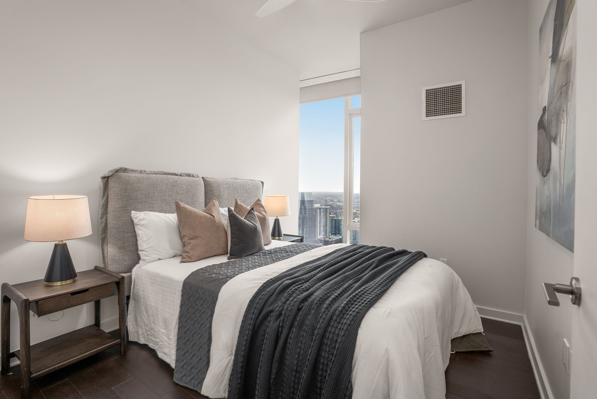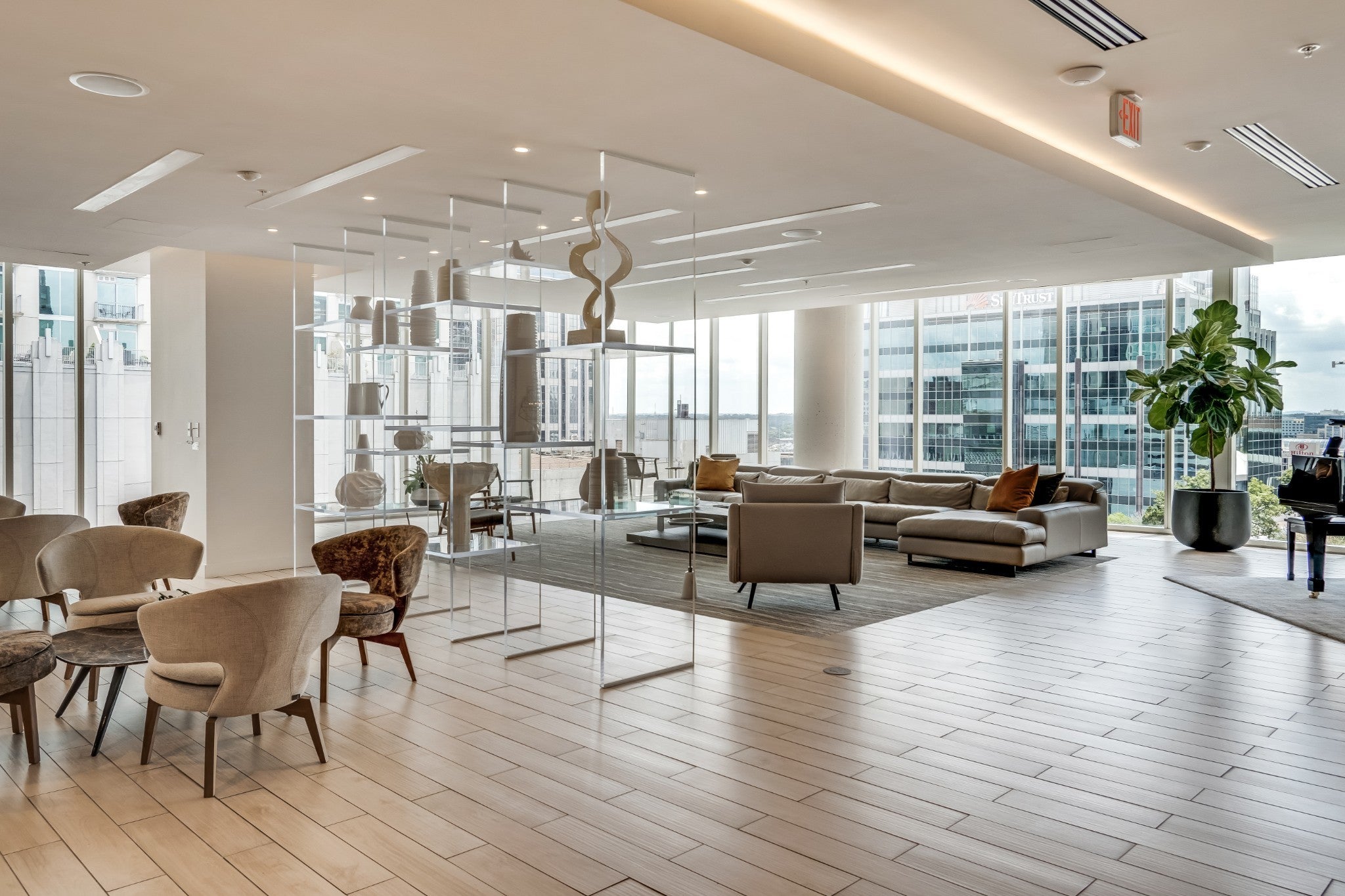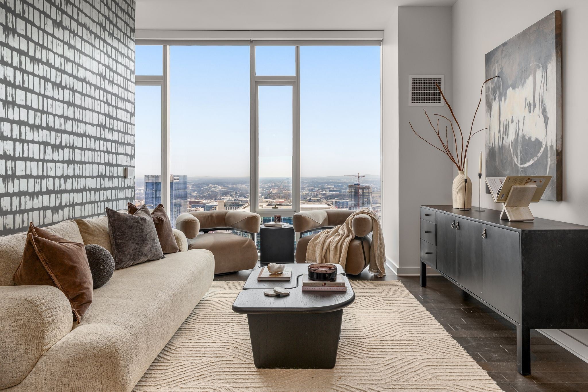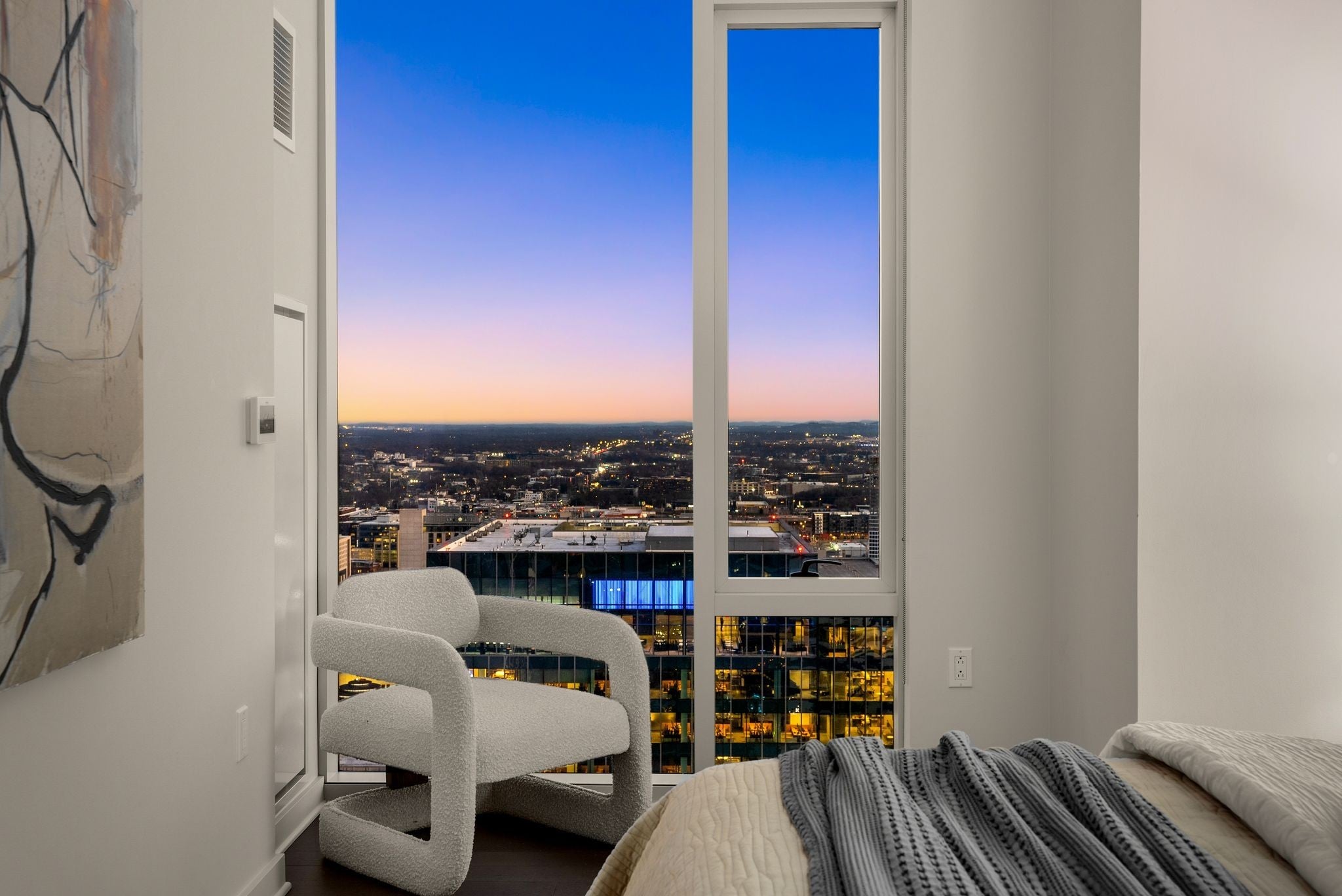 Elevated on the 32nd floor of Downtown Nashville’s premier 505 Tower, this Broadway facing residence delivers elevated living with sweeping skyline views, including the iconic Batman Building. Floor to ceiling glass fills the open layout with natural light, while sleek finishes, custom wallpaper, and a modern kitchen create a polished luxury turnkey living experience. Residents enjoy resort style amenities including two levels of amenities, resort style pool, fully equipped fitness center, private tennis court, pickleball court, wine lounge, and secure dog park. Steps from Nashville’s best dining, music, and entertainment, this residence blends convenience, luxury, and views in Nashville’s premier high rise.