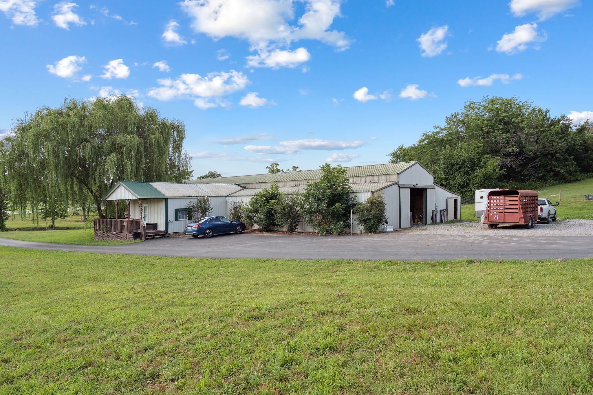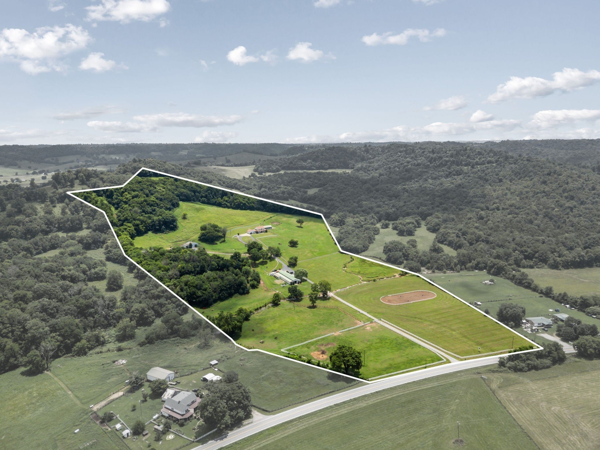Step into a place where country charm and modern comfort come together. This exceptional Middle TN property spans 45 acres, fully fenced and cross-fenced, making it a perfect private equestrian estate. You will enter the property through a gate, crossing over Ashland Creek via a newly fortified concrete bridge that supports 80,000 lbs. This property offers a main residence, a barndominium, 4 barns, and a 40x60 shop. The main residence has been beautifully renovated w/ no detail overlooked, specifically the kitchen w/ custom cabinetry, high end appliances, and elegant finishes. All bedrooms are thoughtfully arranged. The primary bedroom is conveniently located on the main floor, while 4 additional bedrooms are situated upstairs, each with its own full Jack and Jill bathroom. Also, a functional layout featuring a dedicated laundry room and mudroom, conveniently located adjacent to the 2 car garage along with a separate office or flexible-use room. (See specific details of residences and barns in website attached in Links section) Spend your mornings, evenings, or even all day by the salt water in-ground pool w/ brand new pool liner, generator, control panel & filter. The barndominium is 925 sq ft w/ 2 bedrooms and 2 full bathrooms. It also features hardwood and tile flooring, galley kitchen, laundry room, front porch, and an outdoor asphalt parking pad. This space is perfect for those seeking a private estate for their equestrian needs to run as a business or rent it out for passive income. The separation of the main residence from the barndominium is approximately 500ft which ensures continued privacy. The only true way to really appreciate this exceptional Middle TN property is by experiencing it in person. We highly encourage you to call and schedule a private showing of this stunning luxury home and private equestrian estate. Listing agent will be present for all showings. (Upgrades and repair list for the entire property is available in the Documents section)