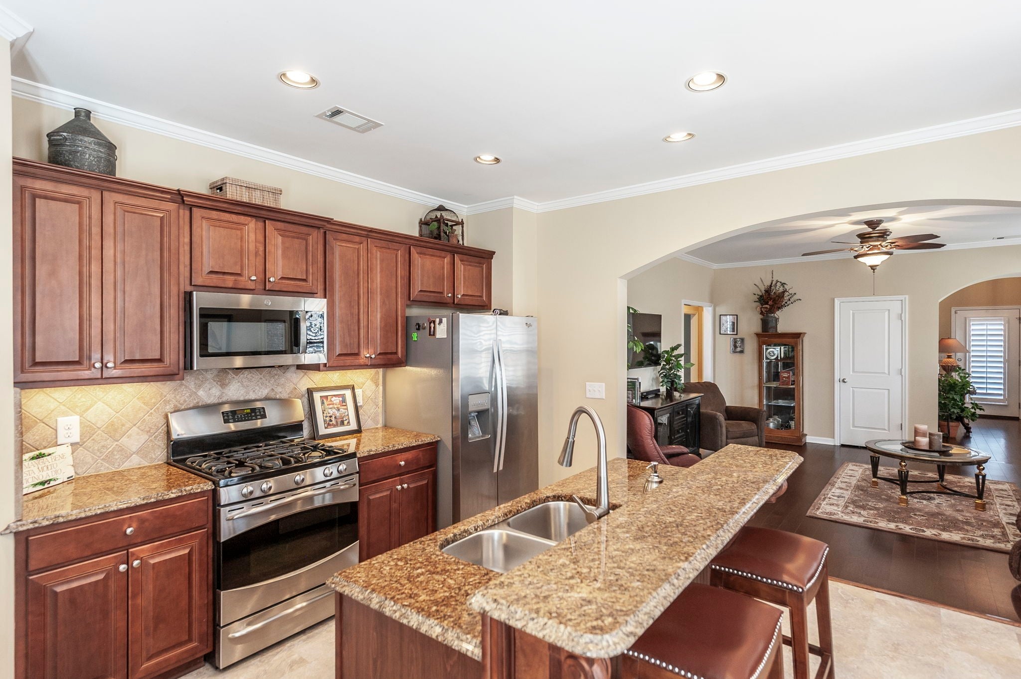 - Electric Oven, Gas Range, Dishwasher, Disposal, Microwave, Stainless Steel Appliance(s)