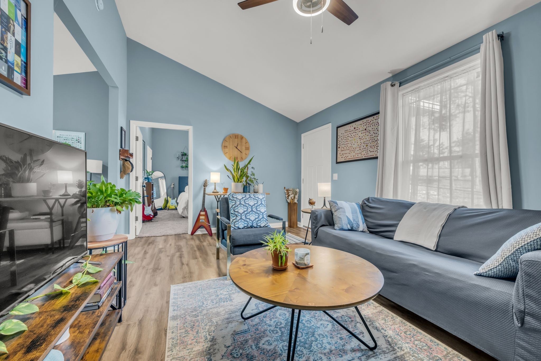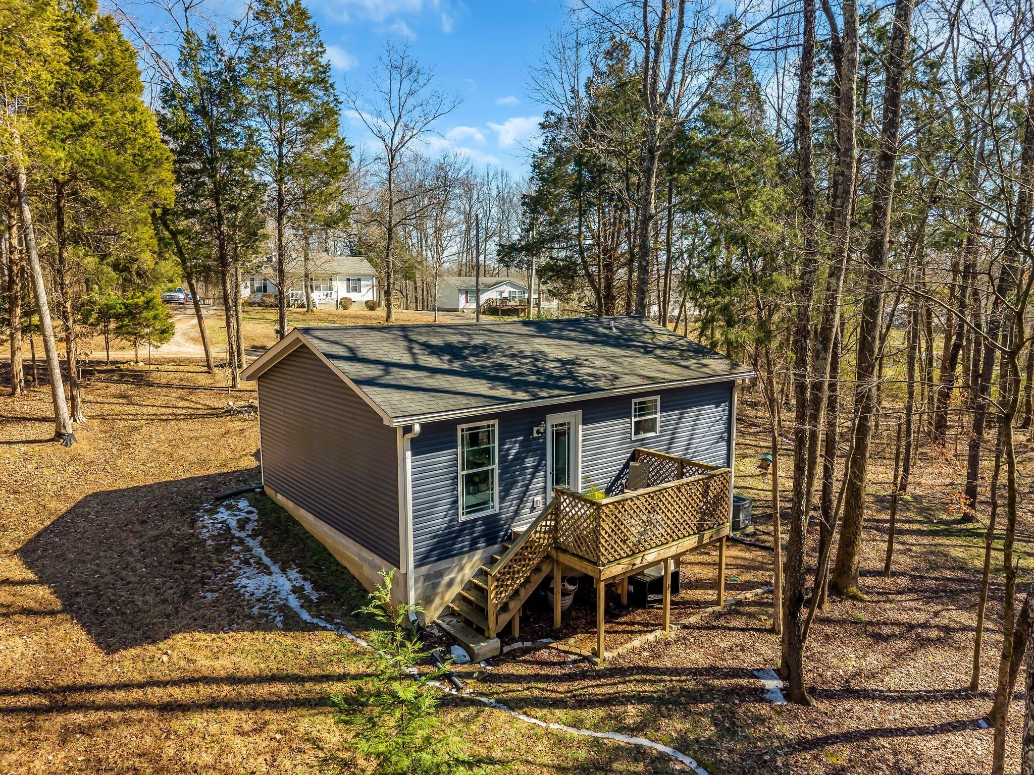 Newer 2022 built home with quality finishes! Septic is for a 1 bedroom but the home has a spare room with closet that functions as a 2nd bedroom, office, or nursery. Spacious open floor plan with vaulted ceilings. LVP flooring in living room and kitchen. Large primary bedroom! Very large 12x8 deck. Nice sized lot, 0.66 acres! Wooded and feels very private and secluded, yet only 8 minutes to downtown Ashland City. Only 40 minutes to Nashville!
