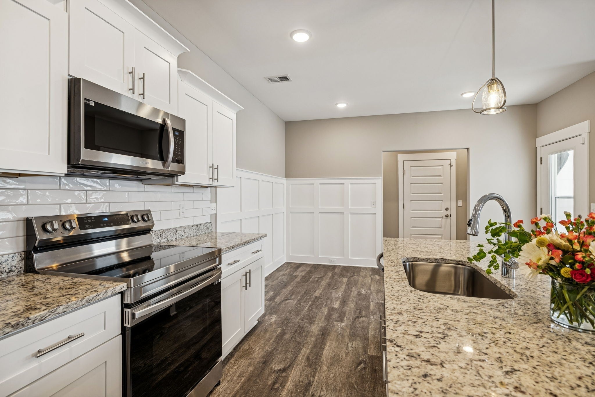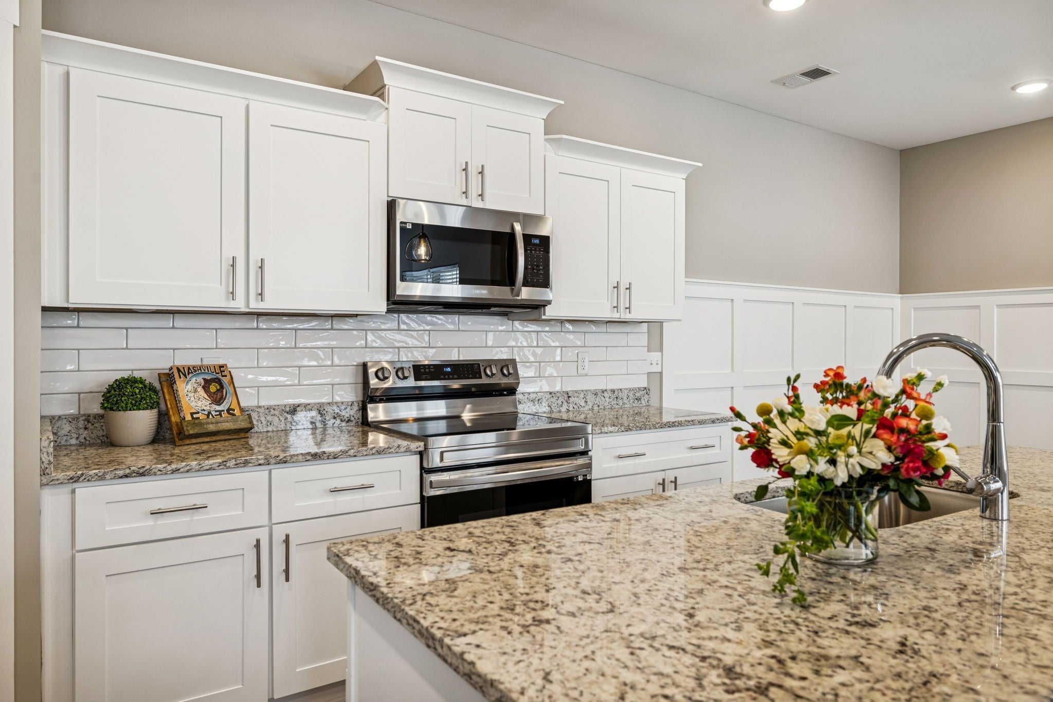 - Electric Oven, Electric Range, Dishwasher, Disposal, Microwave, Refrigerator, Stainless Steel Appliance(s), Smart Appliance(s)