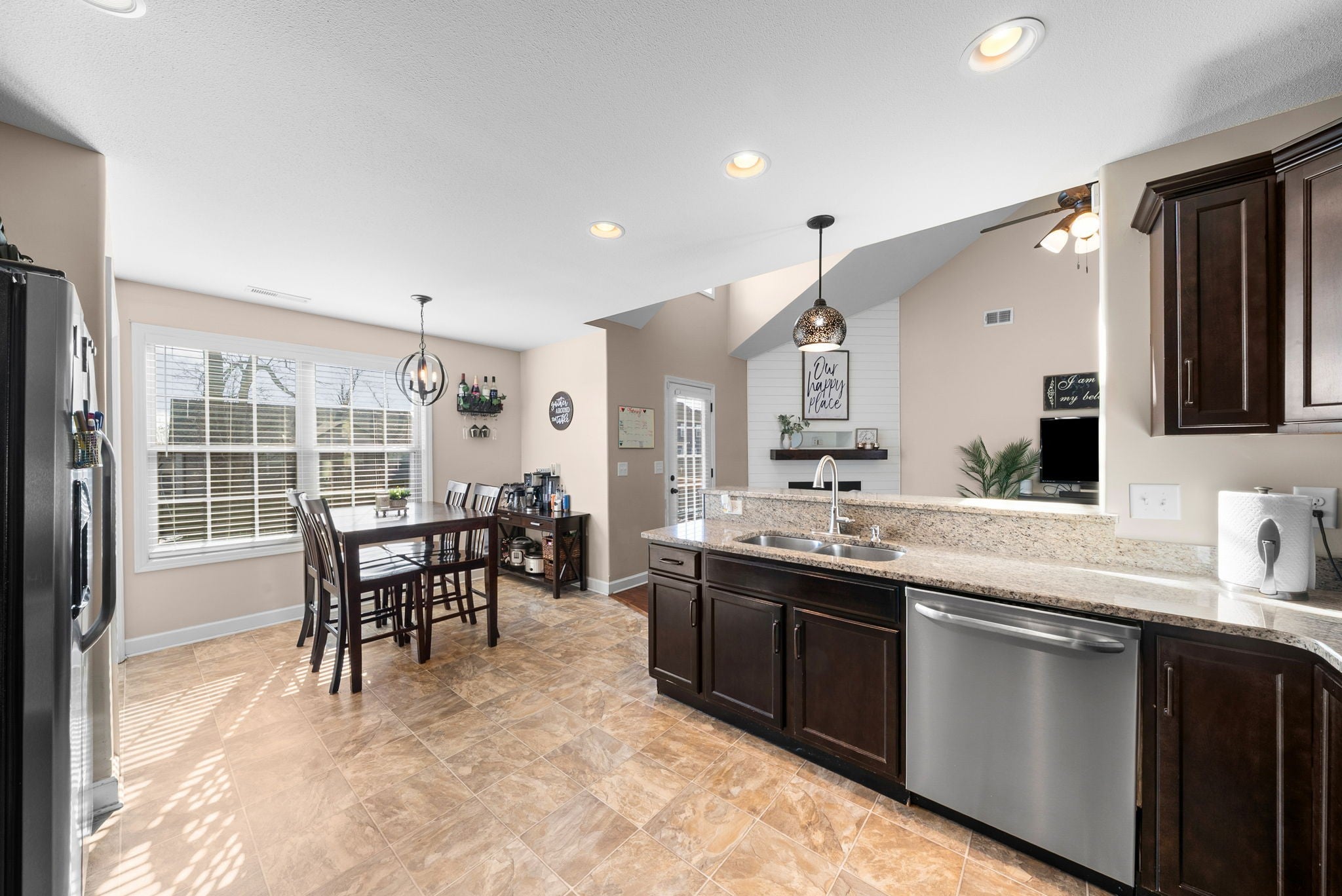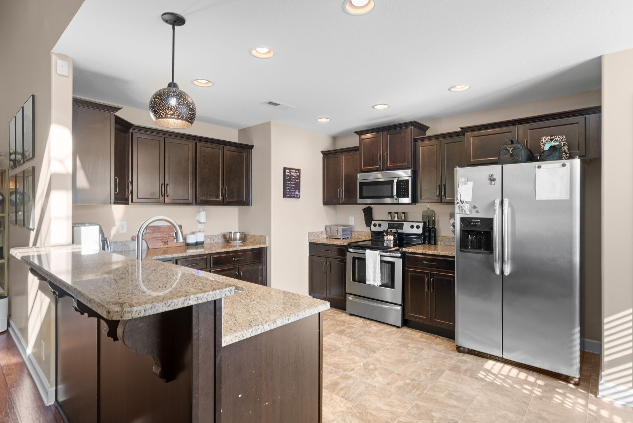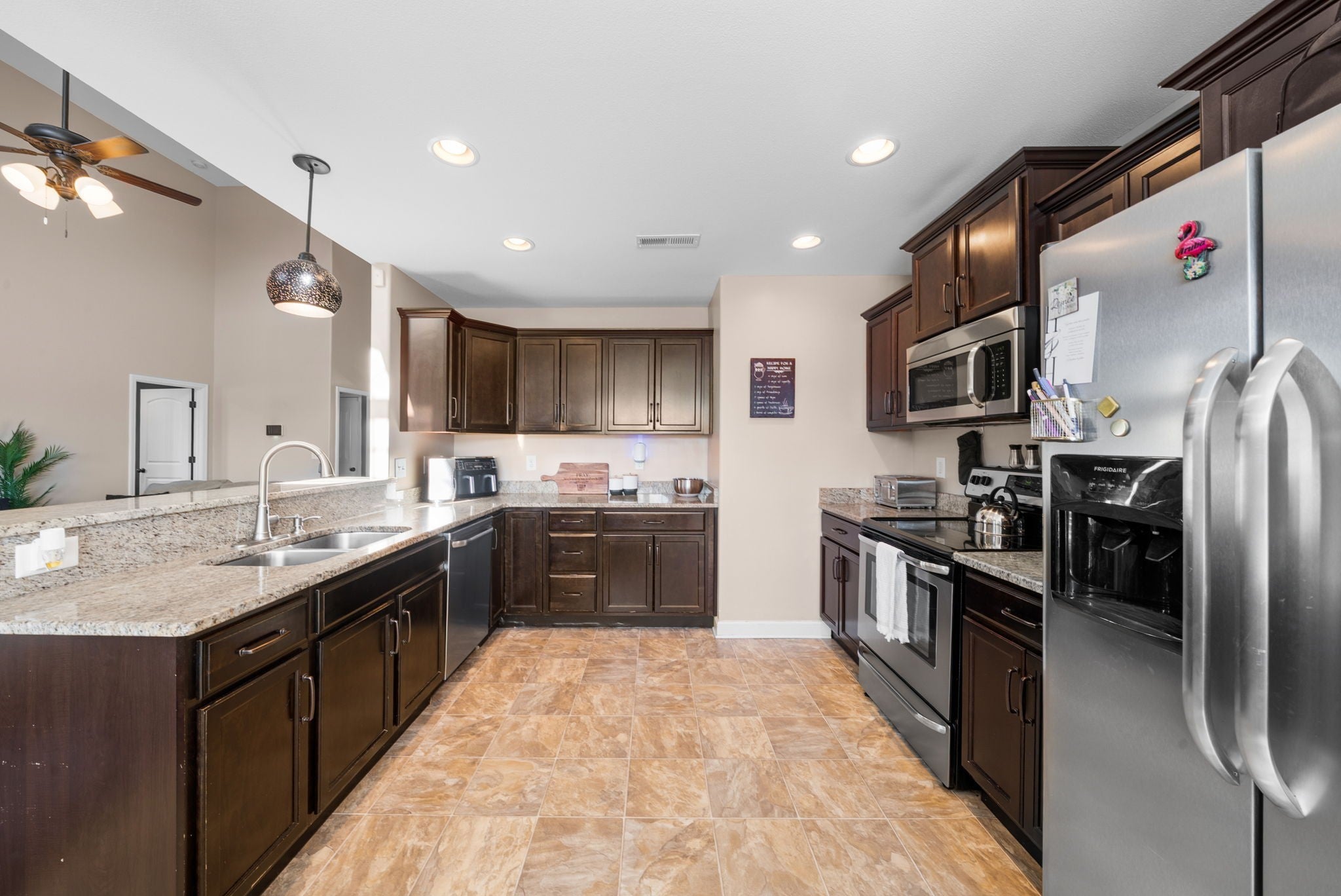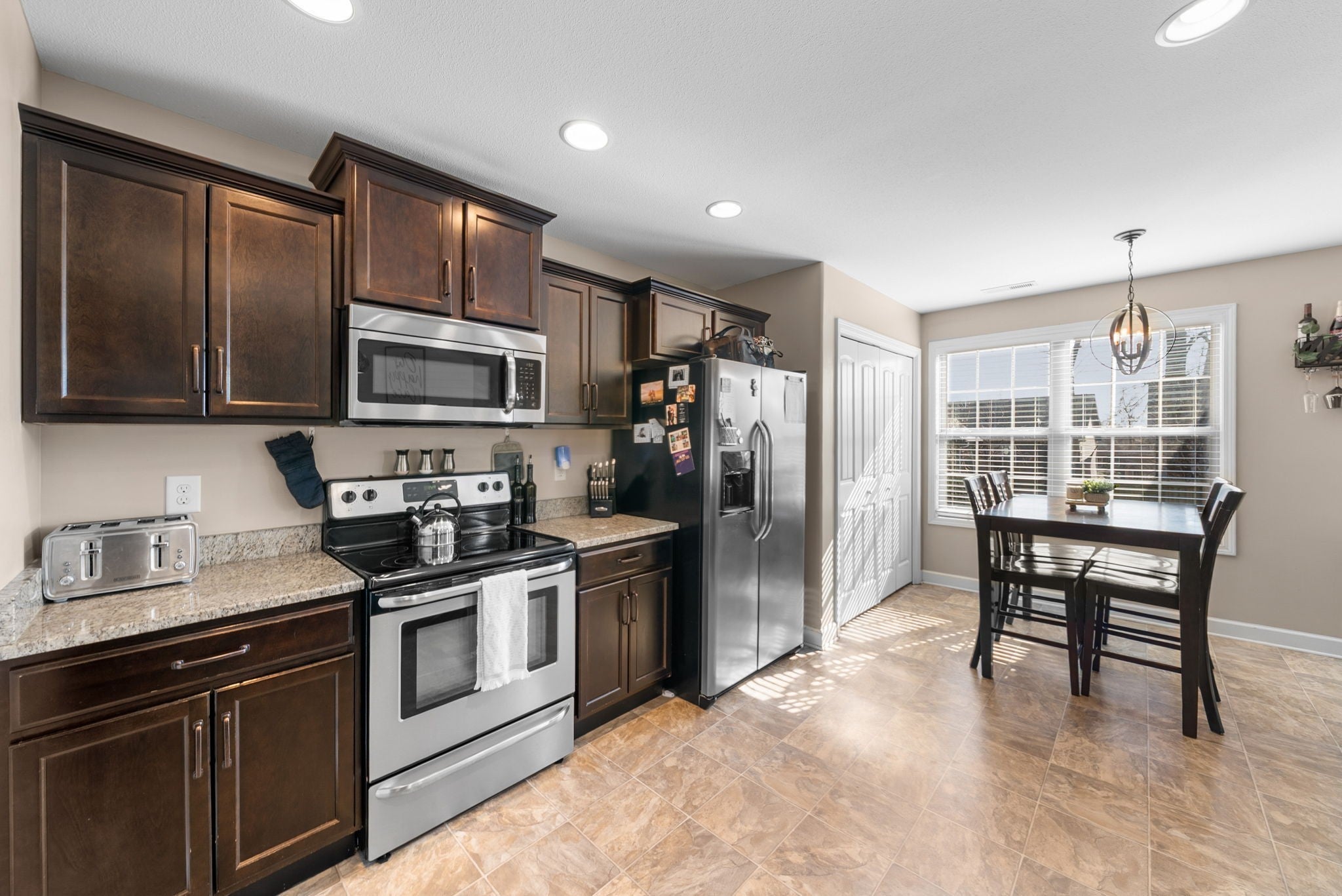 - Electric Range, Dishwasher, Disposal, Microwave, Refrigerator, Stainless Steel Appliance(s)