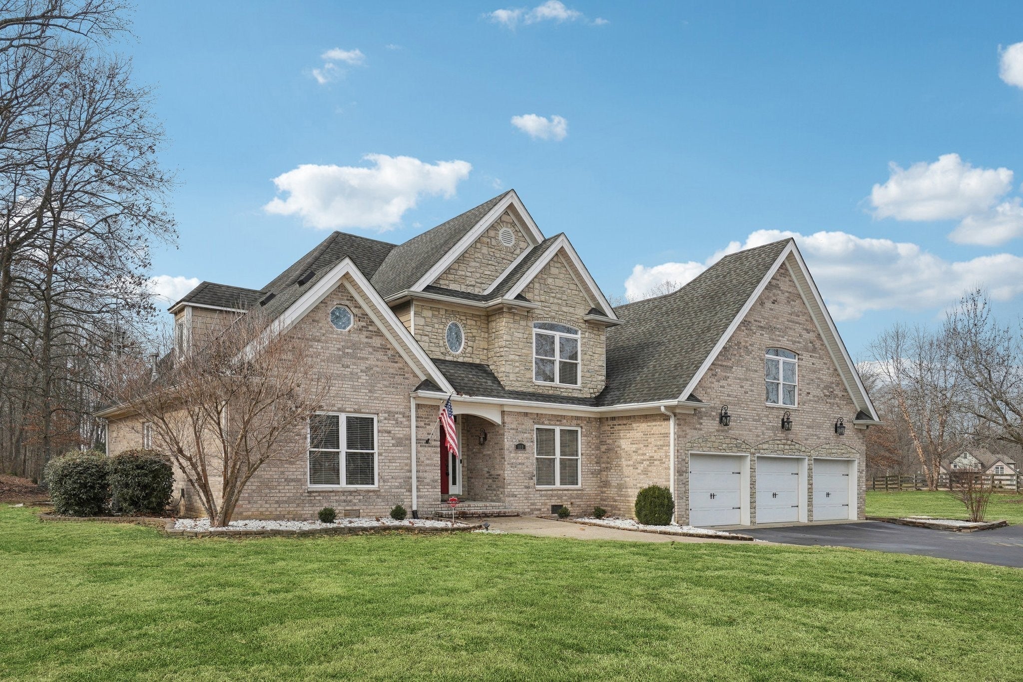 Welcome to 113 Timber Ridge Court, where privacy, comfort, and exceptional entertaining come together on three beautiful acres in Alvaton. This stately brick home offers plentiful space for everyone with thoughtfully designed living space, complete with soaring ceilings and abundant natural light. The layout blends everyday functionality with spaces made for gathering, from cozy evenings by the fire to host with ease. The dedicated media room delivers a true theater experience featuring a 112-inch by 56-inch screen, INFOCUS projector, eight theater chairs, and surround sound. Upstairs, a spacious bonus room with wet bar creates the perfect setting for relaxing or entertaining. A propane-fueled double-sided fireplace warms both the kitchen and the back porch, seamlessly connecting indoor and outdoor living. The entire home music system, including the back porch, sets the mood for any occasion. Step outside to enjoy peaceful evenings, open space, and the privacy of your own acreage. A 19-foot by 15-foot Amish-built storage shed with work bench provides excellent space for hobbies or storage. The home also features a security system for added peace of mind. Licensed professionals have sealed all open penetrations as an extra precaution to help prevent vermin and pests. With four bedrooms, three and a half baths, and a three-car garage, this home offers flexibility for all. Located in the desirable Timber Ridge community and zoned for Alvaton Elementary, Drakes Creek Middle, and Greenwood High School, this property offers the ideal blend of space, luxury, and privacy. 113 Timber Ridge Court is the perfect place to gather, unwind, and create lasting memories. Contact me for your private showing today!