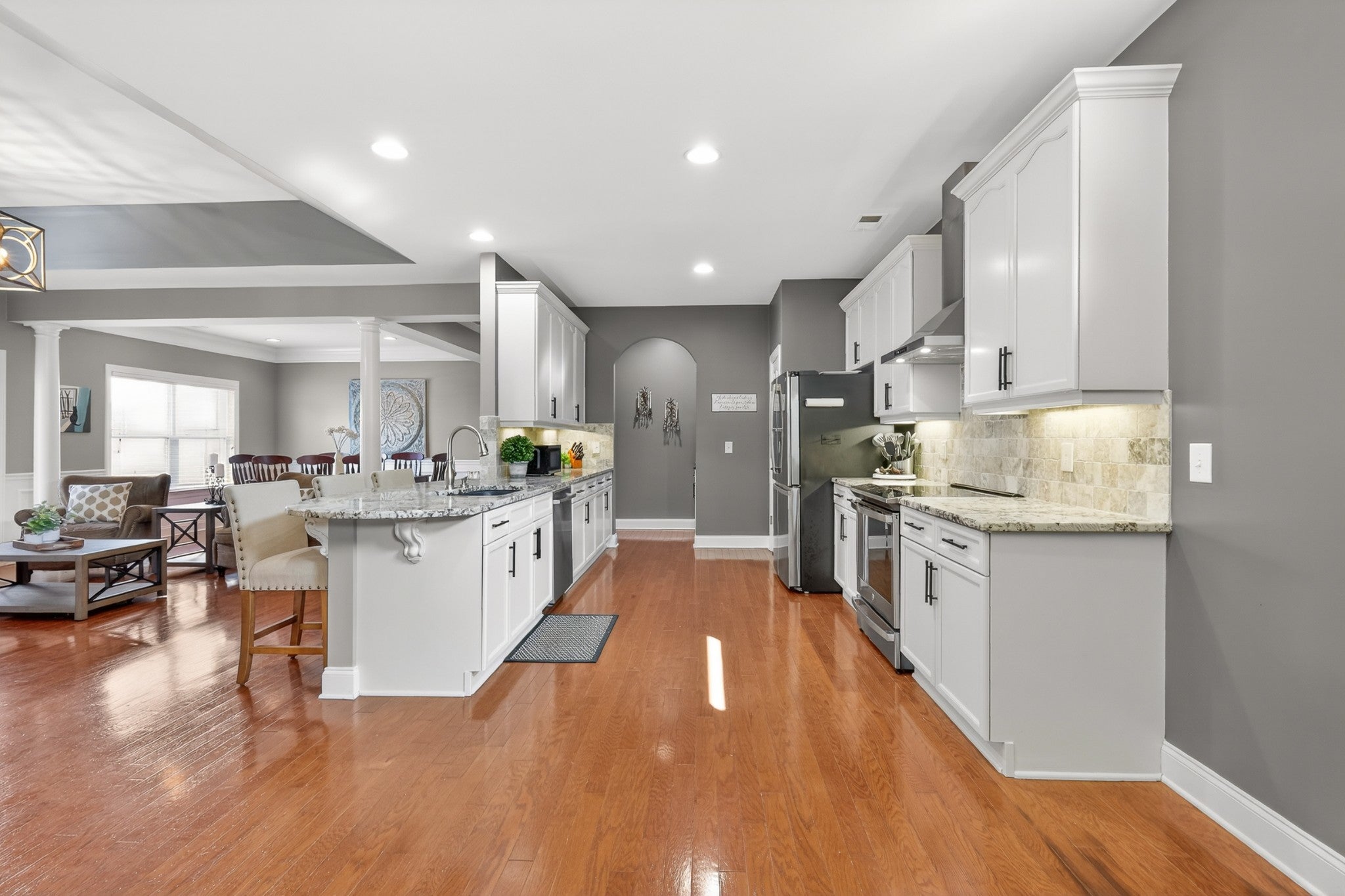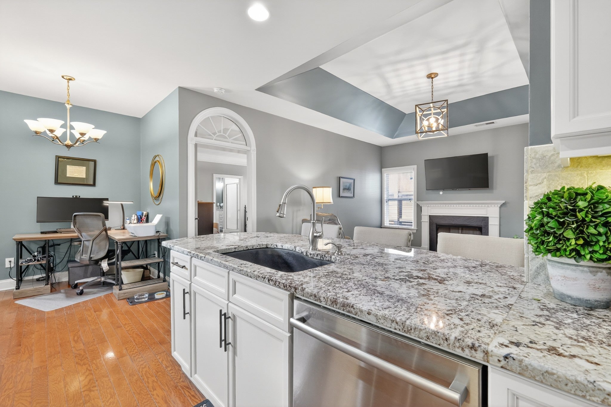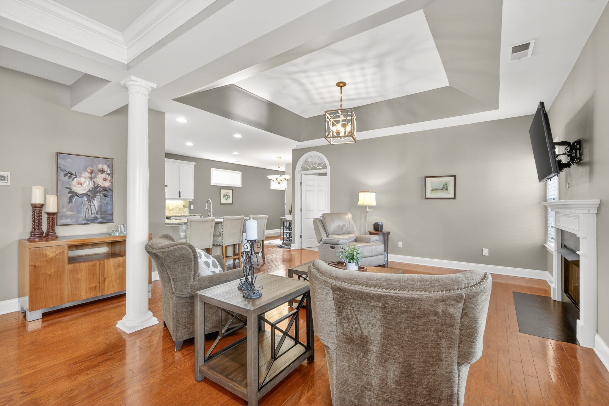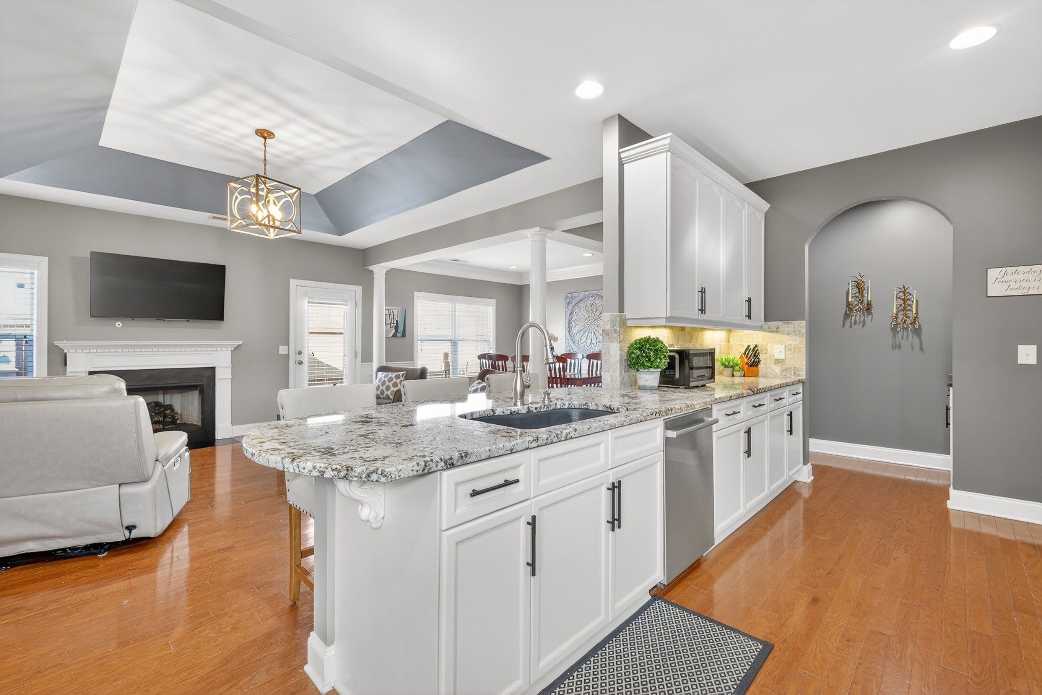 Refined one-story living in the gated Village of Providence, positioned on a premium corner lot directly across from a community park. This beautifully maintained 1,990 sq ft brick home blends timeless design, modern upgrades, and exceptional convenience. Hardwood flooring flows through the main living areas into a bright, elegant kitchen featuring white cabinetry, granite countertops, stainless steel appliances, a new refrigerator and stove, and a Bosch dishwasher. The home offers two spacious bedrooms and two beautifully updated bathrooms with honed quartz countertops, new lighting, and modern fixtures, while the owner’s suite is enhanced by a custom closet shelving system. The two gas fireplaces w/ remotes create inviting living spaces ideal for both comfort and entertaining. Additional highlights include a 2024 water heater and an oversized garage with space for a workshop and storage. HOA-maintained lawn care provides true low-maintenance living. The location is exceptional: just steps from Providence Mall, approximately one mile to I-40, and minutes from Nashville International Airport and everyday conveniences. This home offers a rare blend of privacy, green space, elegance, and accessibility in one of Mt. Juliet’s most desirable gated communities. **Seller has an accepted offer with a 48-hour first right of refusal home sale contingency.