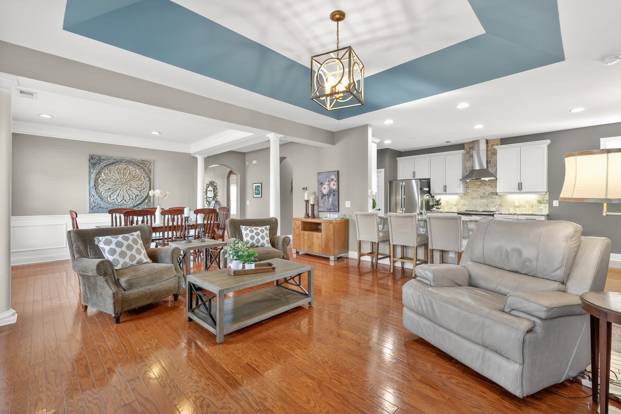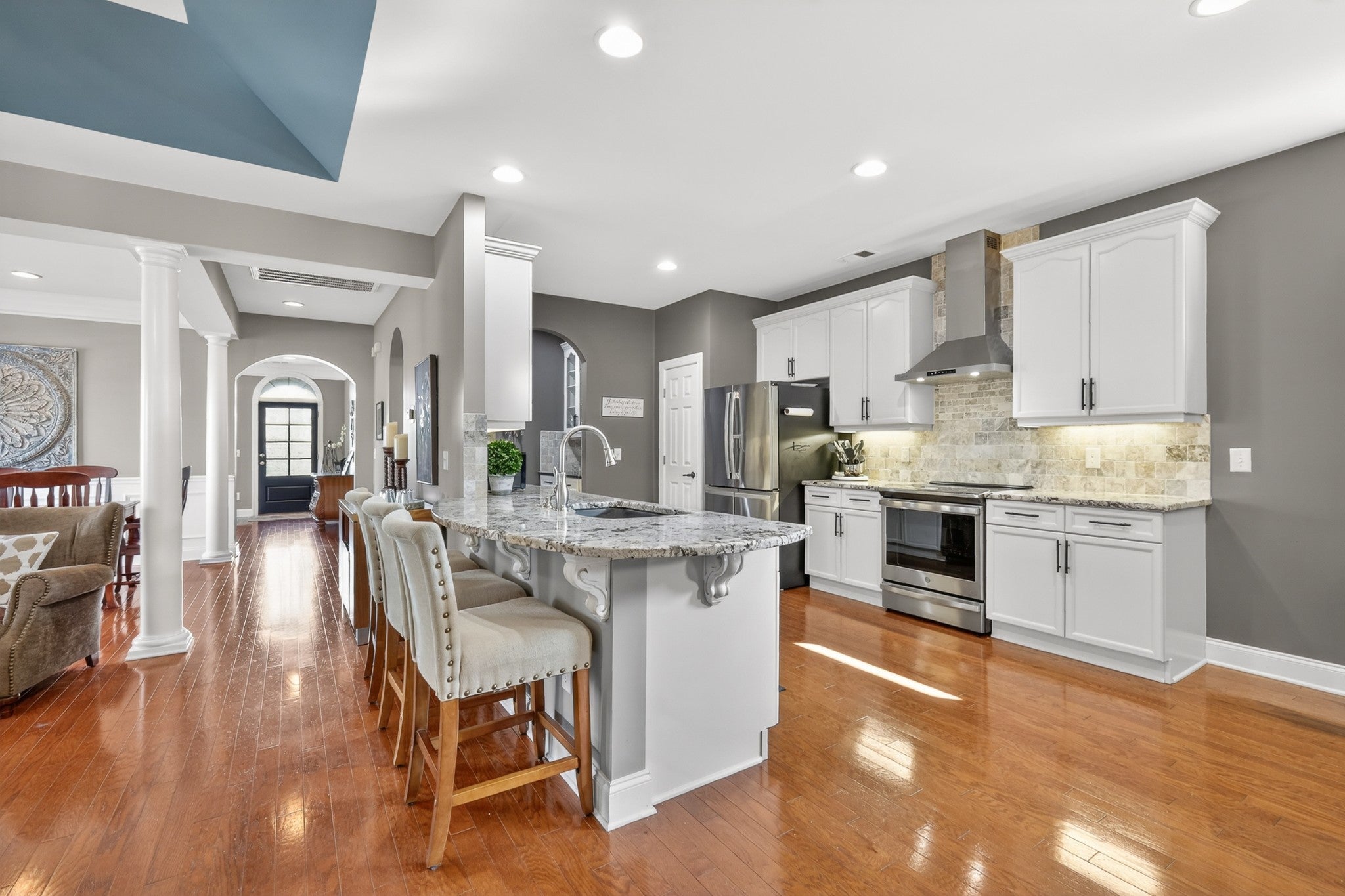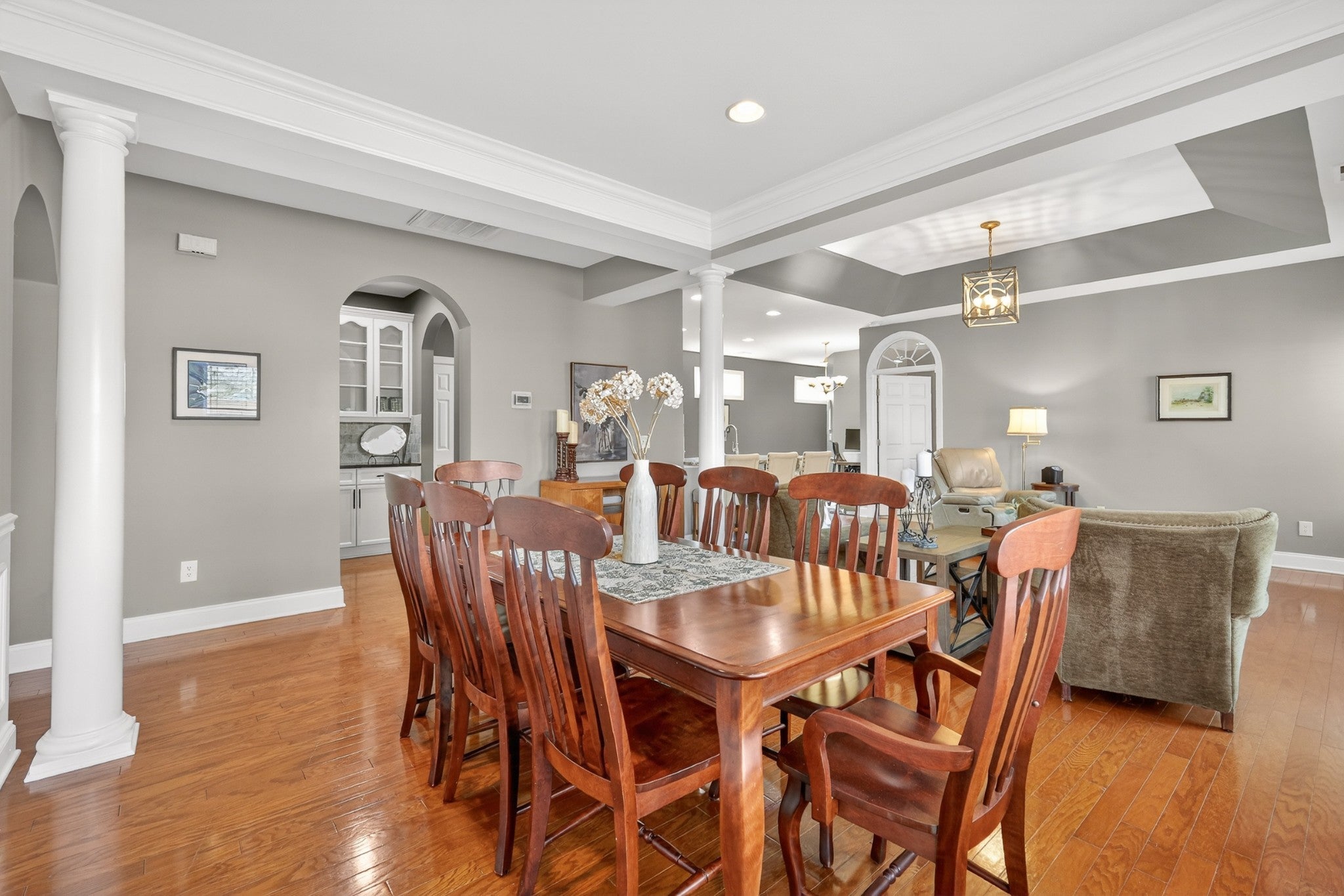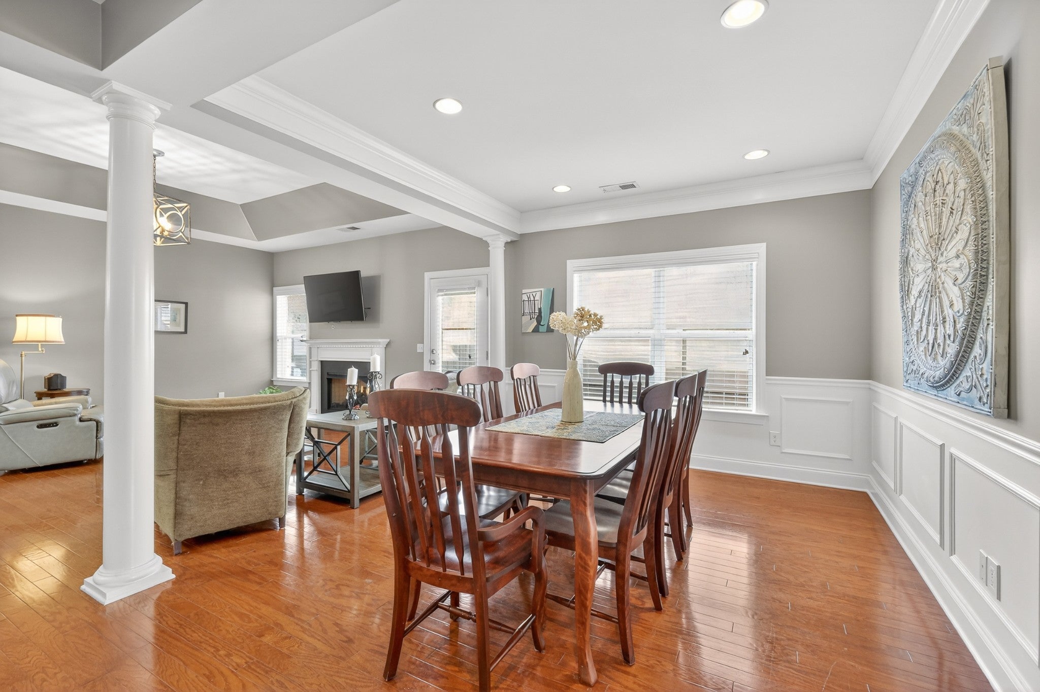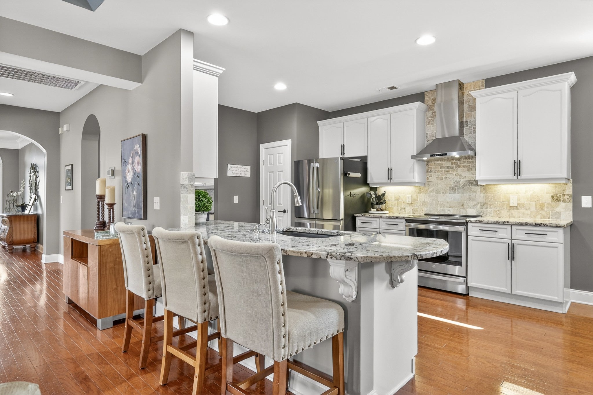 Refined one-story living in the gated Village of Providence, positioned on a premium corner lot directly across from a community park. This beautifully maintained 1,990 sq ft brick home blends timeless design, modern upgrades, and exceptional convenience. Hardwood flooring flows through the main living areas into a bright, elegant kitchen featuring white cabinetry, granite countertops, stainless steel appliances, a new refrigerator and stove, and a Bosch dishwasher. The home offers two spacious bedrooms and two beautifully updated bathrooms with honed quartz countertops, new lighting, and modern fixtures, while the owner’s suite is enhanced by a custom closet shelving system. The two gas fireplaces w/ remotes create inviting living spaces ideal for both comfort and entertaining. Additional highlights include a 2024 water heater and an oversized garage with space for a workshop and storage. HOA-maintained lawn care provides true low-maintenance living. The location is exceptional: just steps from Providence Mall, approximately one mile to I-40, and minutes from Nashville International Airport and everyday conveniences. This home offers a rare blend of privacy, green space, elegance, and accessibility in one of Mt. Juliet’s most desirable gated communities. **Seller has an accepted offer with a 48-hour first right of refusal home sale contingency.