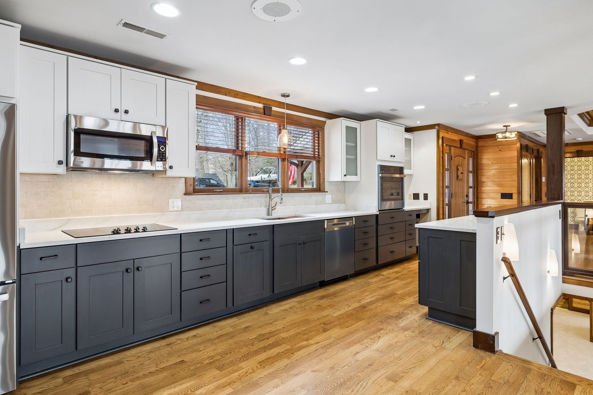 - Built-In Electric Oven, Cooktop, Dishwasher, Refrigerator, Stainless Steel Appliance(s)