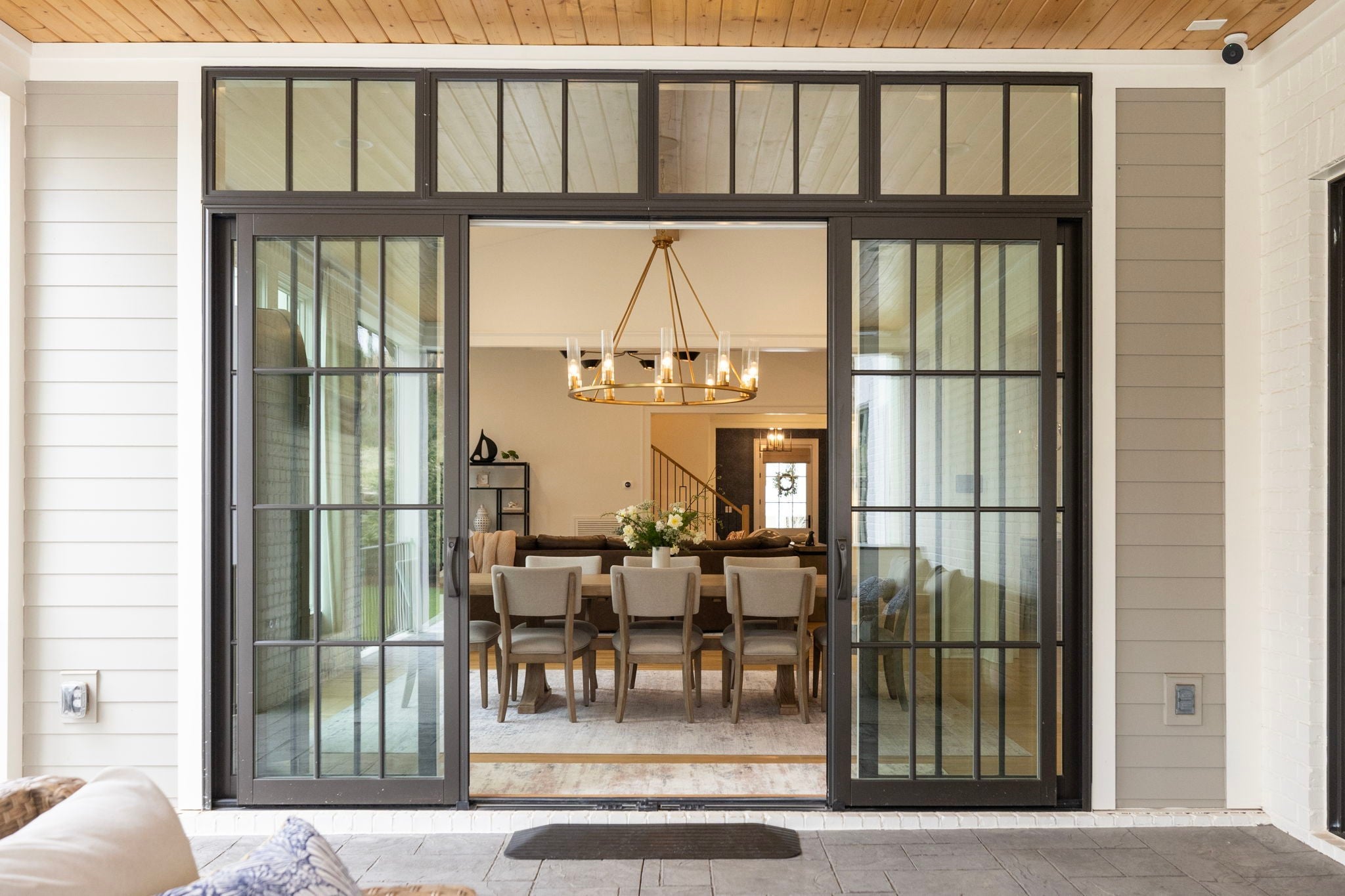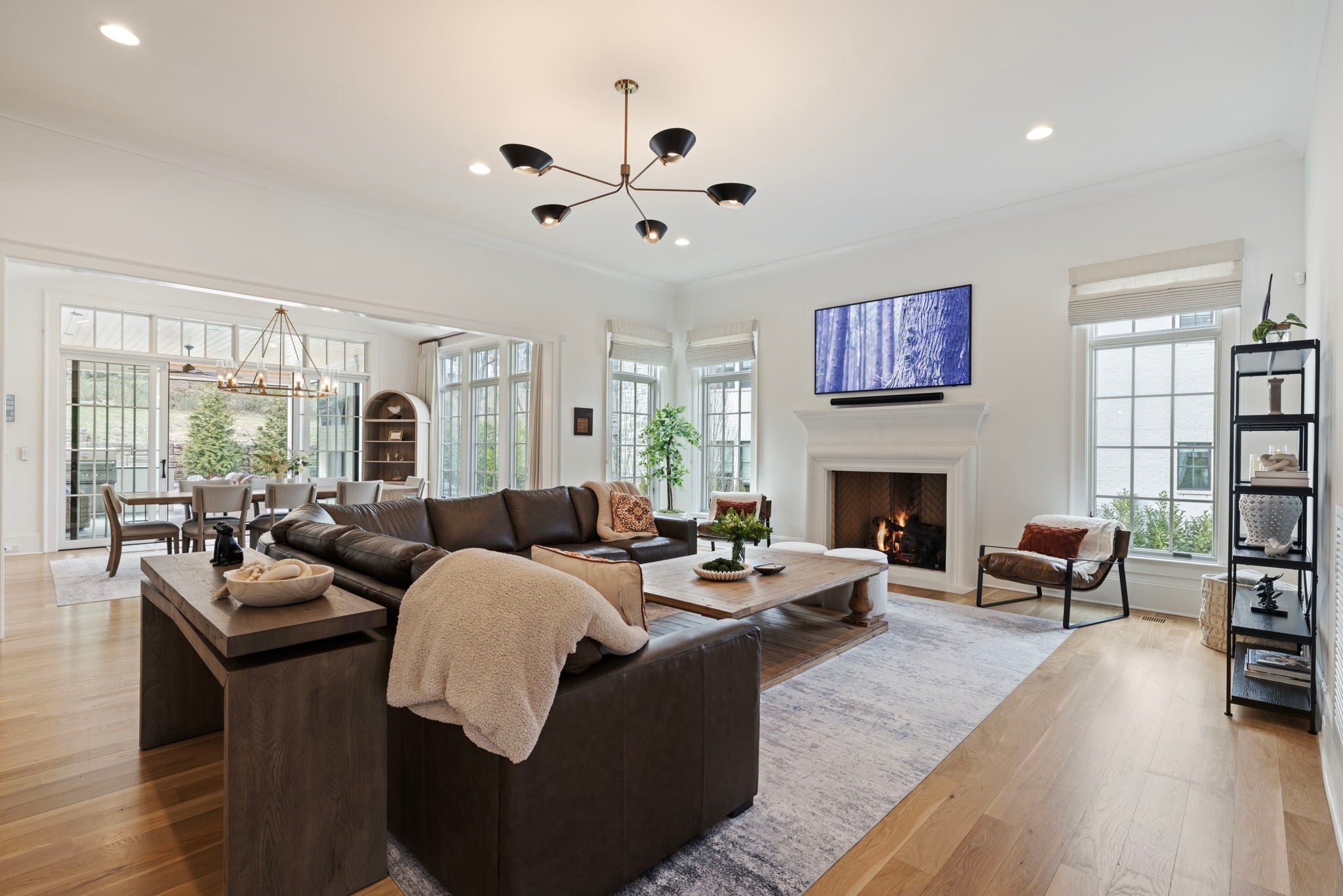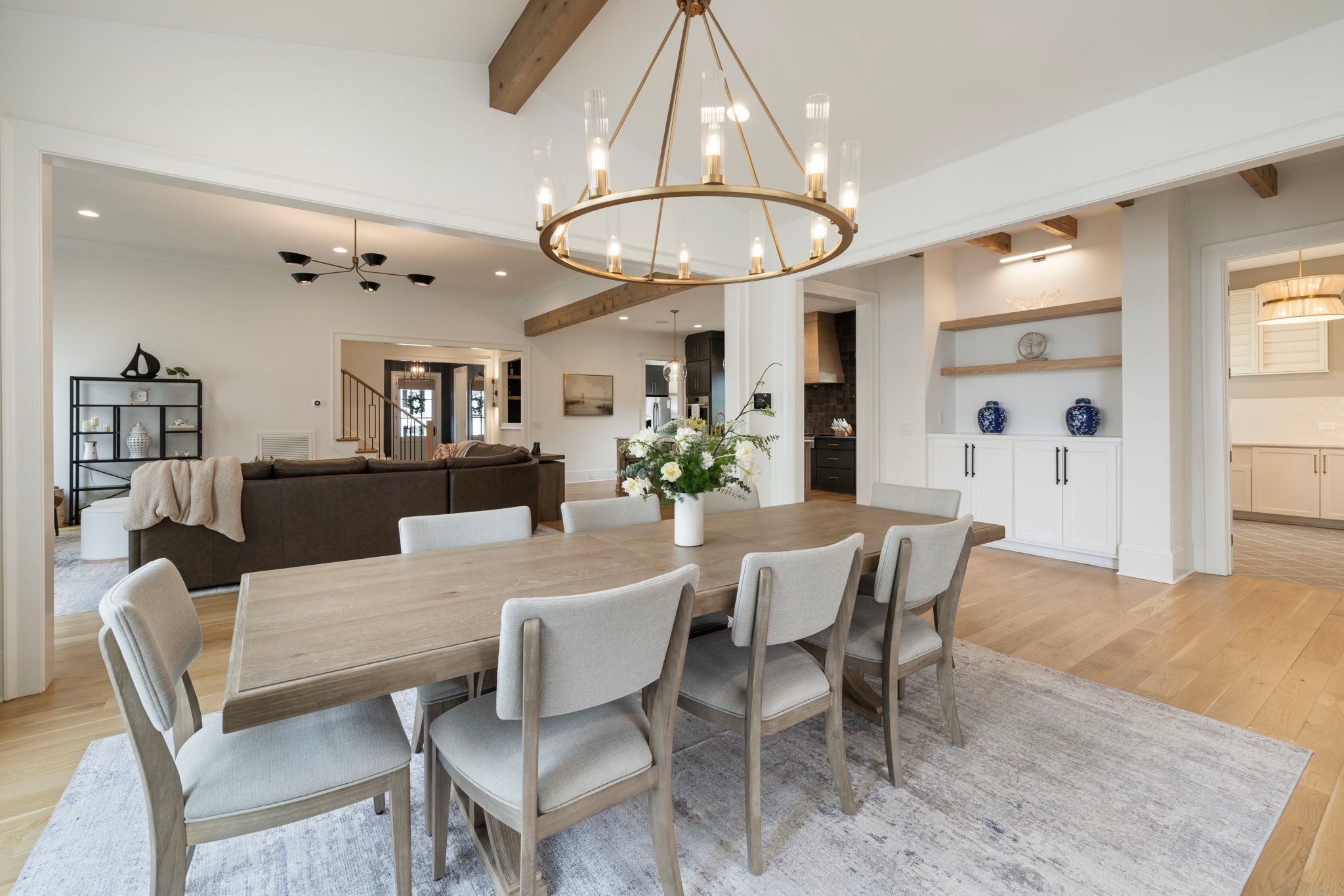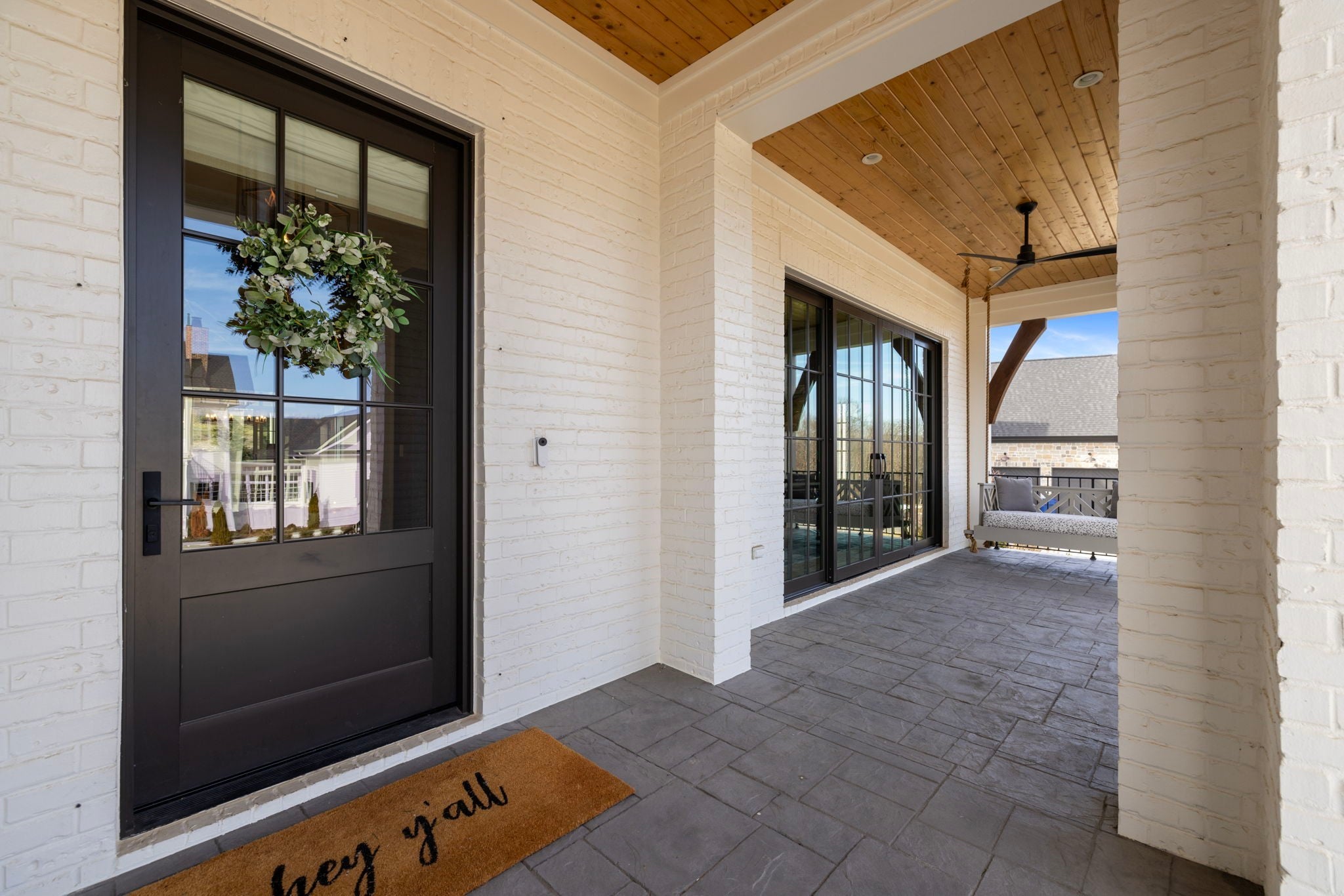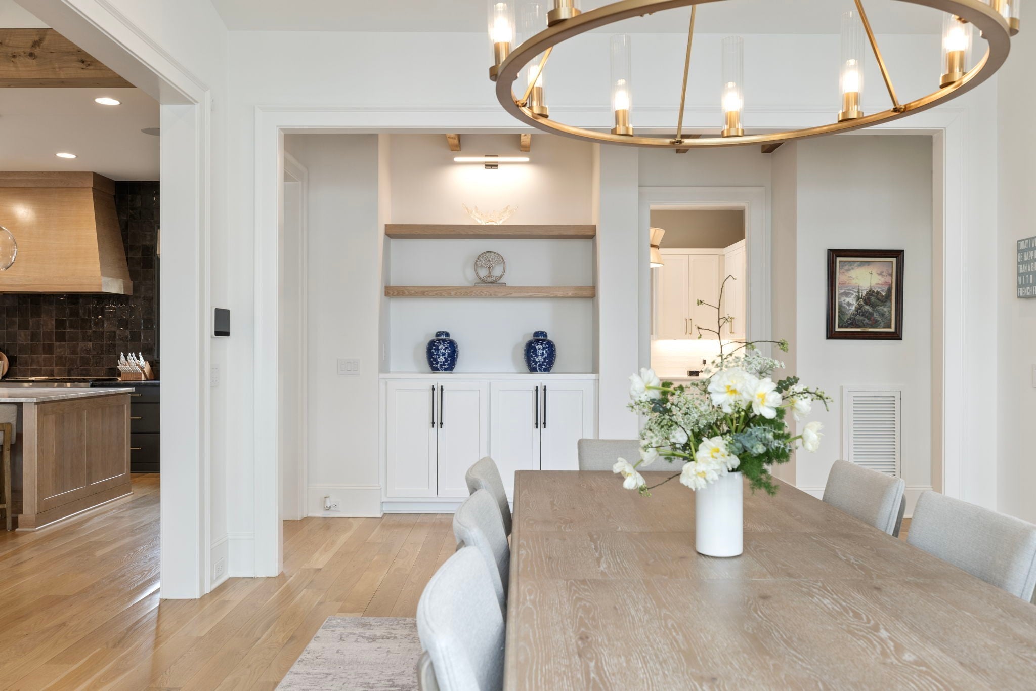 This is one of those homes that feels intentional the moment you walk in. Located inside the gated community of The Grove, the layout is open, bright, and thoughtfully designed, with hardwoods throughout the entire home and natural light pouring in from every angle. The living room centers around a gas fireplace and flows easily into the kitchen, which truly anchors the space. A generous island creates the perfect gathering spot, complemented by designer lighting, custom cabinetry, a dramatic tile backsplash, prep pantry, and dry bar. The main level offers two bedrooms and two full baths, including an oversized primary suite with vaulted ceilings. The bathroom feels refined and spa inspired, with dual vanities, floor to ceiling tile accents, a soaking tub, large walk in shower, and two walk in closets. There is also a dedicated office with wainscoting and sliding doors that open to the covered front porch, along with a spacious laundry room and drop zone just off the garage. Upstairs, you’ll find three additional bedrooms, three full baths, a flexible office or bonus space, and a large recreation room with built in bunk beds, creating a versatile space for hosting or extended stays. Over $100,000 has been invested into the backyard, creating a private outdoor retreat. The covered porch features a fireplace, outdoor gas grill, and automatic retractable screens so you can enjoy the space year round. An extended patio, low maintenance Goat turf, private putting green, and Japanese Maples complete the setting. The garage includes three full bays plus a dedicated fourth stall for your golf cart, along with epoxy floors and built in cabinetry. Living in The Grove means access to gated security, a championship golf course, resort style pools, clubhouse, fitness center and spa, walking trails, fishing, equestrian facilities, racquet sports, and multiple dining options. It’s polished and elevated, yet incredibly livable.