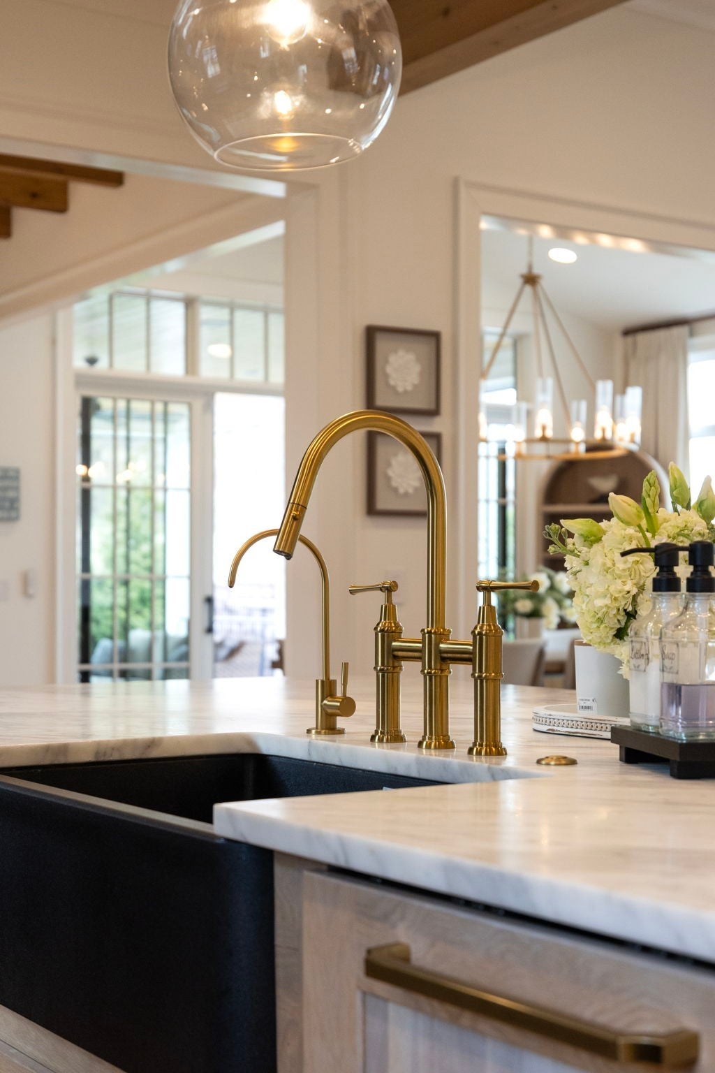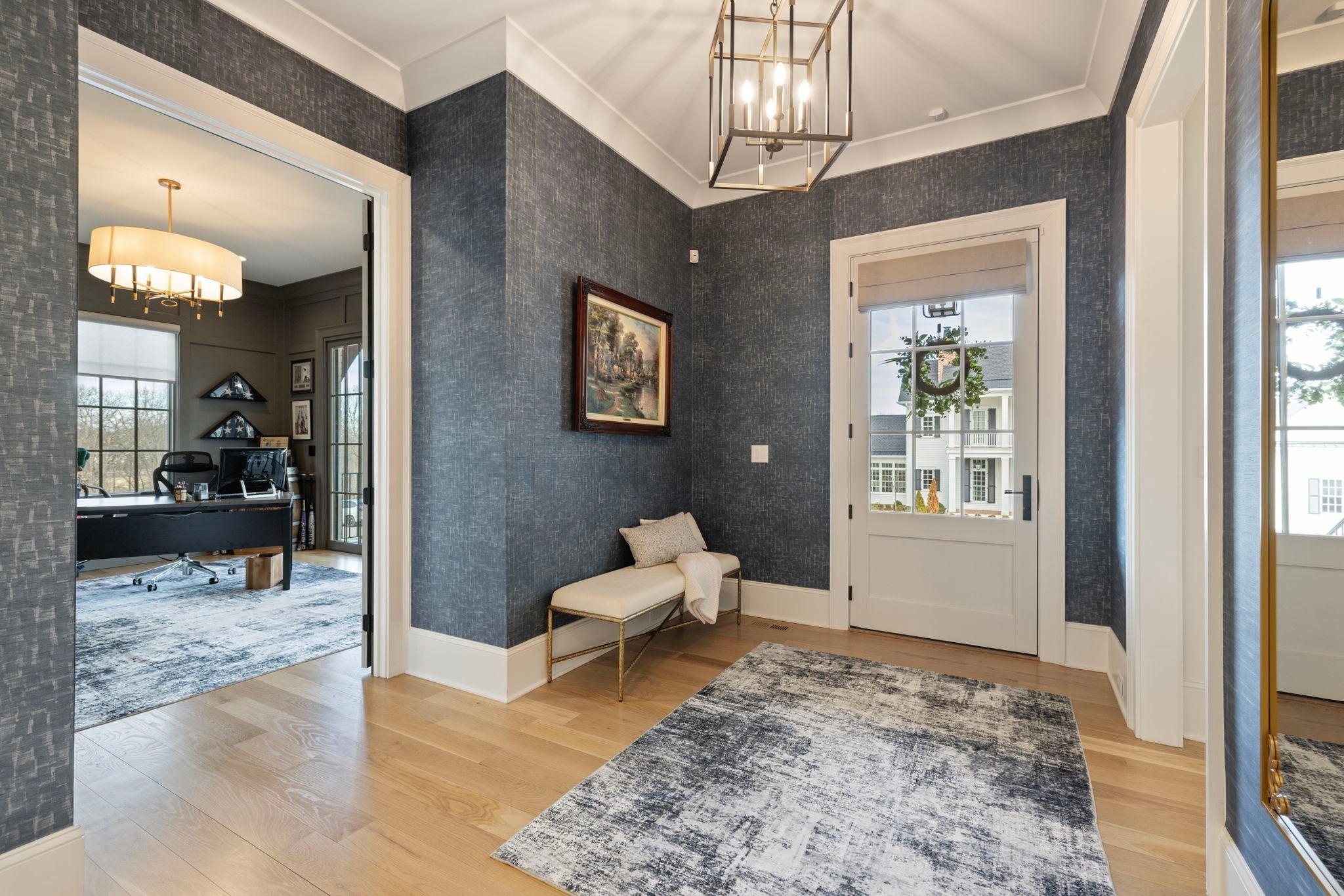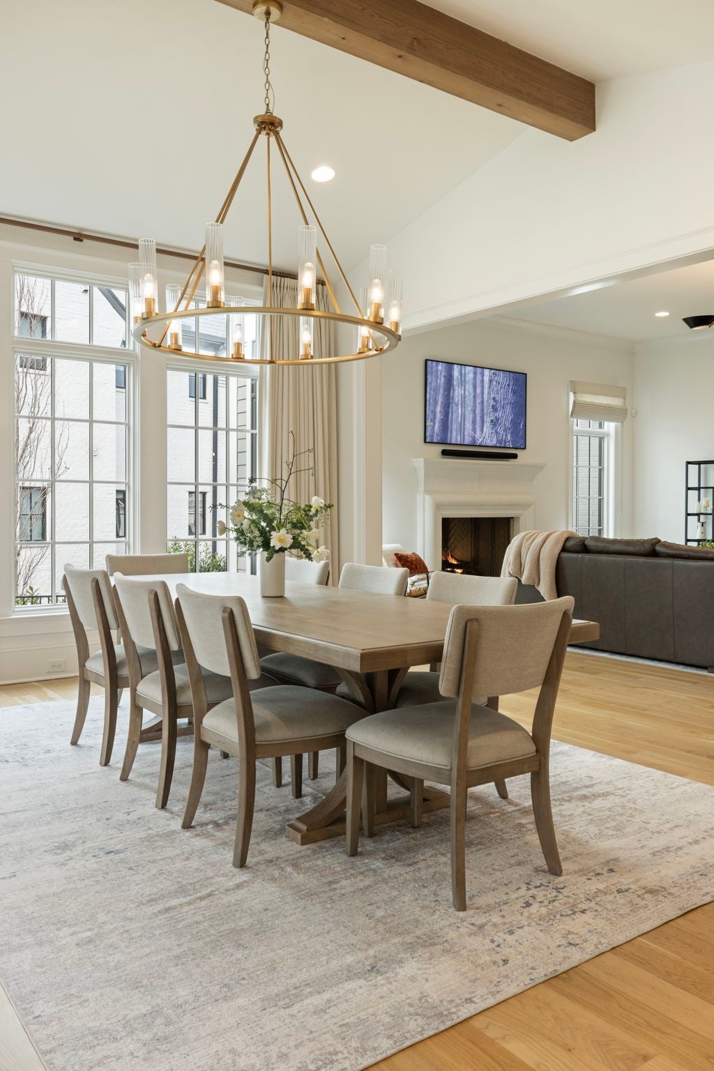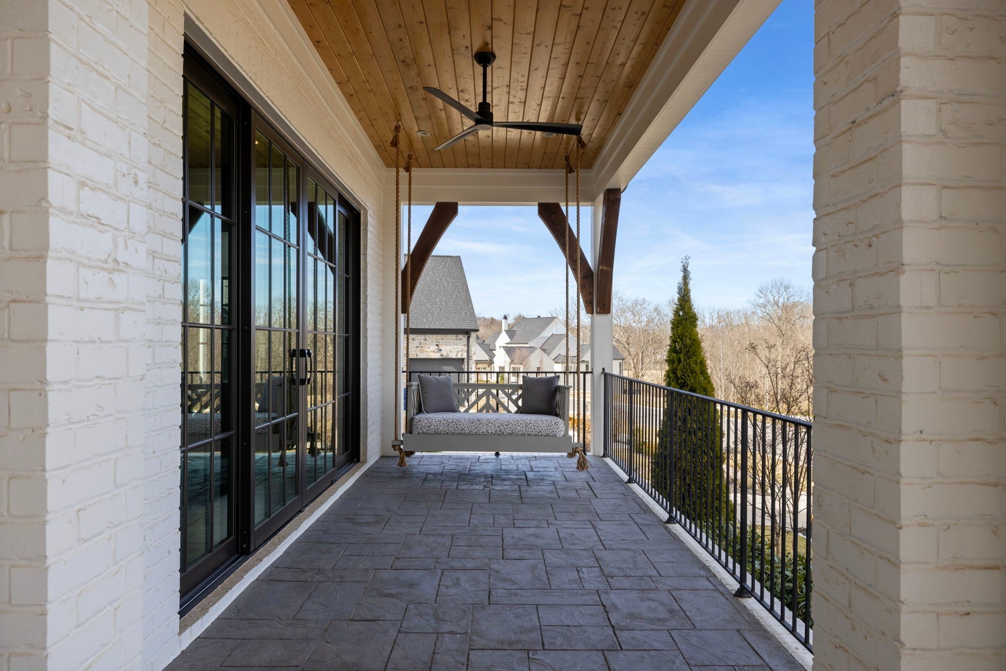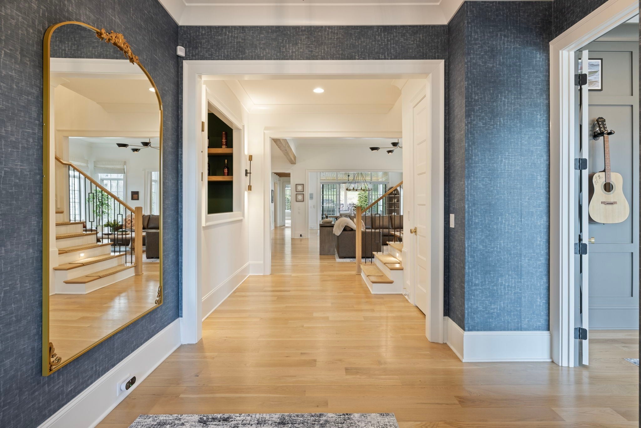 This is one of those homes that feels intentional the moment you walk in. Located inside the gated community of The Grove, the layout is open, bright, and thoughtfully designed, with hardwoods throughout the entire home and natural light pouring in from every angle. The living room centers around a gas fireplace and flows easily into the kitchen, which truly anchors the space. A generous island creates the perfect gathering spot, complemented by designer lighting, custom cabinetry, a dramatic tile backsplash, prep pantry, and dry bar. The main level offers two bedrooms and two full baths, including an oversized primary suite with vaulted ceilings. The bathroom feels refined and spa inspired, with dual vanities, floor to ceiling tile accents, a soaking tub, large walk in shower, and two walk in closets. There is also a dedicated office with wainscoting and sliding doors that open to the covered front porch, along with a spacious laundry room and drop zone just off the garage. Upstairs, you’ll find three additional bedrooms, three full baths, a flexible office or bonus space, and a large recreation room with built in bunk beds, creating a versatile space for hosting or extended stays. Over $100,000 has been invested into the backyard, creating a private outdoor retreat. The covered porch features a fireplace, outdoor gas grill, and automatic retractable screens so you can enjoy the space year round. An extended patio, low maintenance Goat turf, private putting green, and Japanese Maples complete the setting. The garage includes three full bays plus a dedicated fourth stall for your golf cart, along with epoxy floors and built in cabinetry. Living in The Grove means access to gated security, a championship golf course, resort style pools, clubhouse, fitness center and spa, walking trails, fishing, equestrian facilities, racquet sports, and multiple dining options. It’s polished and elevated, yet incredibly livable.