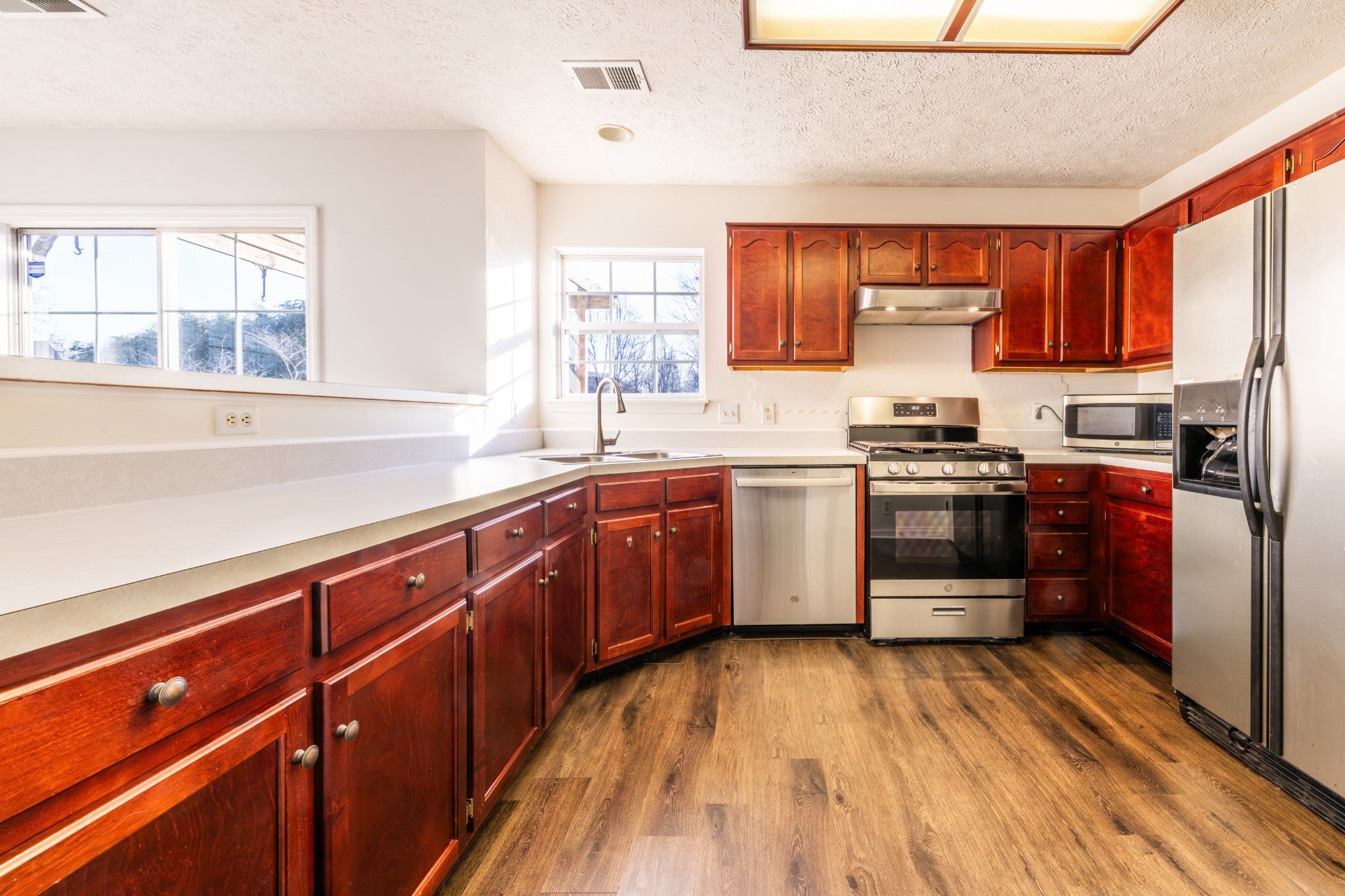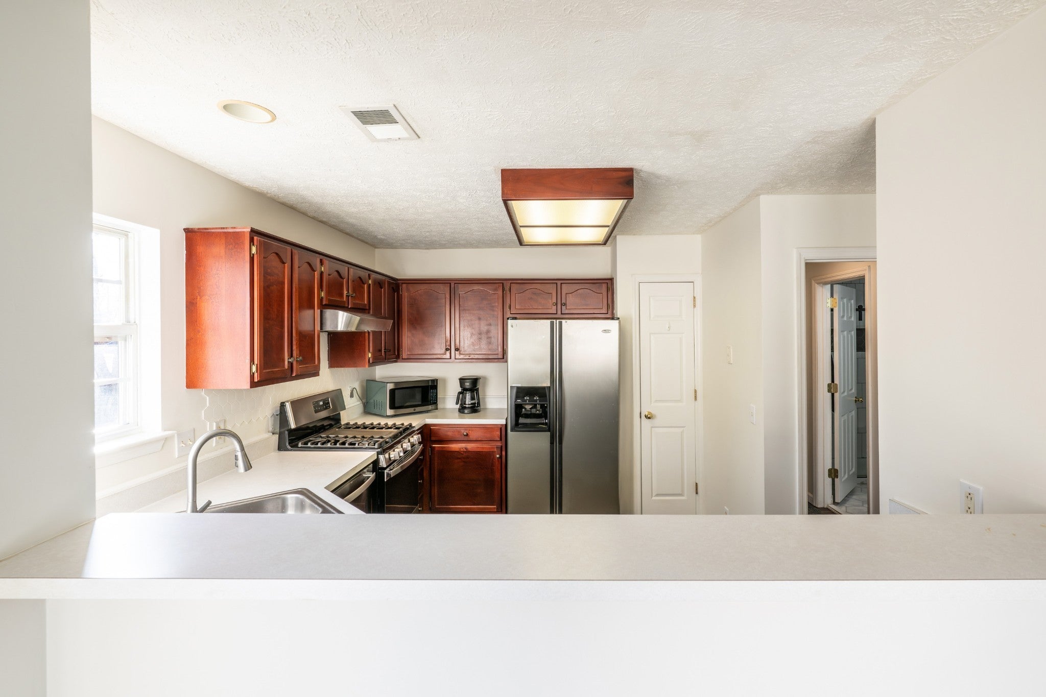 Stunning two story home in a prime location. This 3 bedroom, 2 full bath home offers an open floor plan with a desirable primary suite on the main level featuring a coffered ceiling, creating a comfortable and inviting retreat. The living room features a vaulted ceiling, filling the space with natural light and a spacious, open feel. The huge kitchen is ideal for entertaining and everyday living, offering beautiful cherry cabinets, a gas stove, a pantry, and an island with bar top seating. Upstairs, you will find a spacious 20 x 12 expansion area offering the flexibility and potential to be turned into something truly special, whether as a bonus room, home office, or flex space. Step outside to an exceptionally large, fully fenced backyard with ample room to spread out, play, garden, or entertain, along with a deck ideal for relaxing, pets, or gatherings. The crawlspace has been professionally encapsulated, adding peace of mind and improved efficiency. Additional highlights include a two car garage and privacy fence. Recent updates include a fresh coat of paint throughout approximately 80% of the home and a bathroom renovation completed in 2024. Conveniently located close to downtown, the Opryland Hotel, Opry Mills, shopping, restaurants, and major interstates and highways.