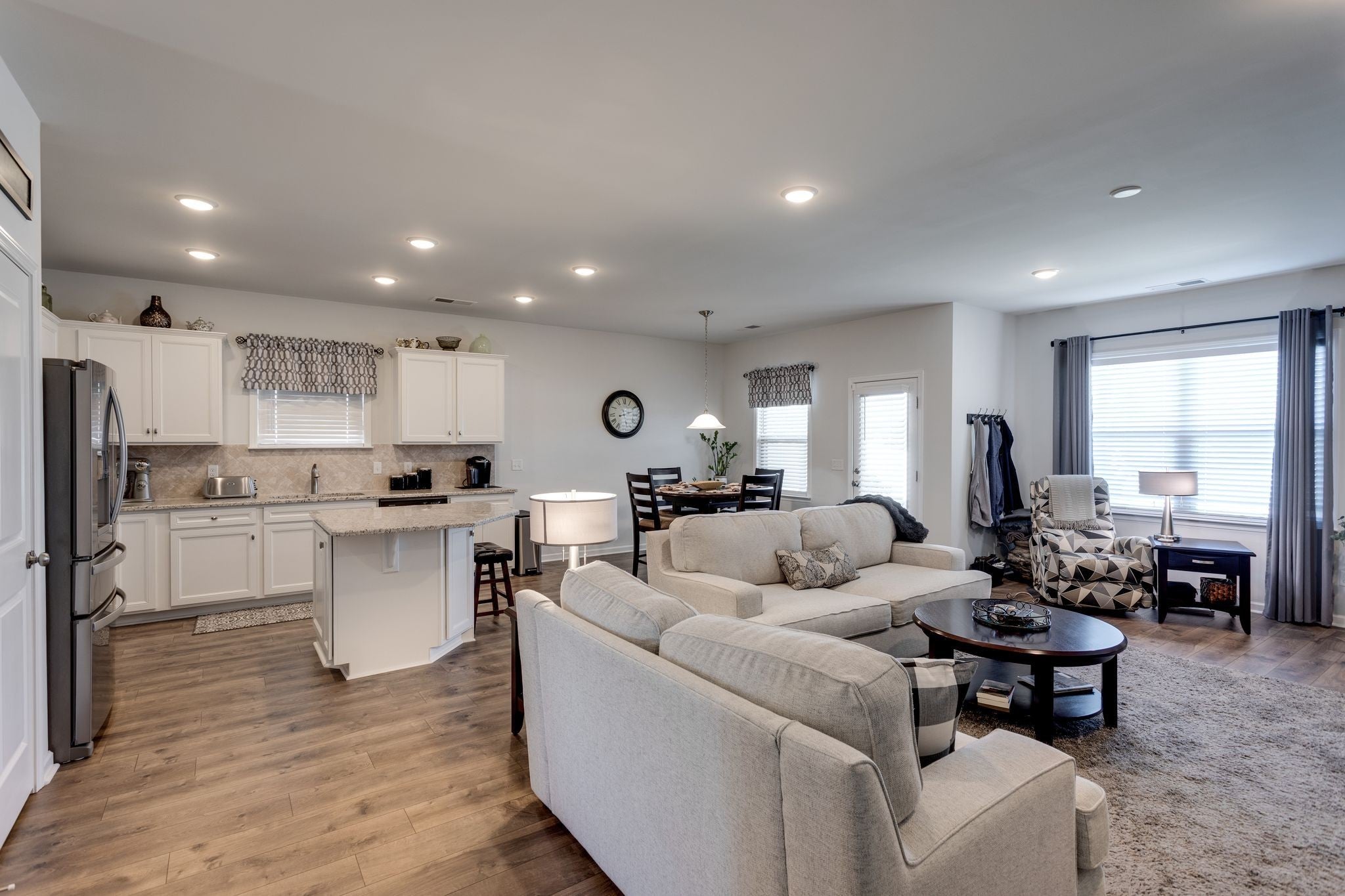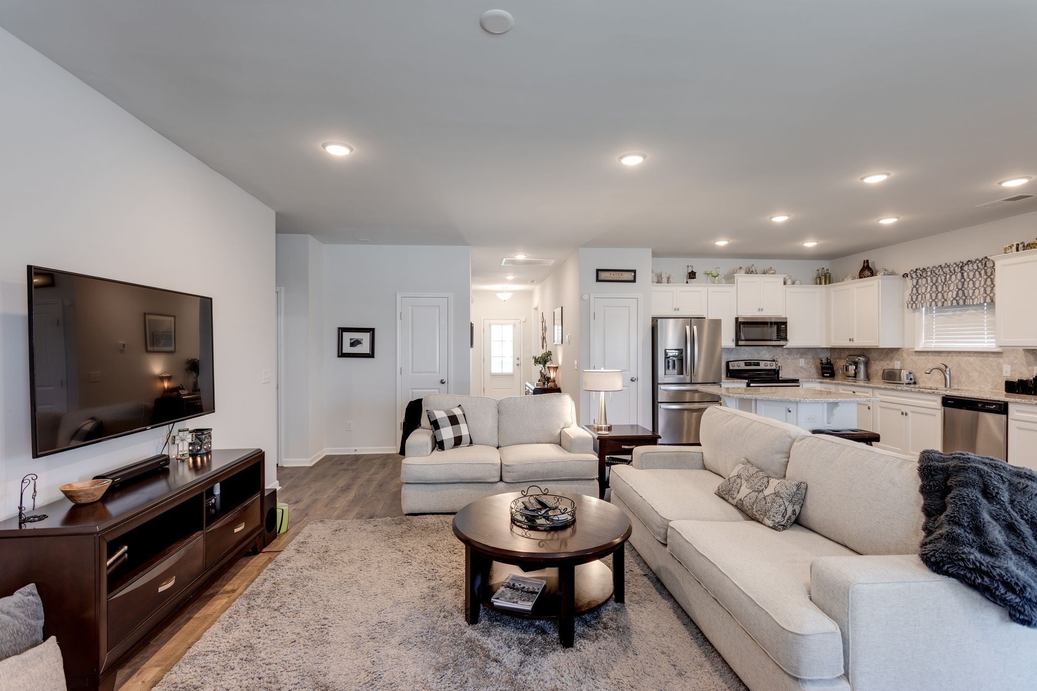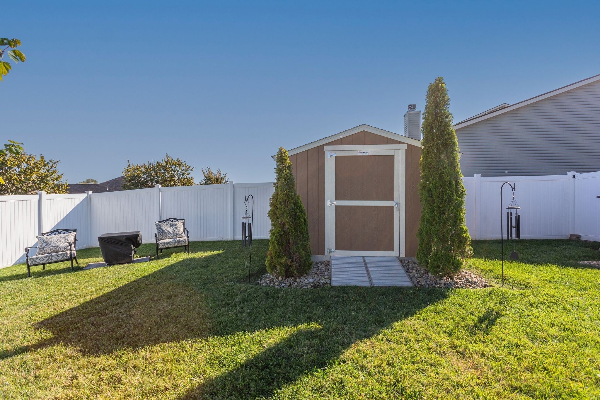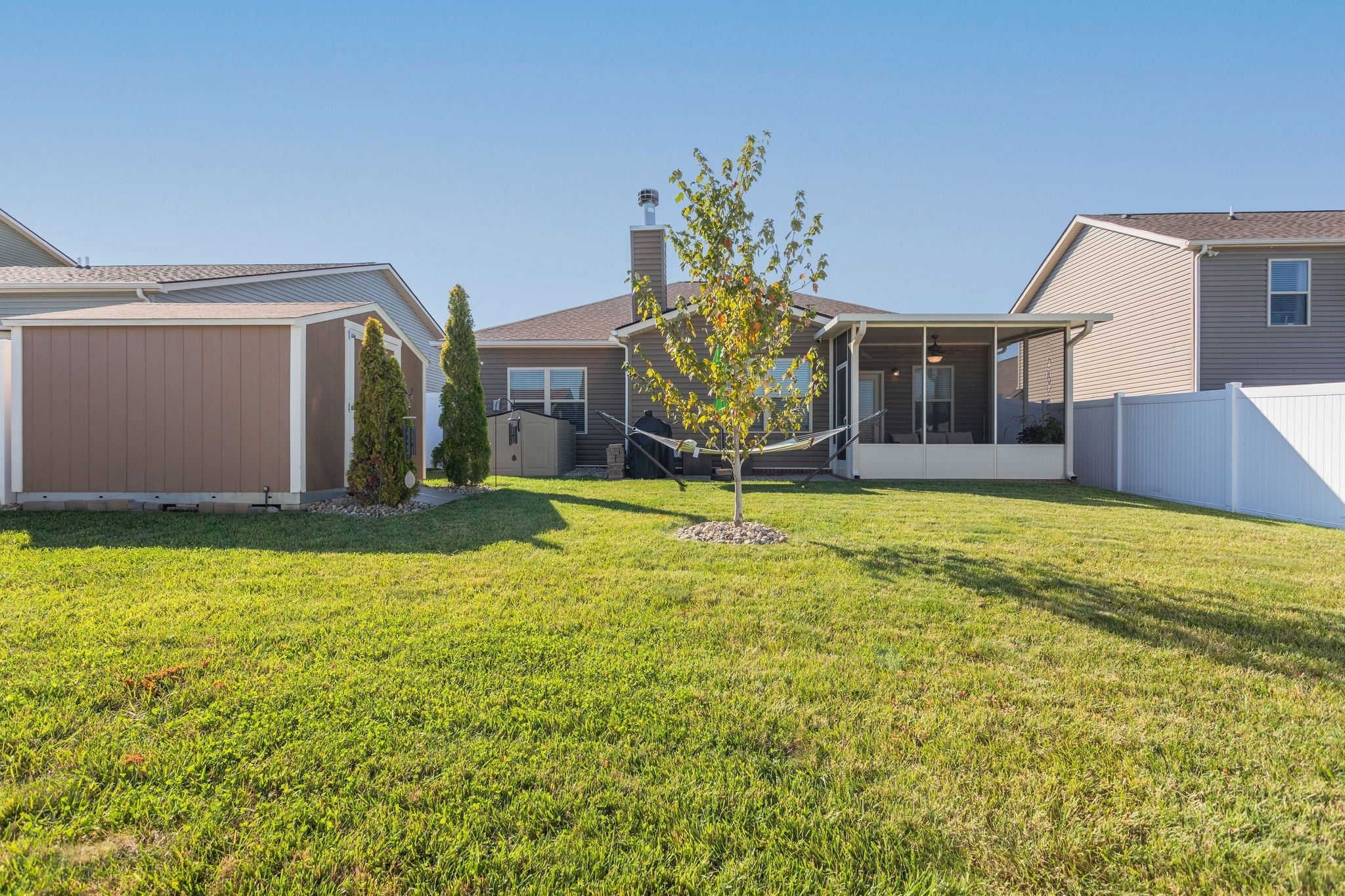 Welcome Home! This beautiful 3 bedroom, 2 bath one-level home with underground sprinklers, offers a modern design and thoughtful upgrades throughout. Step inside a bright, open floor plan that seamlessly connects the living, dining, and kitchen areas - perfect for entertaining or everyday living. Enjoy large custom closets in each bedroom, providing organized storage and a touch of luxury you wont find in standard builds. The screened-in porch creates the perfect spot for relaxing with your morning coffee or hosting guests while enjoying the outdoors without the bugs. Additional built-in storage in the garage, closets and out building makes it easy to keep everything neat and functional. The home has a privacy fenced back yard.