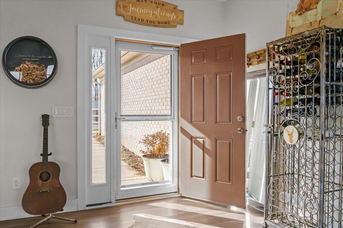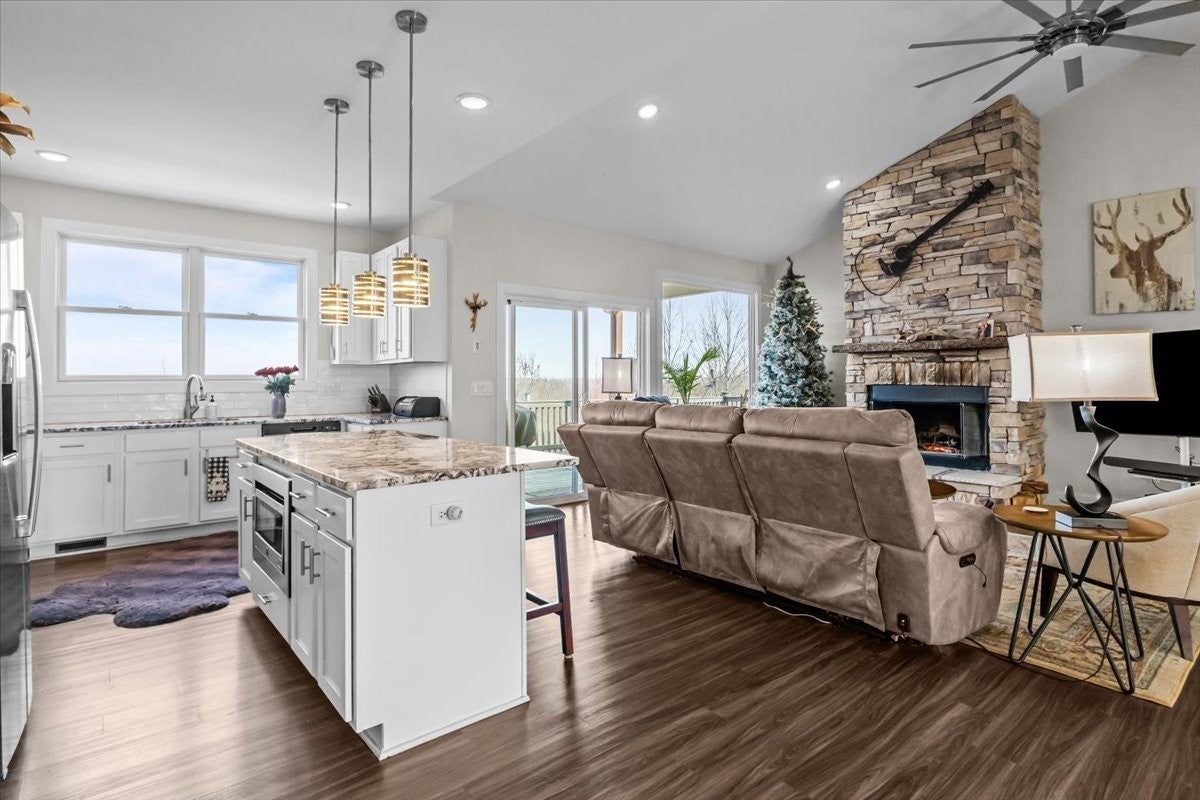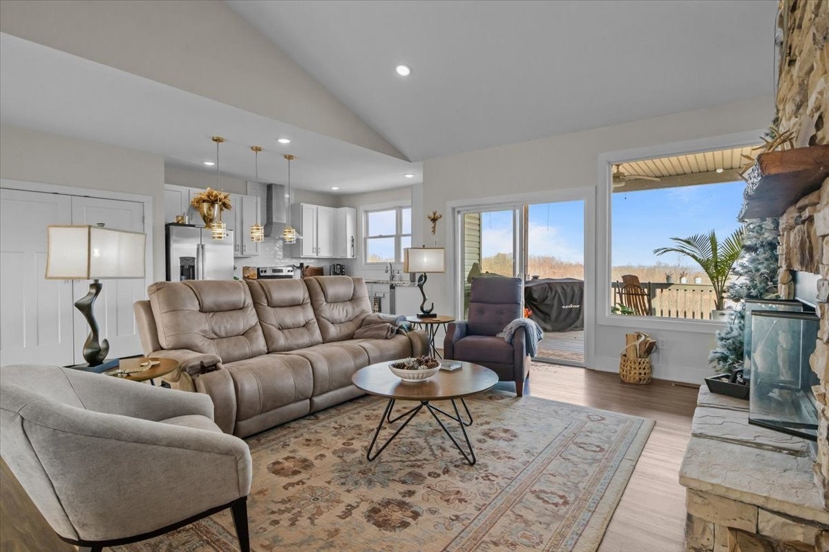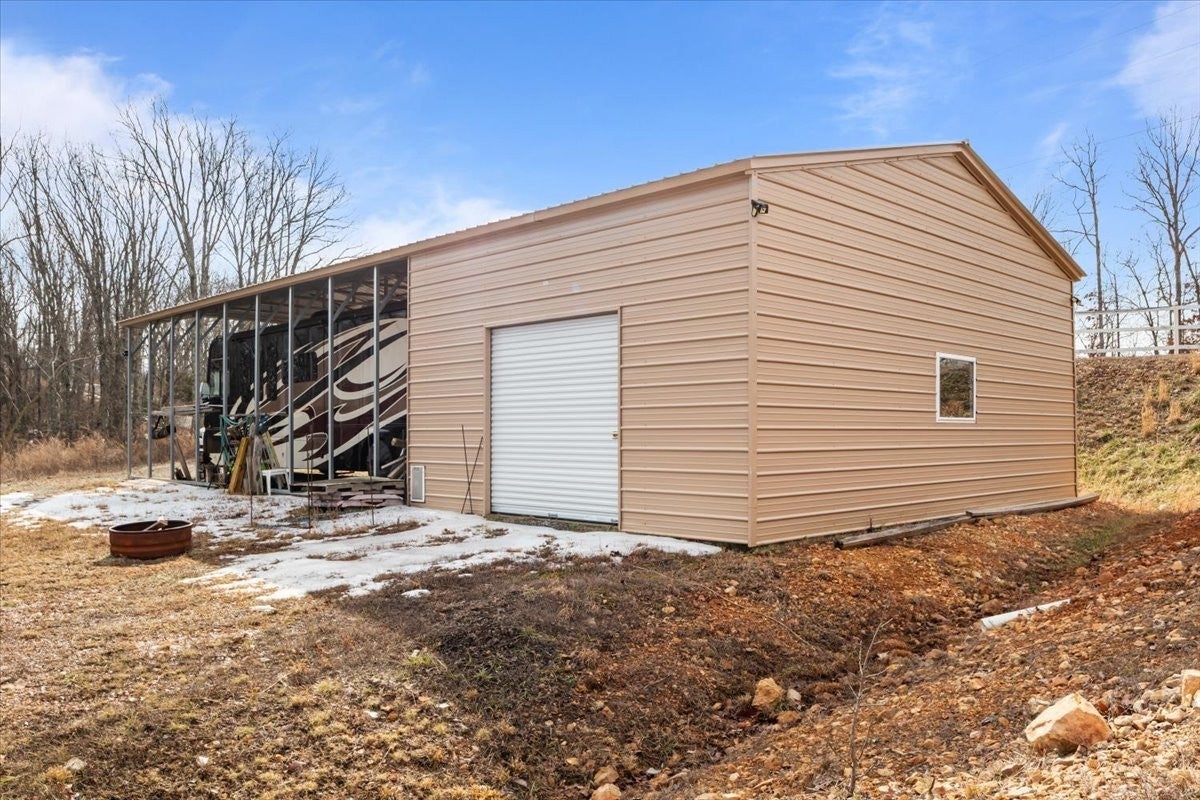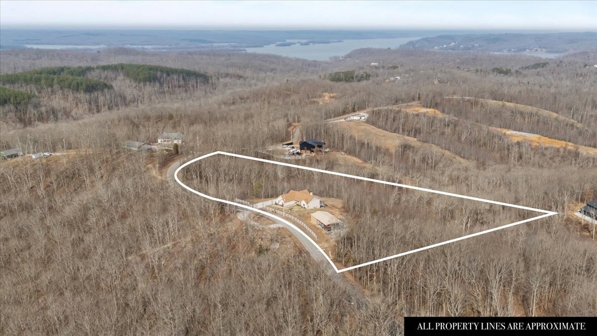 Welcome to this stunning 3 BD, 2 BA all-brick beauty nestled in a peaceful Tennessee setting just minutes from Kentucky Lake on the Tennessee River! Situated on 6.0 gorgeous acres, this property offers the perfect blend of privacy, scenic beauty, and modern convenience. Large windows throughout the home flood the space with natural light while perfectly framing the rolling Tennessee hills. The open-concept floor plan is thoughtfully designed for easy living and effortless entertaining. The spacious living area features a beautiful stone, wood-burning fireplace — the perfect focal point for cozy evenings at home. The kitchen is both stylish and functional with granite countertops, a large island, stainless appliances and spacious pantry. The home features durable LVP flooring throughout, a modern paint palette, and has been maintained to perfection. The primary suite is a true retreat, complete with a large picture window to maximize the views, his-and-hers walk-in closets, and a master bath featuring a double vanity, tile shower, and a convenient layout. The two additional bedrooms also offer generous space with sizeable closets. An attached 2 car garage adds to the practicality of this home, with the dimensions allowing ample space for the larger SUV's and trucks. Step outside onto the expansive back deck and take in the stunning scenery, ideal for morning coffee, evening sunsets, or hosting friends and family. A full, walk-out basement provides endless possibilities for storage, expansion, or recreational space. Need room for hobbies or equipment? The detached shop with an RV port includes water and electric hook-ups, making it perfect for outdoor enthusiasts or those needing extra workspace. Quiet, peaceful, and surrounded by natural beauty, yet close to boating, fishing, and all water recreation — this property truly offers the best of Tennessee living. HIGH-SPEED INTERNET! 8 miles to the town! UNRESTRICTED! NO HOA!