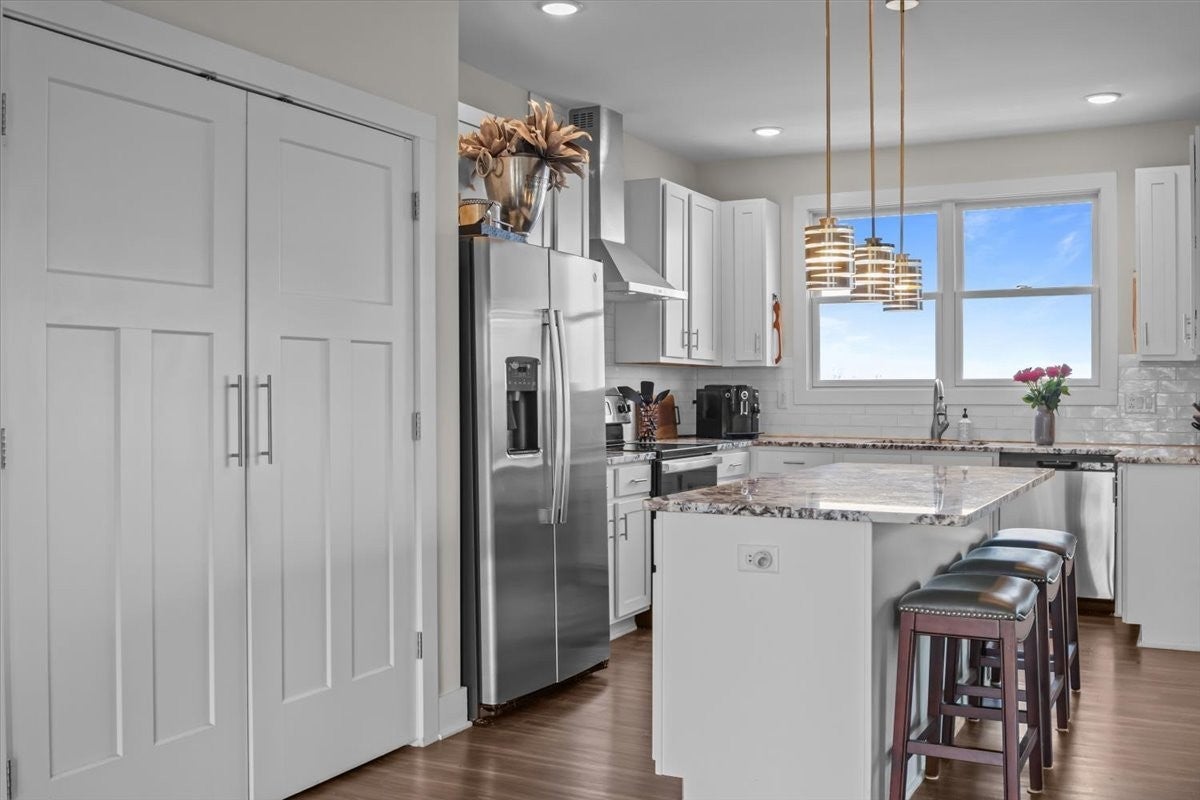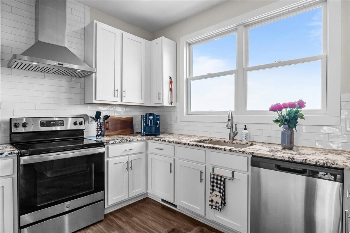 - Electric Range, Dishwasher, Dryer, Microwave, Refrigerator, Stainless Steel Appliance(s), Washer