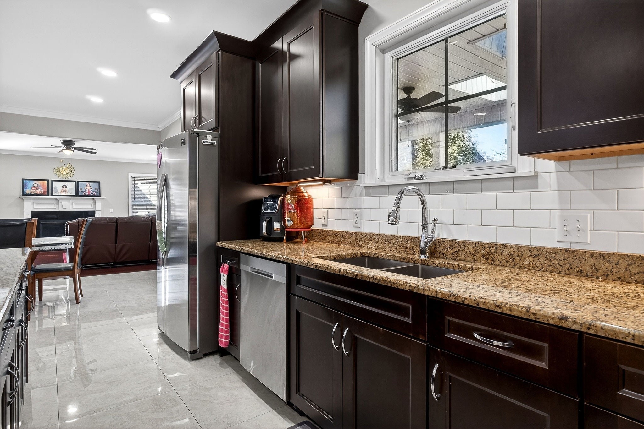 - Double Oven, Built-In Gas Range, Cooktop, Dishwasher, Disposal, Microwave, Refrigerator, Stainless Steel Appliance(s)