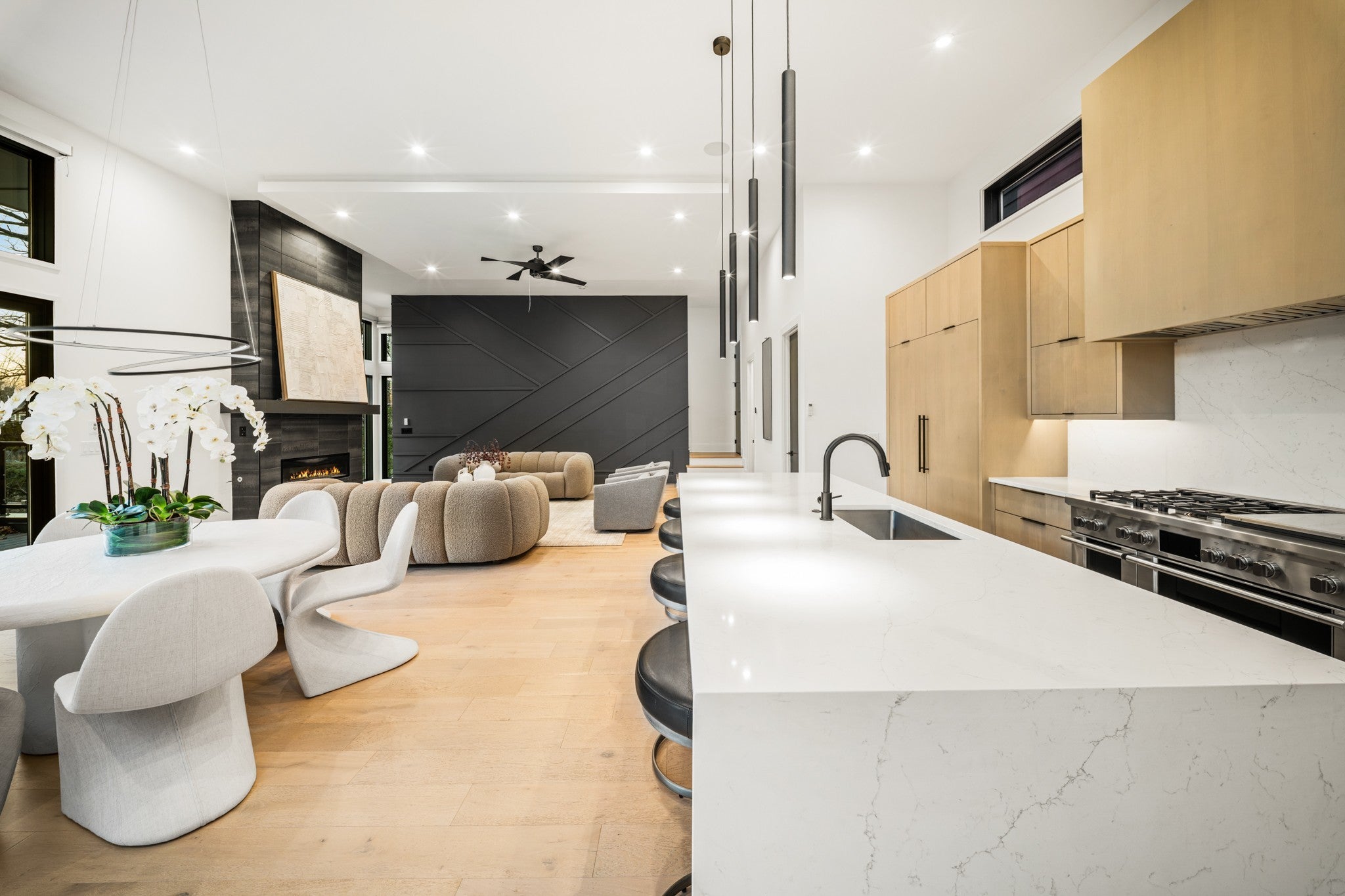 Absolutely stunning modern new construction in the heart of Sylvan Park, perfectly positioned directly on the greenway and walkable to everything the neighborhood has to offer. Your garage is closer than most of the public parking for Sylvan Park's restaurants, yet you are perfectly situated on a quiet dead end street. The location does not get any better than this one. Privacy and convenience in the heart of Sylvan Park! This home blends contemporary design with exceptional livability, featuring four spacious bedrooms and 3.5 baths, along with the rare convenience of a private elevator servicing all levels. This home has 12 foot ceilings and the home is flooded with natural light with floor to ceiling windows and enhanced by motorized shades. Two exceptional outdoor living areas extend the home's footprint including one with a cozy fireplace and Tv area, creating the perfect setting for year round enjoyment and entertaining. From morning walks along the Greenway to effortless access to Sylvan Park's restaurants, coffee shops, and local favorites, this location is truly unmatched. Irrigation system. Elevator. Speakers throughout and Sonos sound system remains with the home. Two laundry rooms and a huge walk in pantry also set this hone apart.