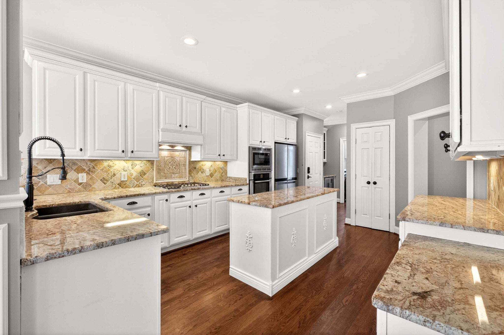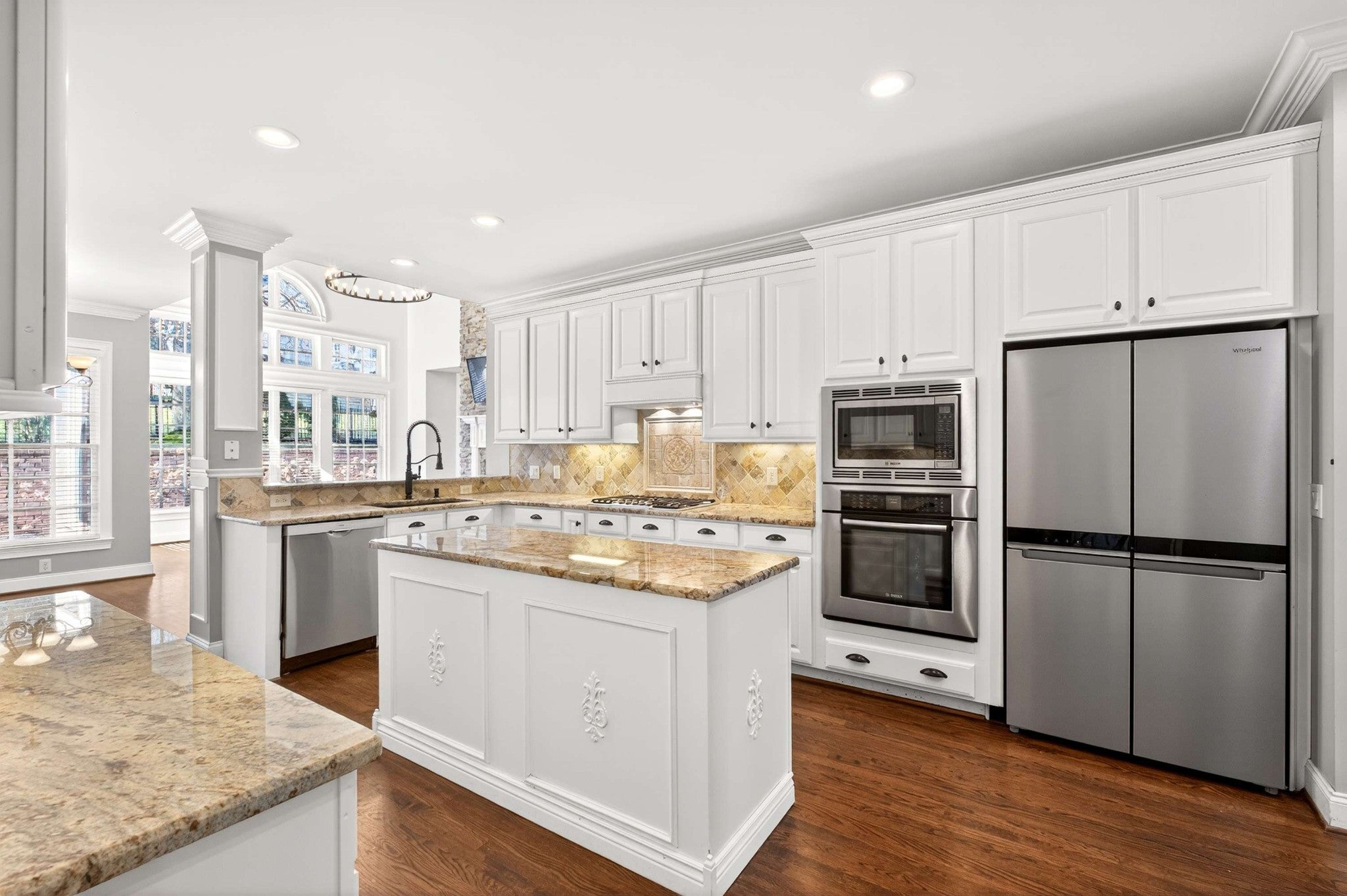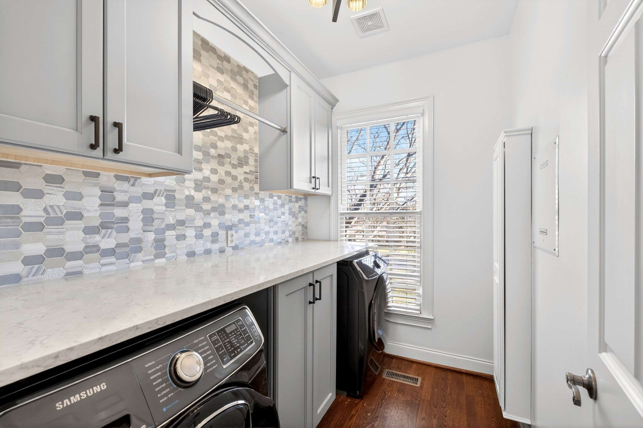 - Built-In Electric Oven, Cooktop, Dishwasher, Disposal, Dryer, Freezer, Microwave, Refrigerator, Stainless Steel Appliance(s), Washer