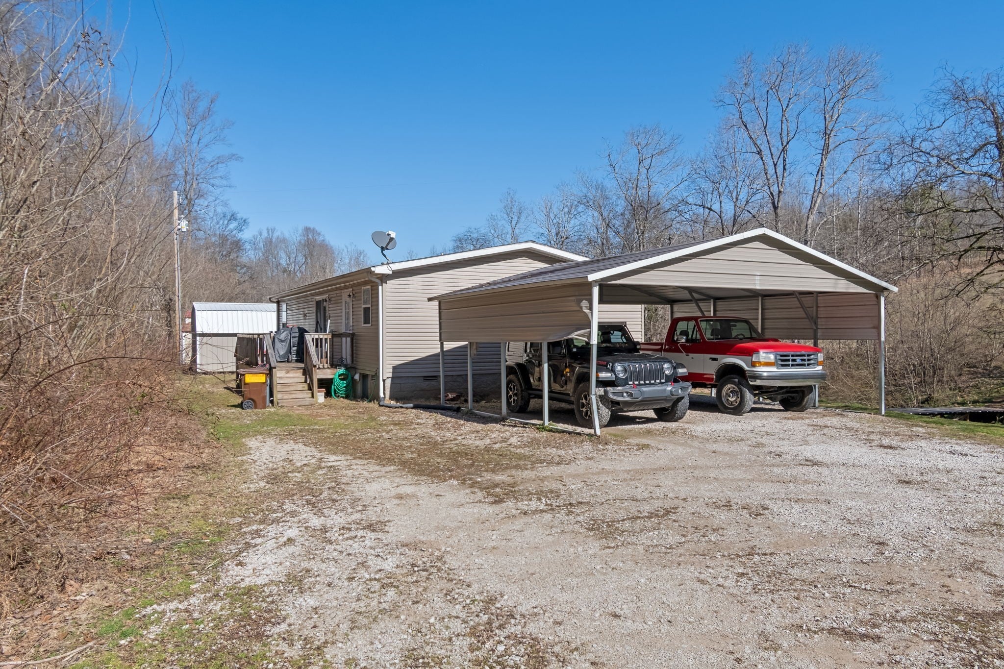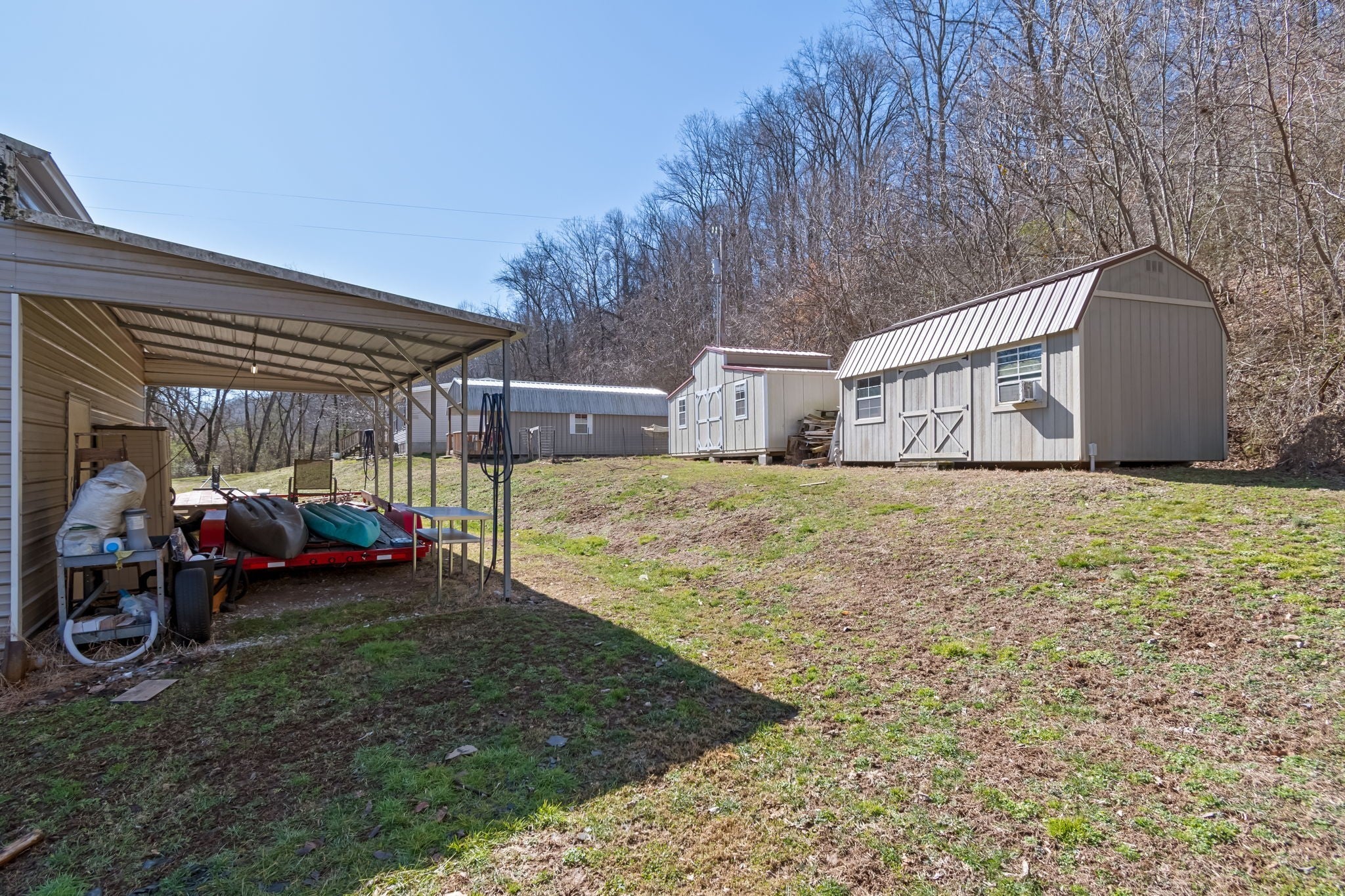 This peaceful little getaway is located in Santa Fe,TN. With just over 1400 sq ft, this 3bed/2bath home is nestled on 8+ private acres, next to a beautiful spring fed year round creek and surrounded by beautiful green Tennessee hills. In addition to the residence, there is a 20x25 shop with roll up doors and pull throughs on either side. There are also two brand new storage barns with electricity and a partially built "tiny house" just waiting for someone to come and finish it! Schedule your showing today and make this place YOUR little slice of heaven!