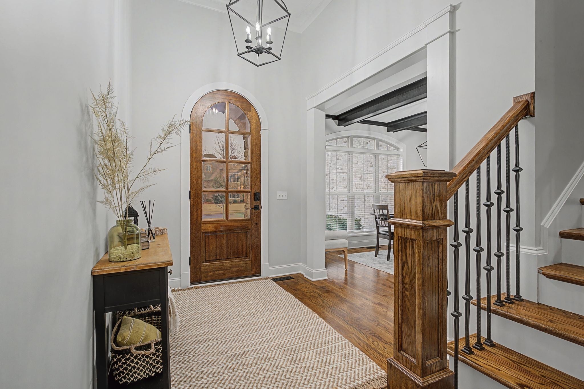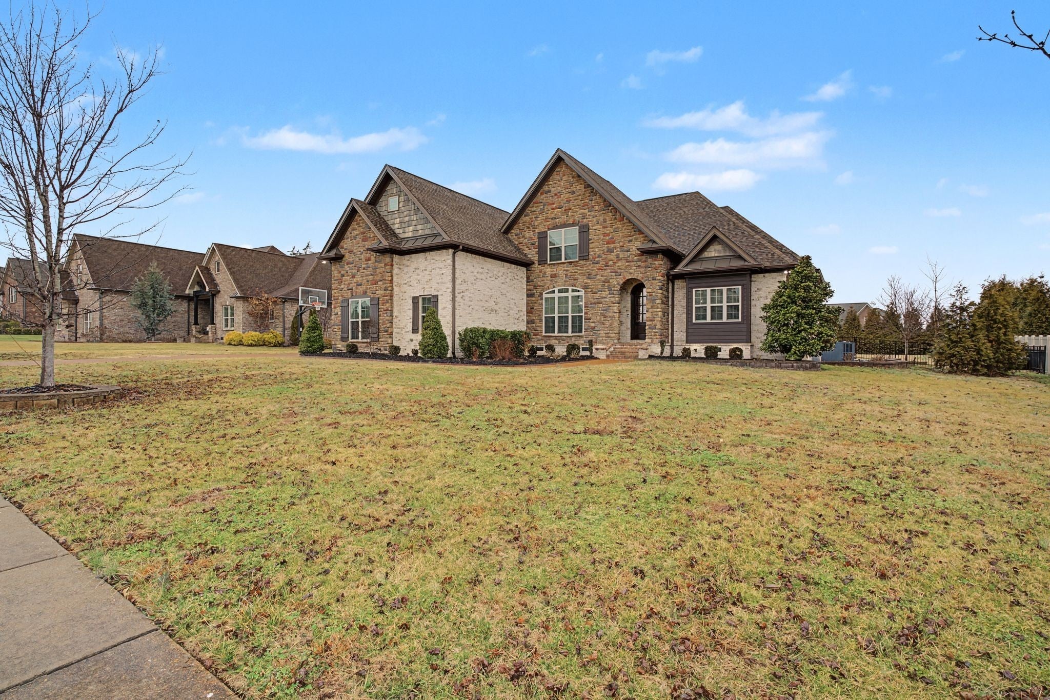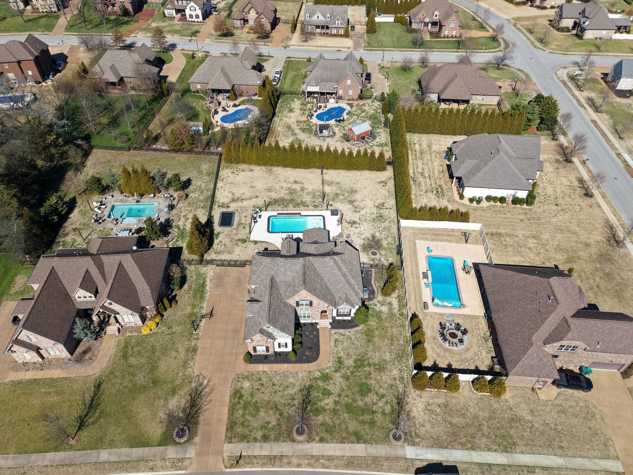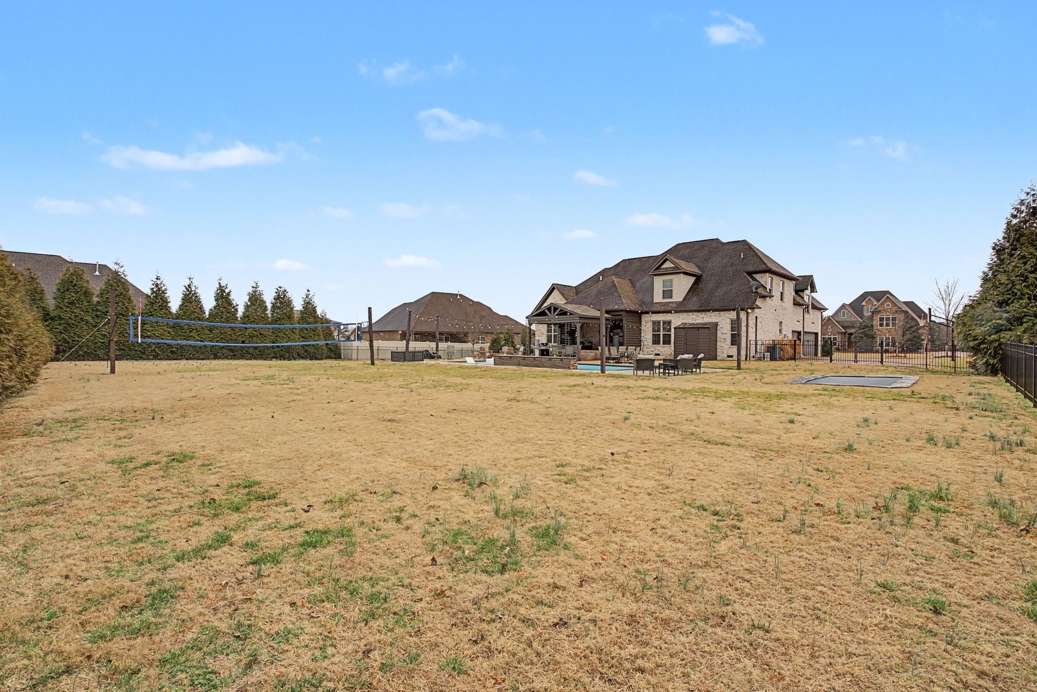 All-Brick Custom Home on the west side of Lebanon in sought-after Farmington Woods. Home features a professionally remodeled kitchen and baths. The main level offers two bedrooms, including a large primary with a beautiful vaulted ceiling accented with wood beams and includes an ensuite with large walk-in closet, double vanities, a walk-in steam shower, a relaxing soaking tub. A second main-level room perfect for a bedroom or office. Upstairs offers 3 bedrooms and a large bonus room that is over a 3-car side-entry garage with ample parking. Outdoor offers a private large 0.62 acre lot fenced-in backyard with a heated in-ground pool with tanning ledge, inground trampoline, pergola and firepit. New pool pump and heater. Exterior holiday lights professionally installed.Great for all your entertaining needs!