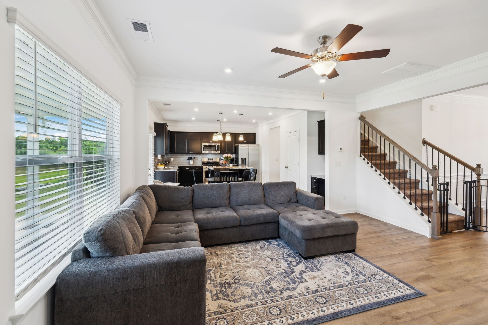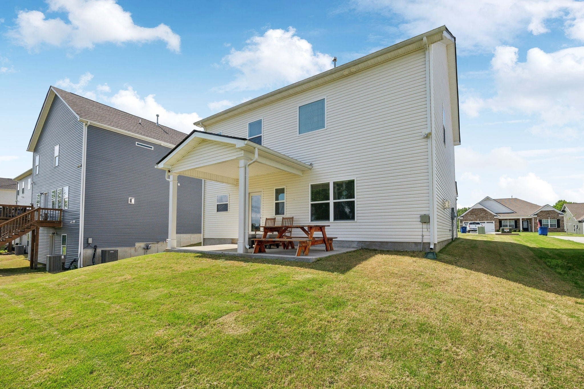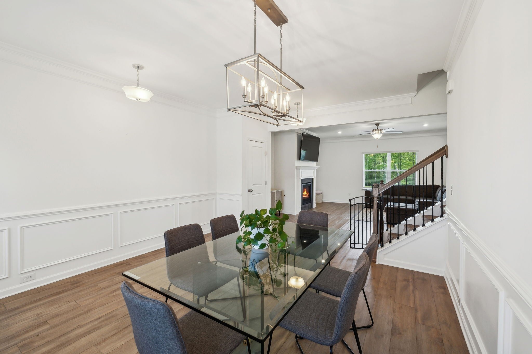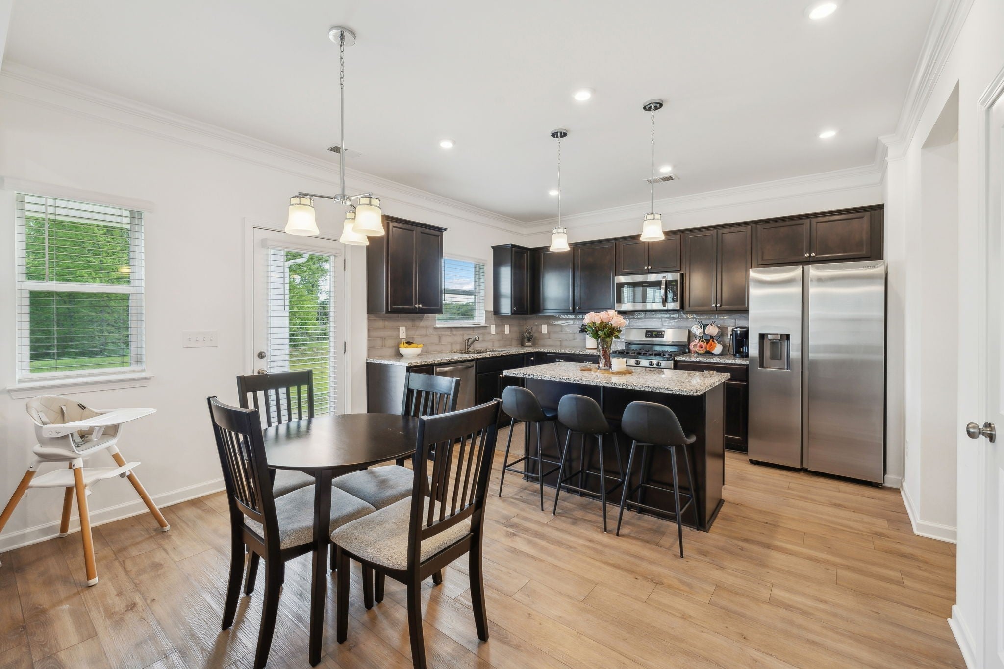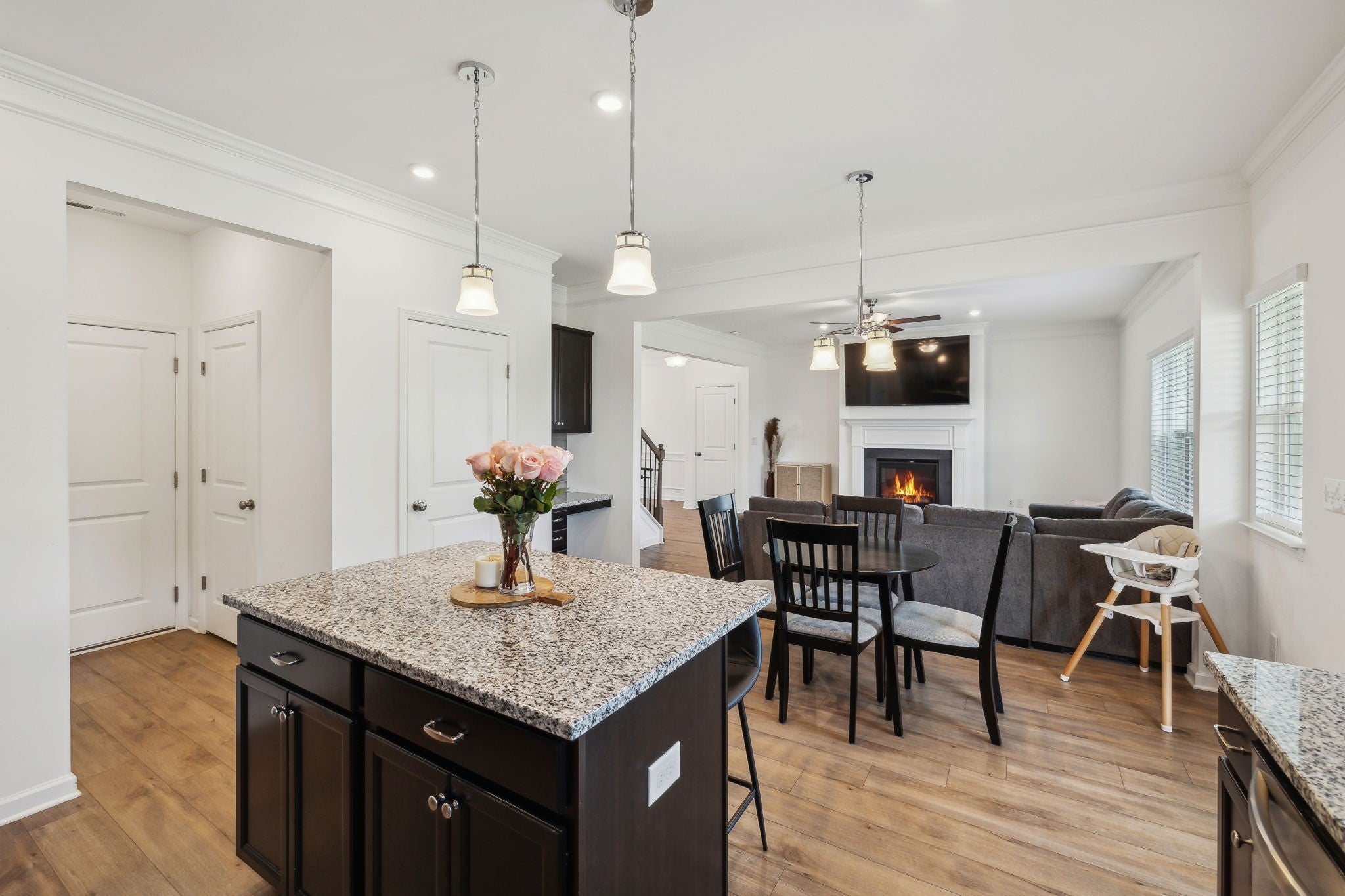 Welcome to this beautiful, like-new 4-bedroom, 2.5-bathroom home in the sought-after Union Station Subdivision! Built only three years ago and nestled in a peaceful cul-de-sac, this home offers fantastic curb appeal and a serene setting you’ll love coming home to. Inside, you’ll find a well-maintained, open-concept layout featuring luxury vinyl plank flooring throughout the main living areas. The formal dining room with classic wainscoting sets the scene for memorable gatherings, while the spacious living room boasts a sleek, white-mantled gas fireplace- perfect for cozy evenings. The kitchen is ideal, with granite countertops, rich espresso cabinetry, an island with seating, and a gas stove. A built-in desk area provides an ideal nook for remote work or homework. The convenient half bath on the main level is perfect for guests. Upstairs, retreat to the expansive primary suite complete with dual walk-in closets, a large double vanity with ample storage, a relaxing garden tub, and a walk-in tiled shower. Three additional bedrooms share a full bath featuring a double vanity and a separate toilet/shower area- perfect for busy mornings. The laundry room is also upstairs, making daily chores a breeze. Step outside to enjoy an open backyard with lush greenery and a covered patio- ideal for unwinding in the shade, as you take in beautiful Tennessee sunsets. With a serene, country feel yet just minutes from Shelbyville Square’s shopping, dining, and amenities, this home truly has it all. Schedule your private tour today! Washer, dryer, refrigerator and water softener/filtration system remain.